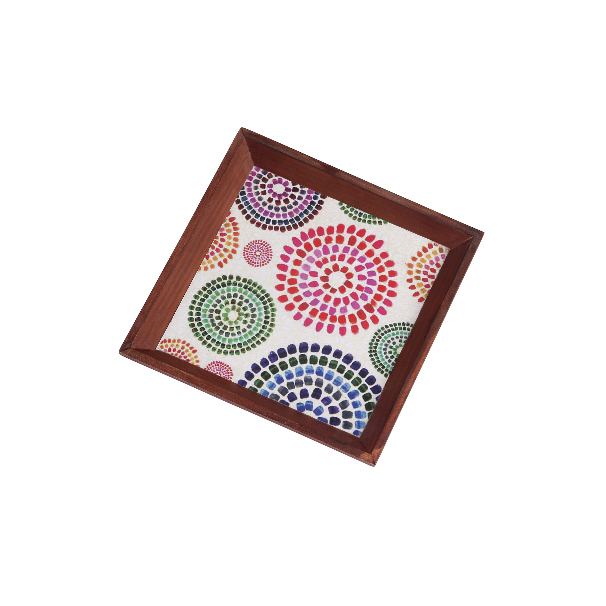 A Tiny Mistake Mandala Small Square Wooden Serving Tray, 18 x 18 x 2 cm