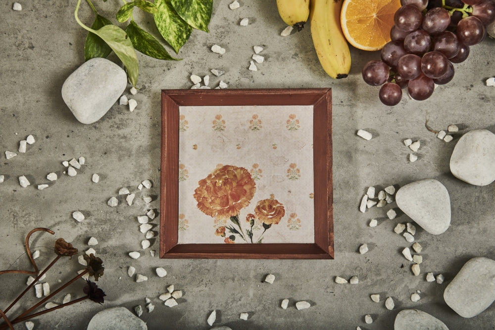 A Tiny Mistake Marigold Small Square Wooden Serving Tray, 18 x 18 x 2 cm