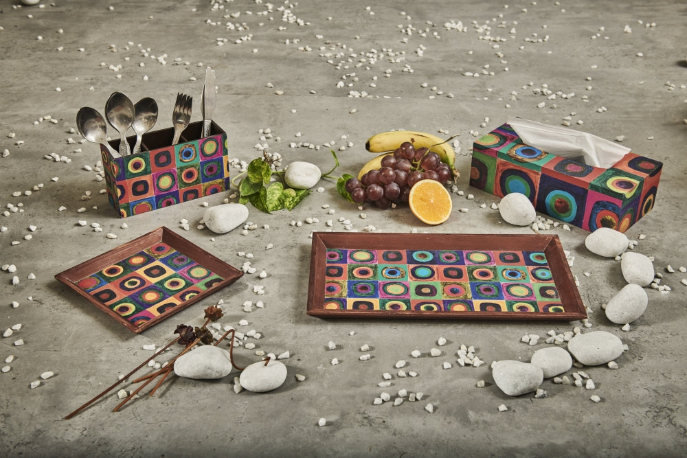 ALIGNED PRODUCTS: Matching cutlery holders, coasters, tissue boxes as well as other sizes of trays available.
