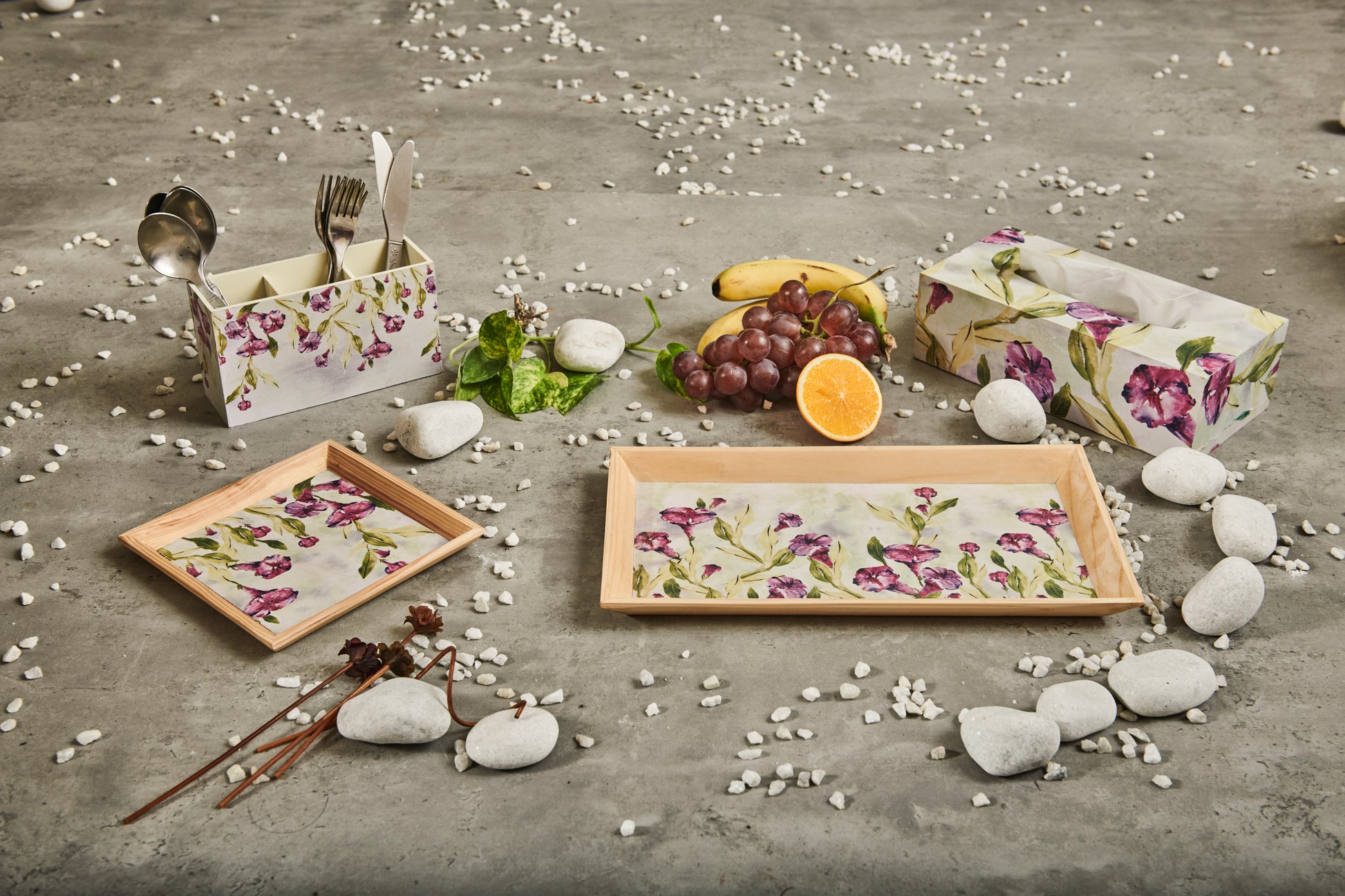 ALIGNED PRODUCTS: Matching cutlery holders, coasters, tissue boxes as well as other sizes of trays available.