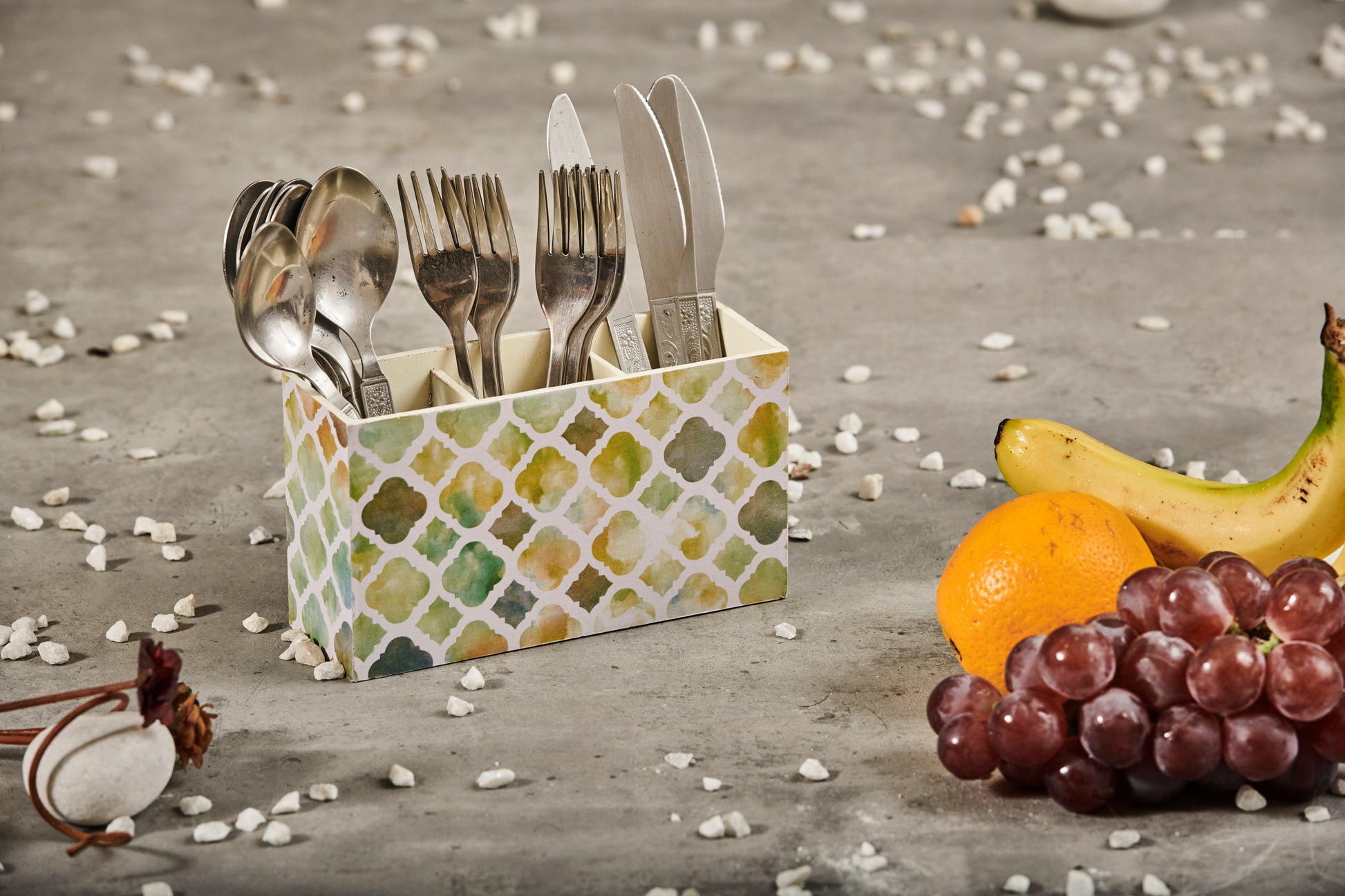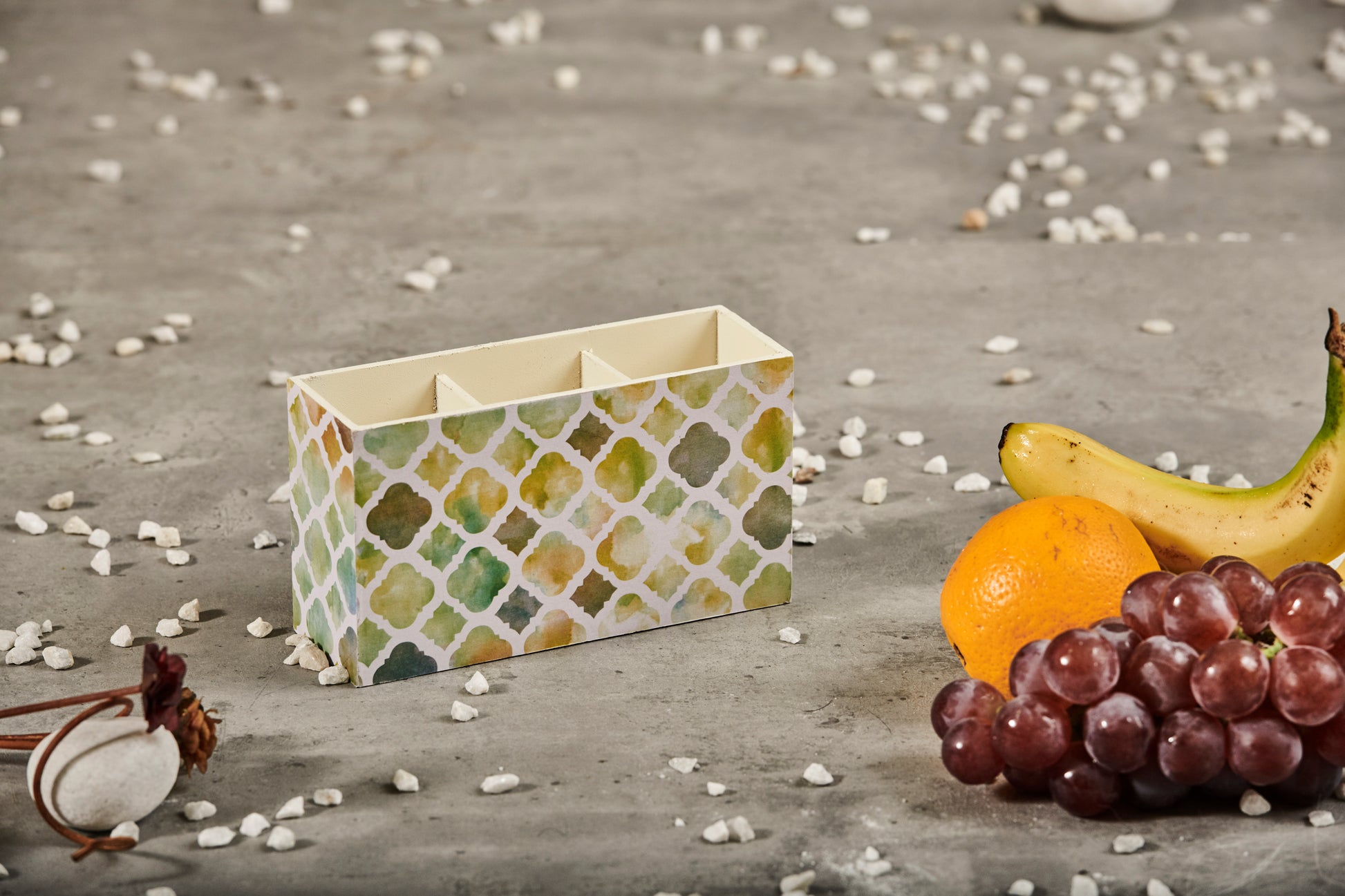 MADE IN INDIA: This partitioned cutlery holder is a delight to use. With two partitions to keep your cutlery and made using MDF, the colourful patterns simply light up the table where they are put. Our team of artisans handcraft these products with a lot of love in our workshop. We design and manufacture our product range in India.