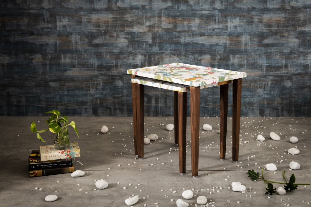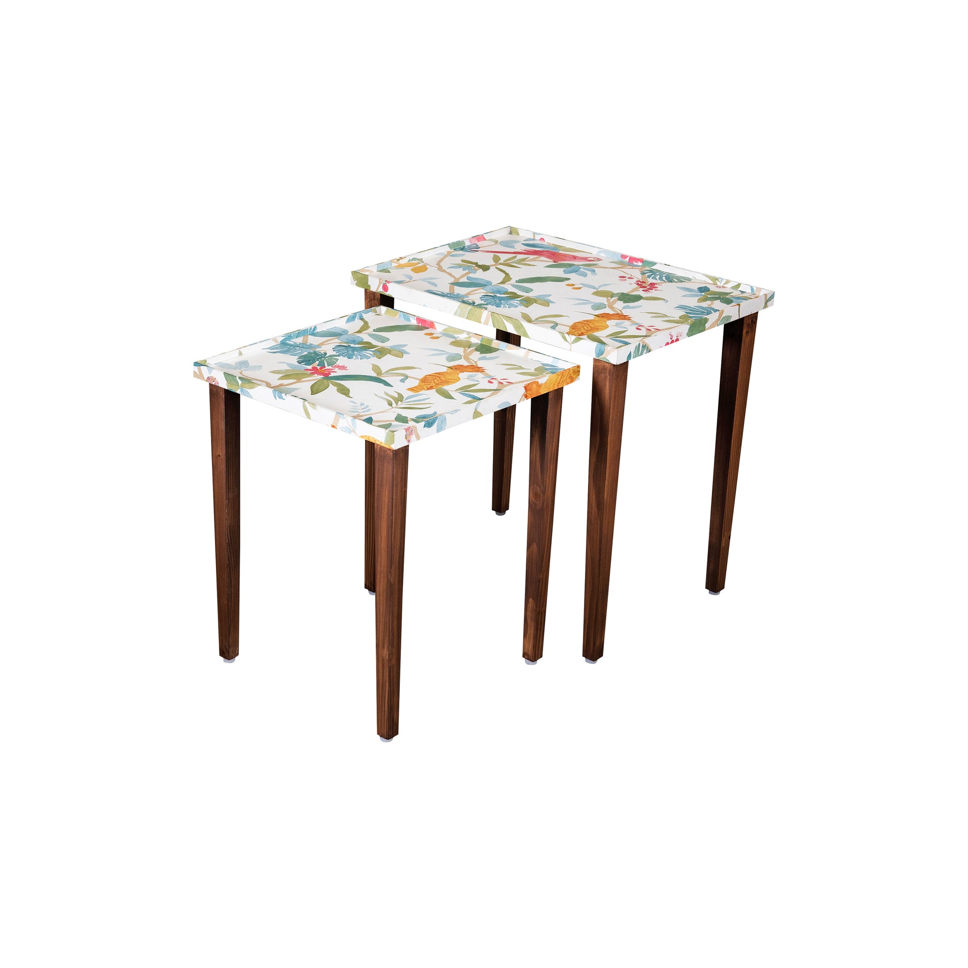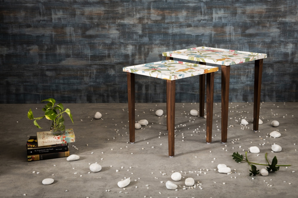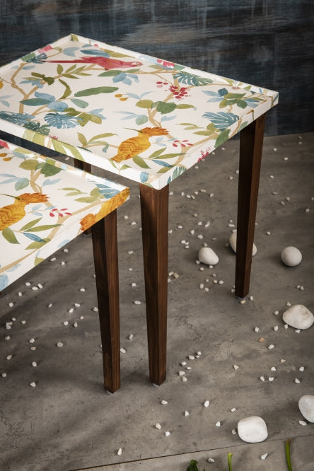 A Tiny Mistake Pakshi Wooden Rectangle Nesting Tables (Set of 2), Living Room Decor
