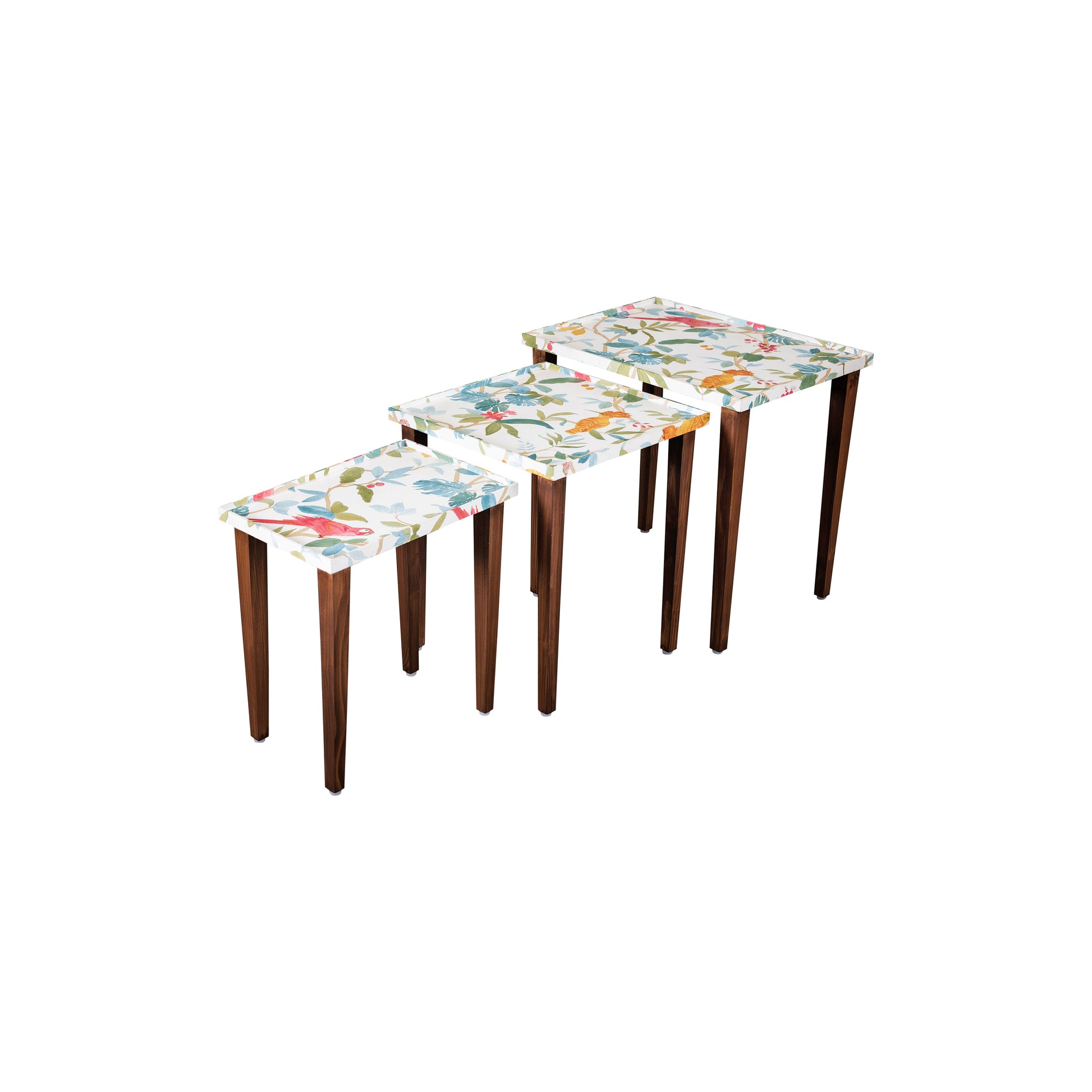 A Tiny Mistake Pakshi Wooden Rectangle Nesting Tables (Set of 3), Living Room Decor