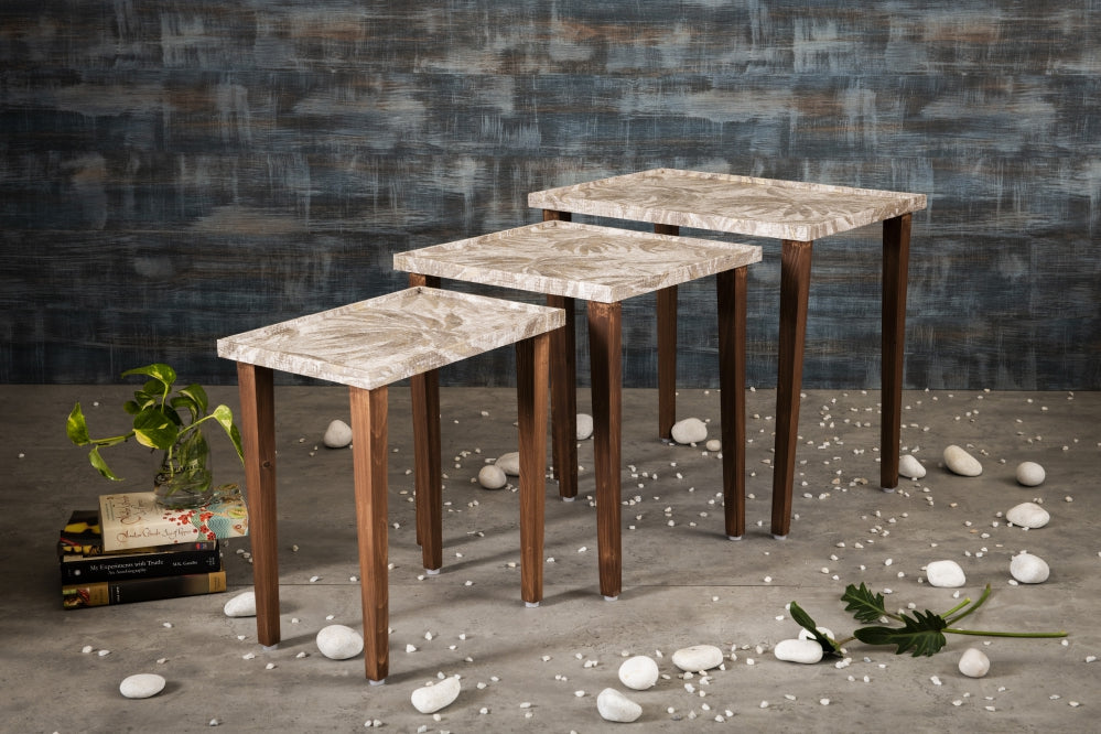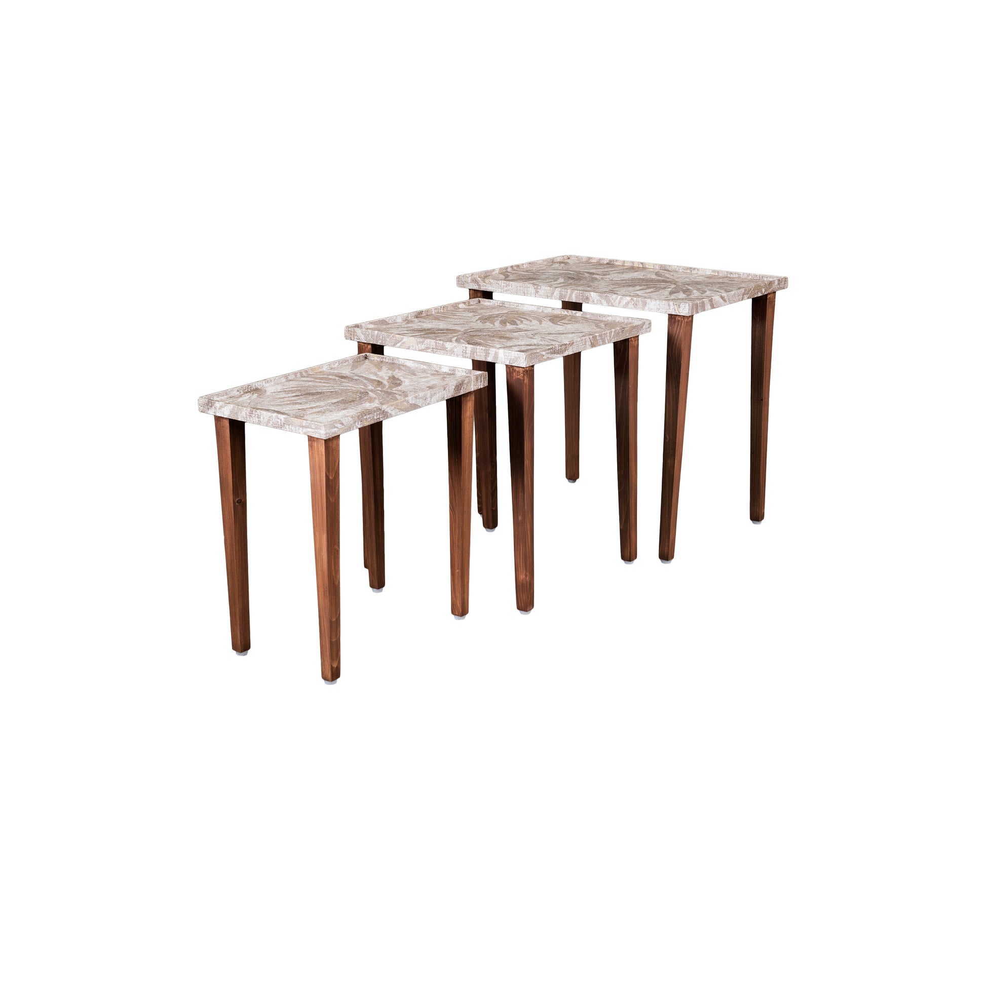 A Tiny Mistake Palm Bronze Wooden Rectangle Nesting Tables (Set of 3), Living Room Decor