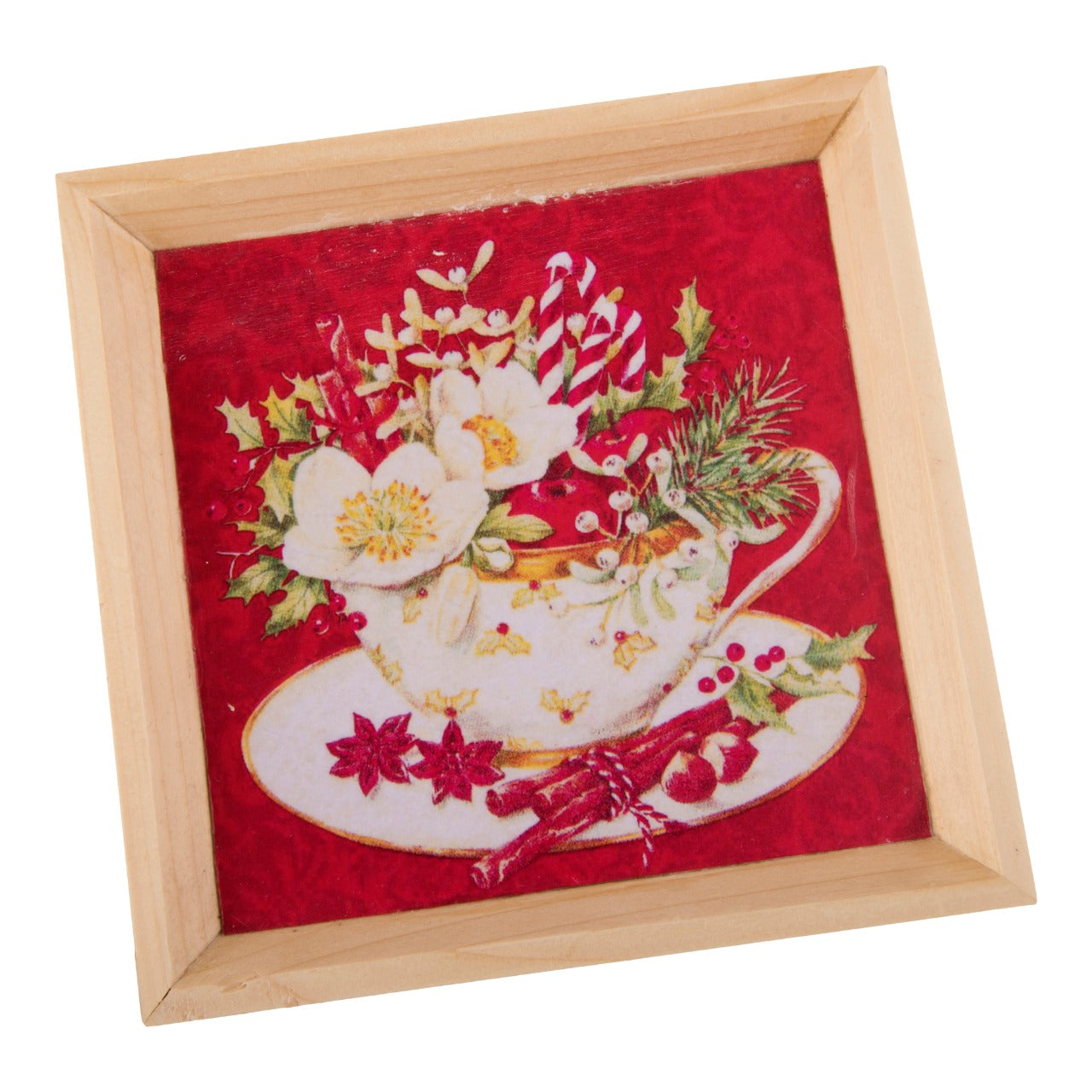 A Tiny Mistake Tea Cup Full of Flowers Small Square Wooden Serving Tray, 18 x 18 x 2 cm