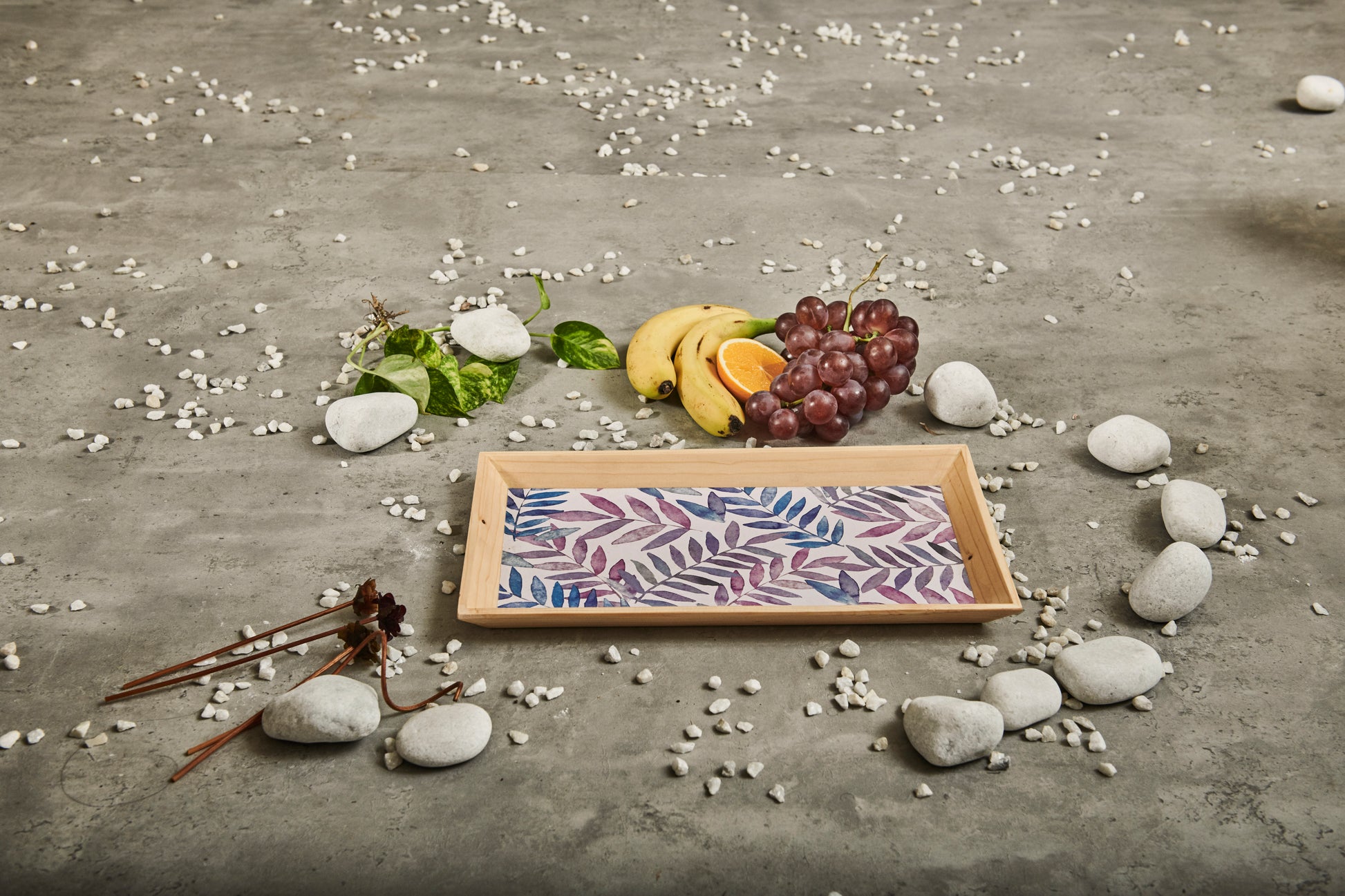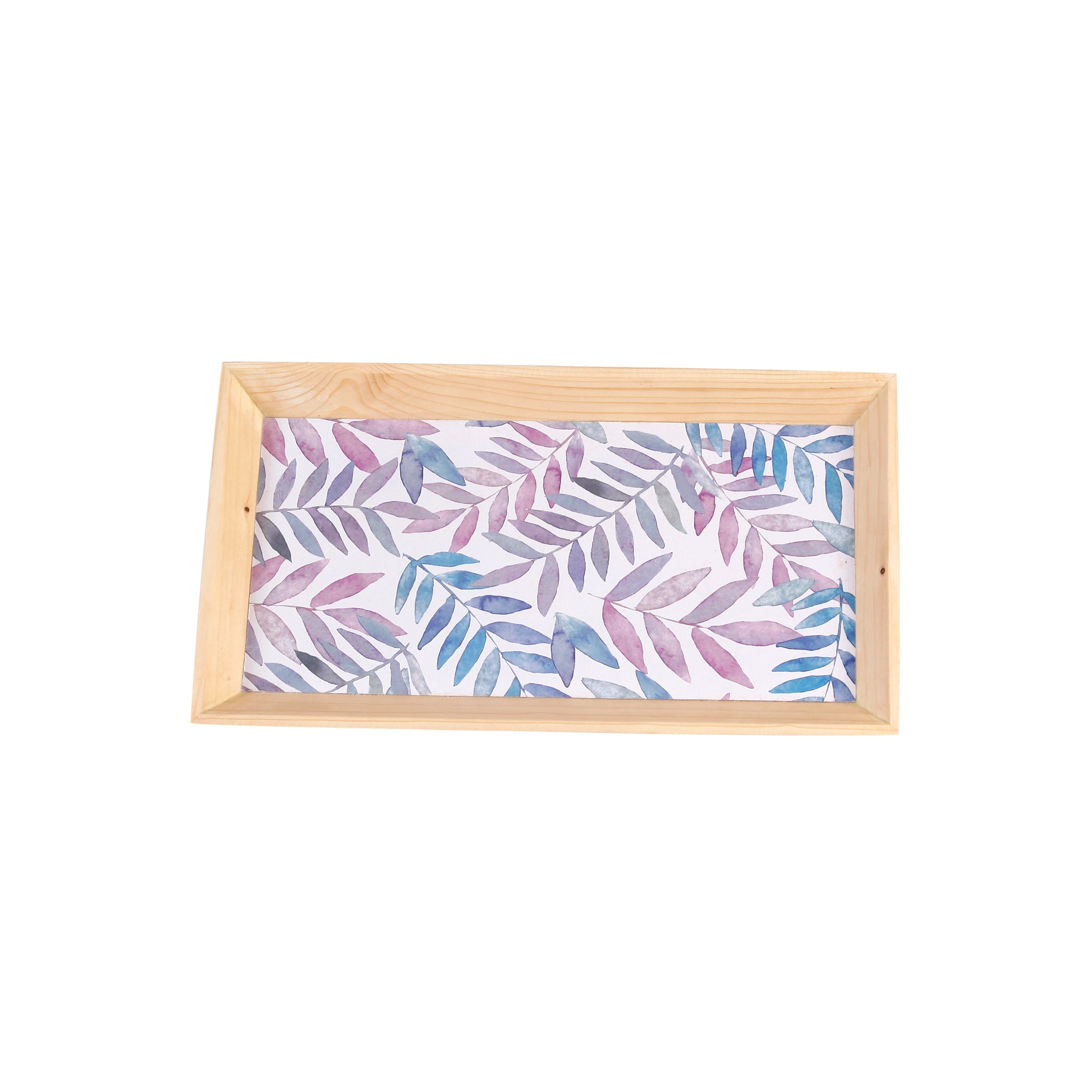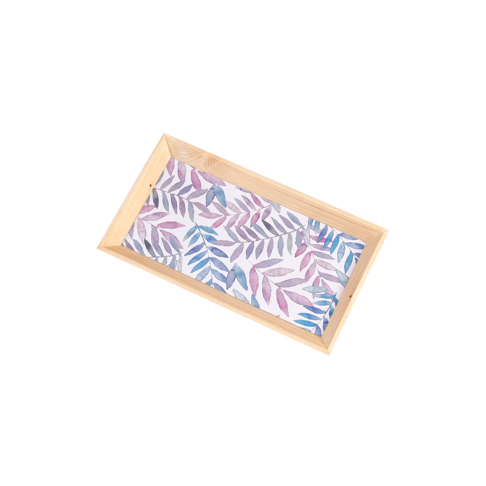 A Tiny Mistake Pastel Leaves Rectangle Wooden Serving Tray, 35 x 20 x 2 cm