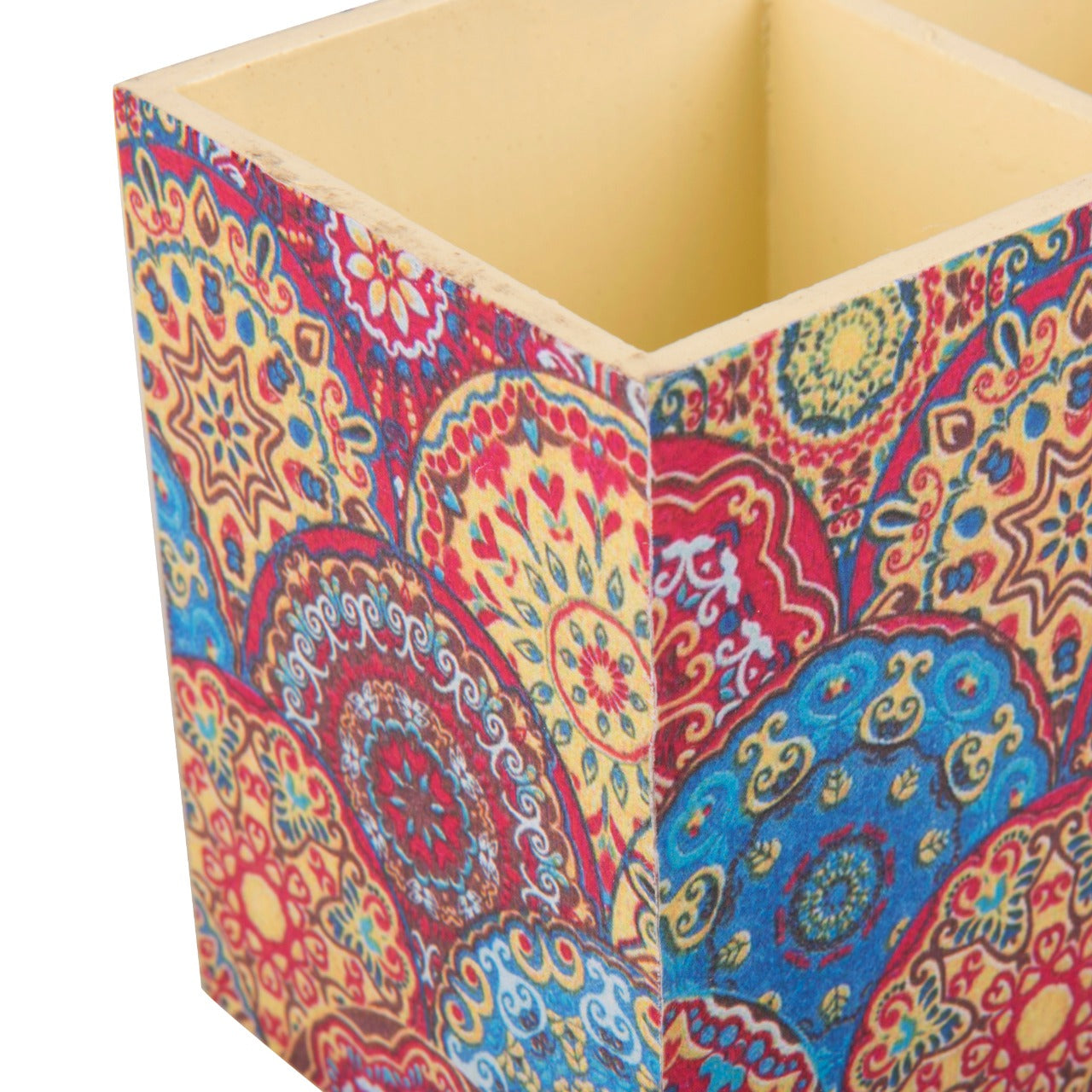 A Tiny Mistake Red Mandala Pattern Wooden Cutlery Holder, 15 x 8 x 10 cm