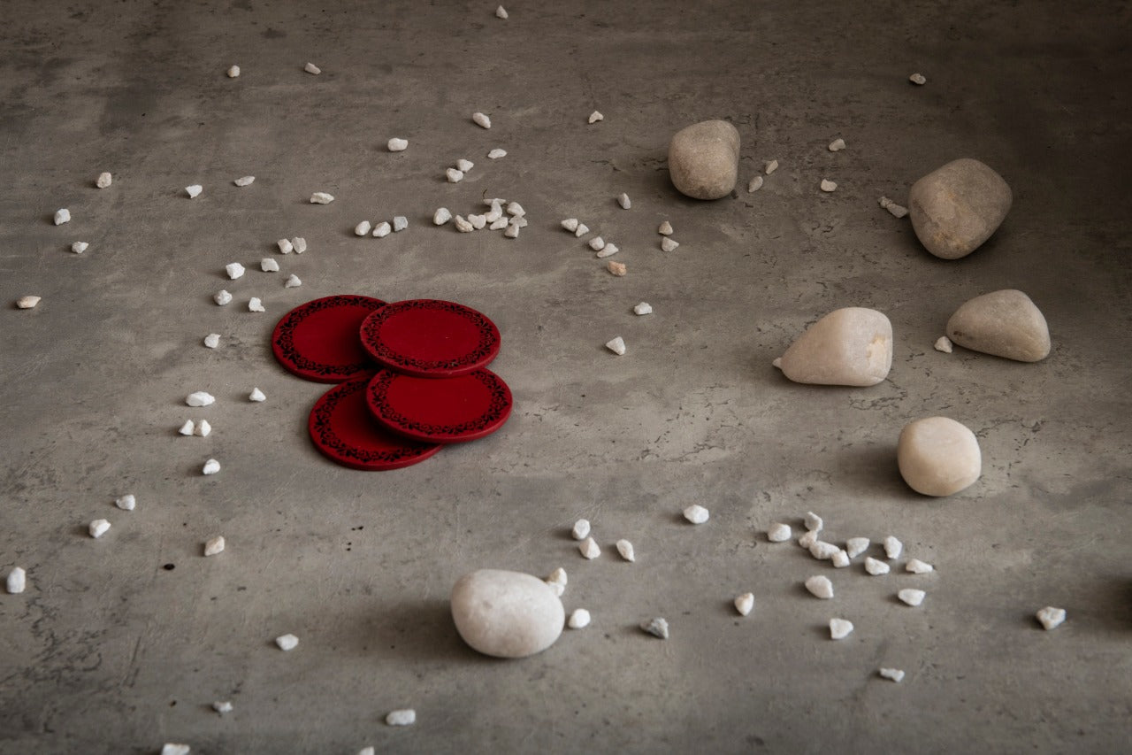 INCLUSIONS: Round Coasters Set Of Four, Accessories kept in the picture are for display purposes only.