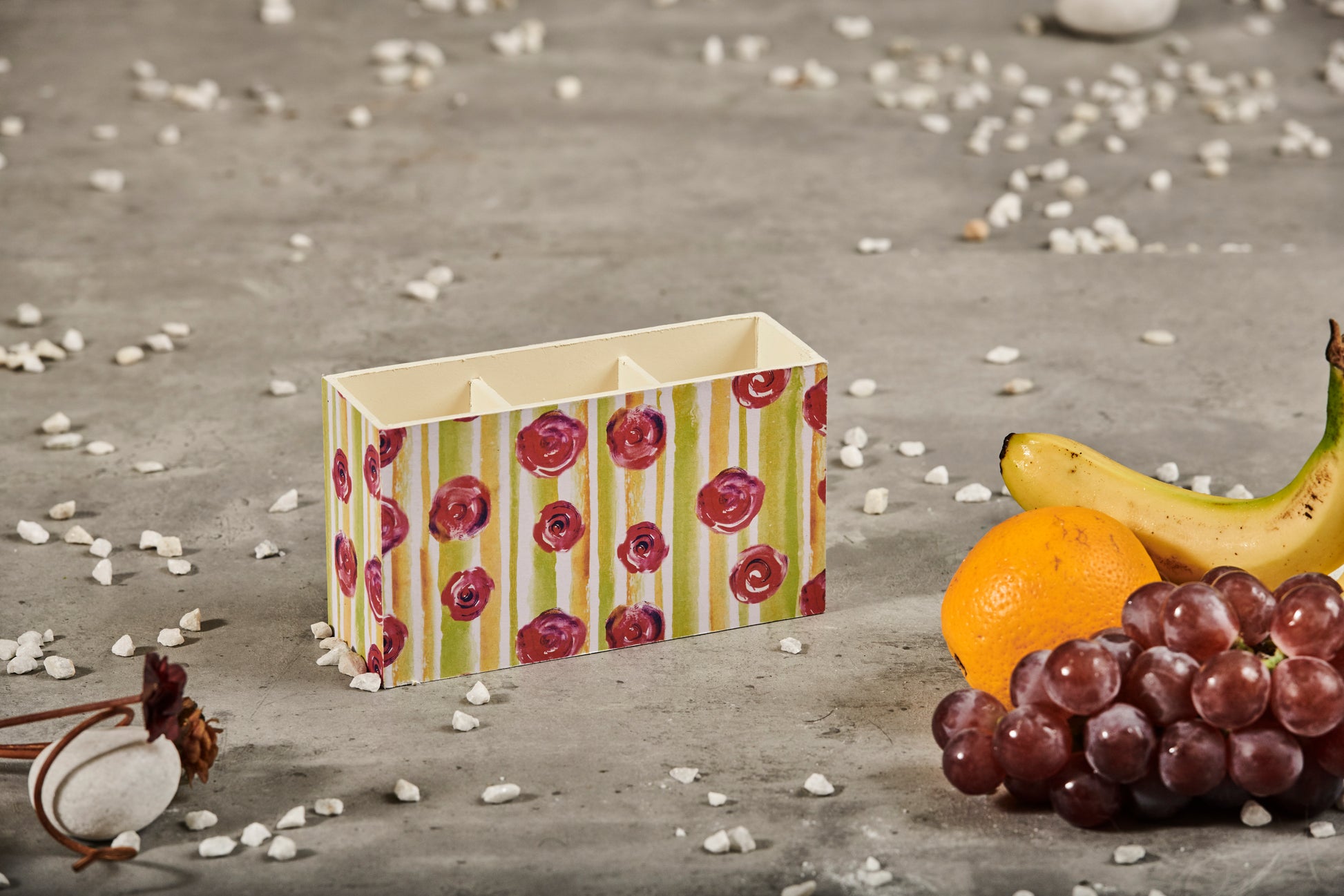 MADE IN INDIA: This partitioned cutlery holder is a delight to use. With two partitions to keep your cutlery and made using MDF, the colourful patterns simply light up the table where they are put. Our team of artisans handcraft these products with a lot of love in our workshop. We design and manufacture our product range in India.