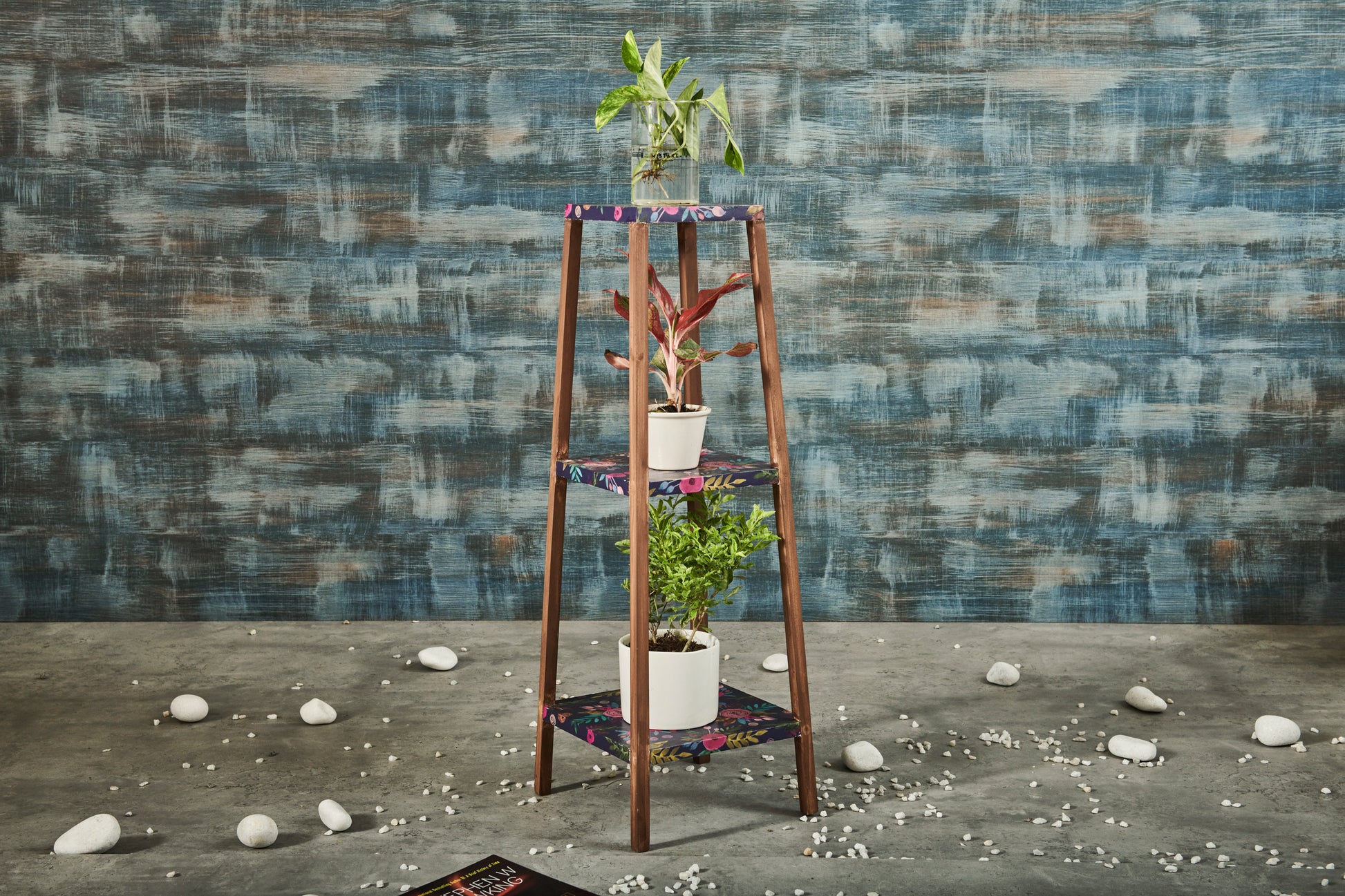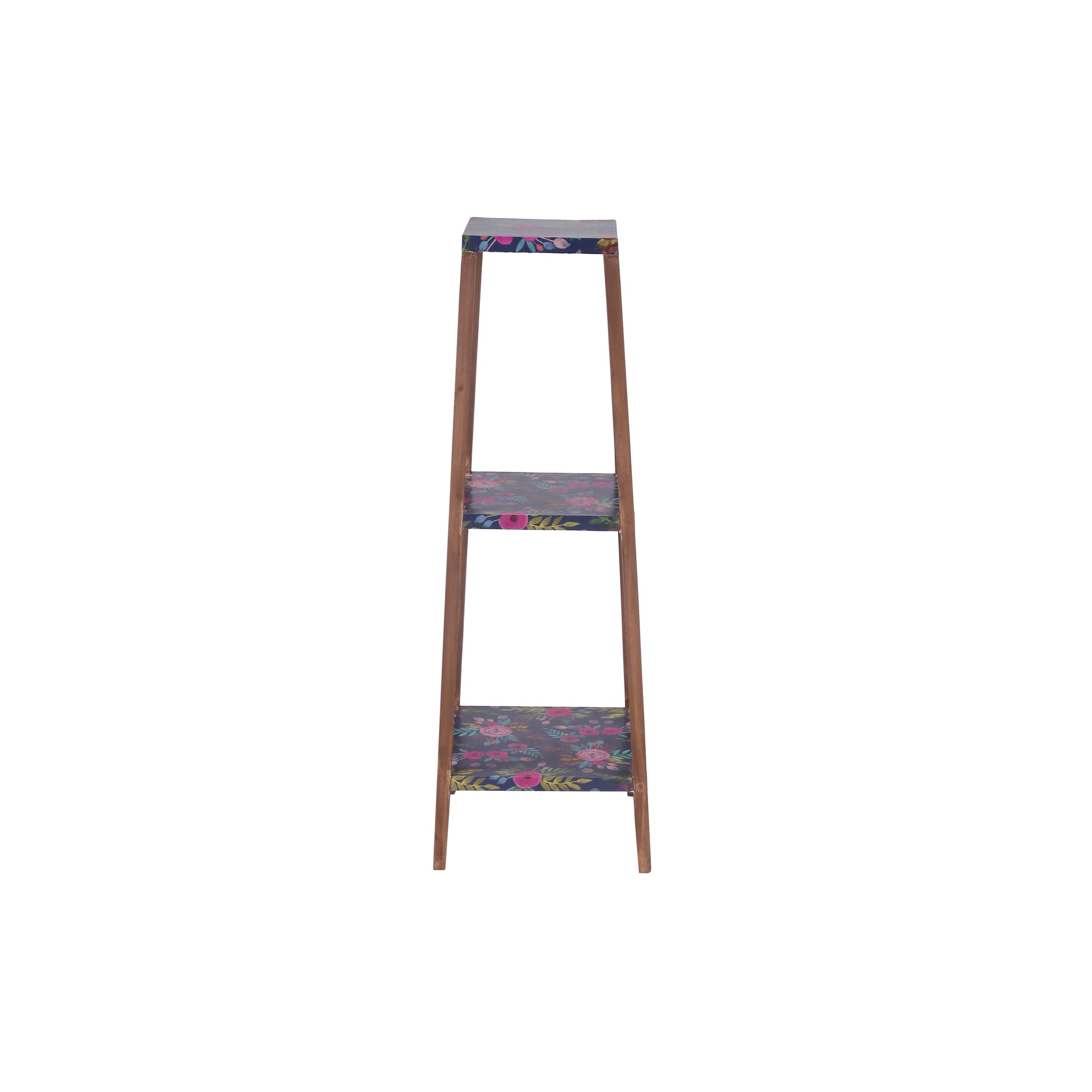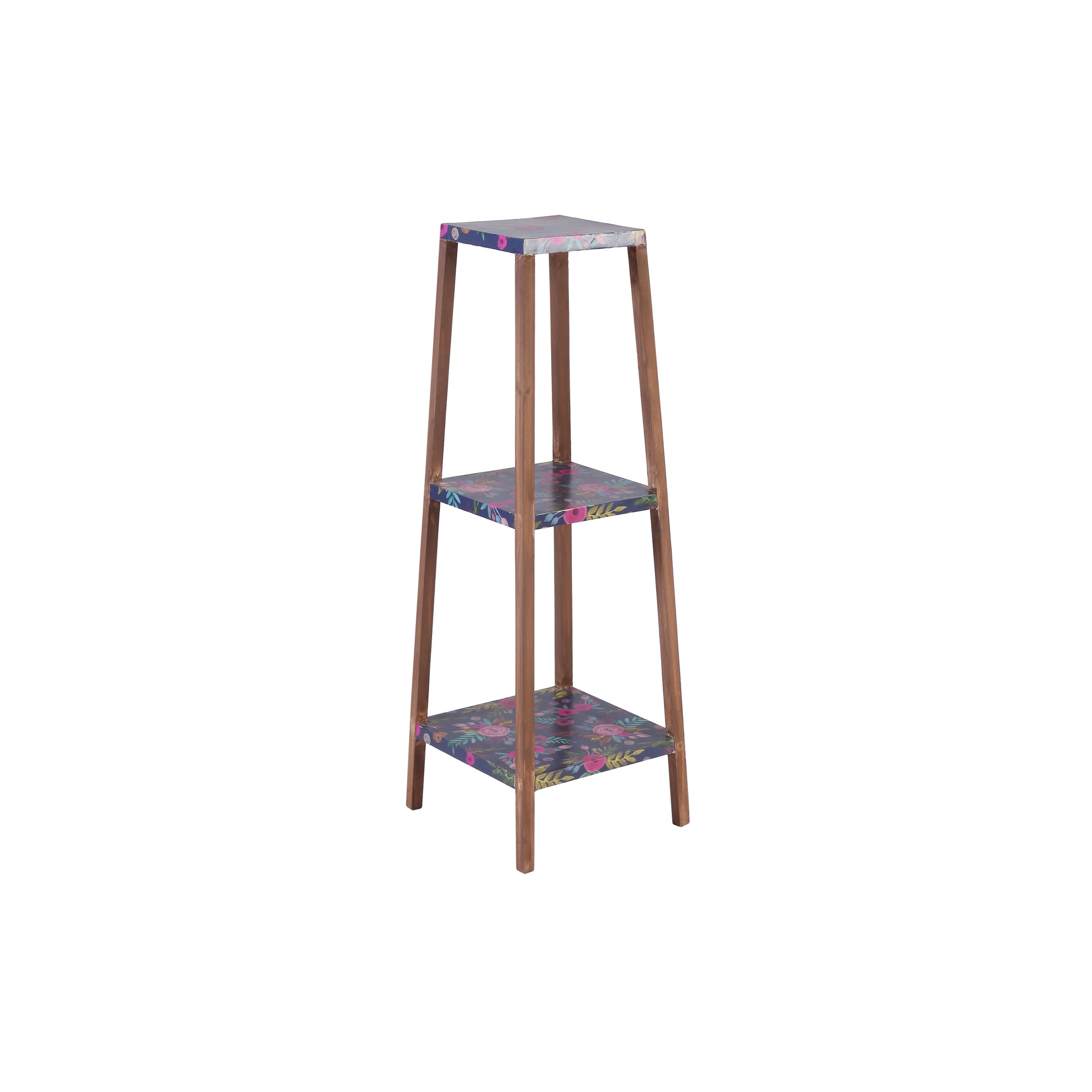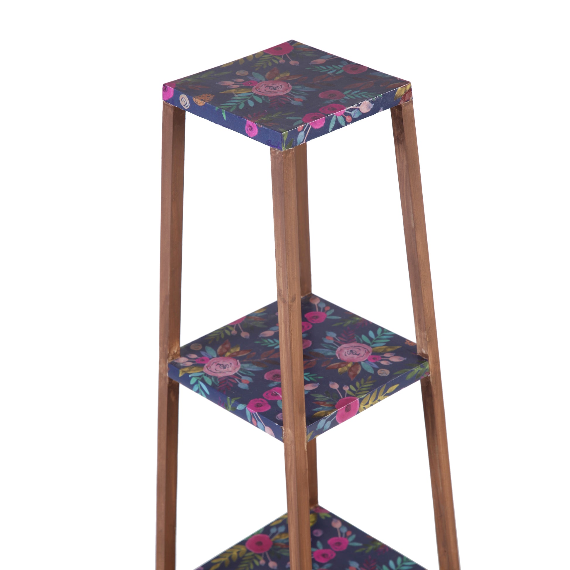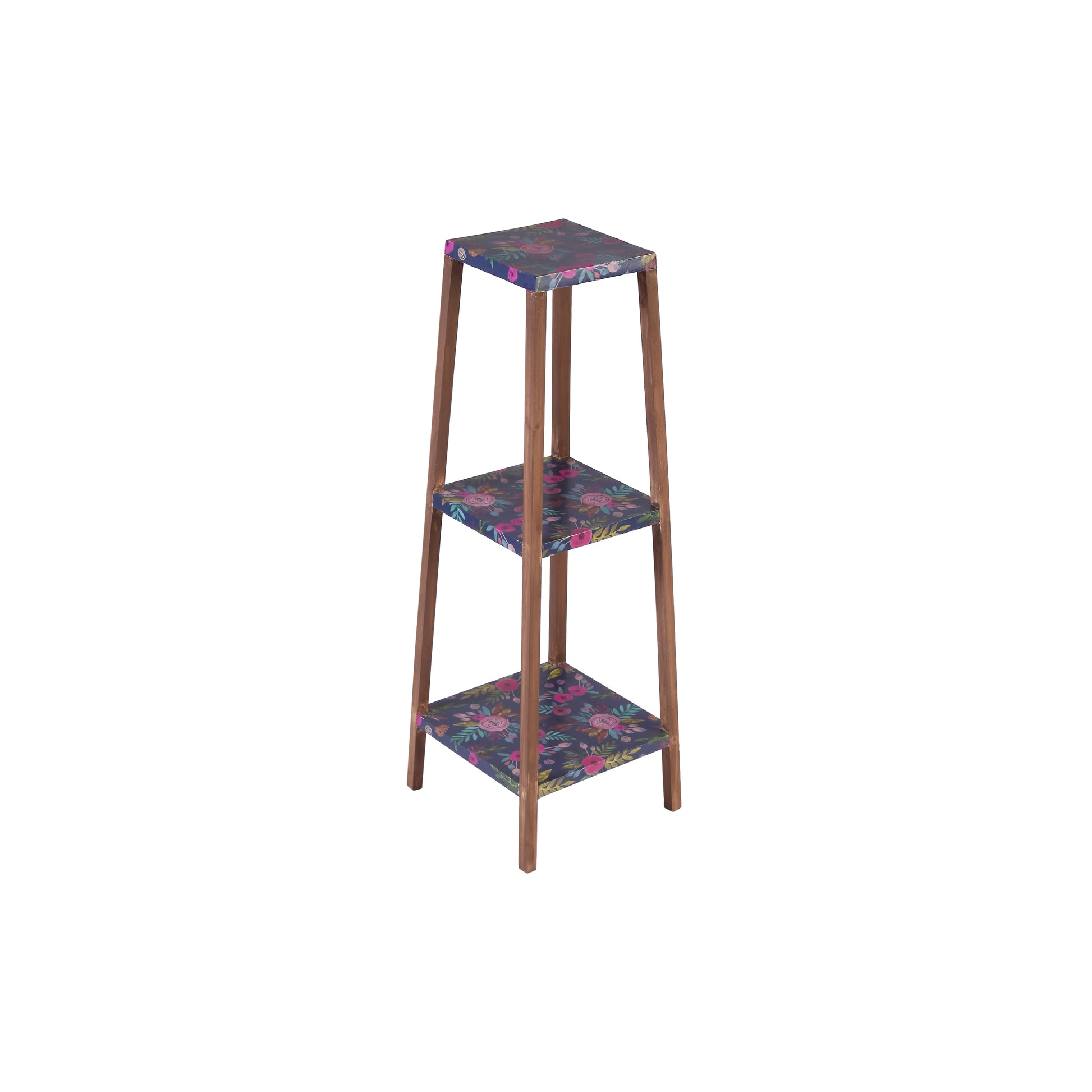 A Tiny Mistake Square Four Legged Tapering Three Tier Decorative Stand (Three Tiers) (Floral Base with Dark Legs)