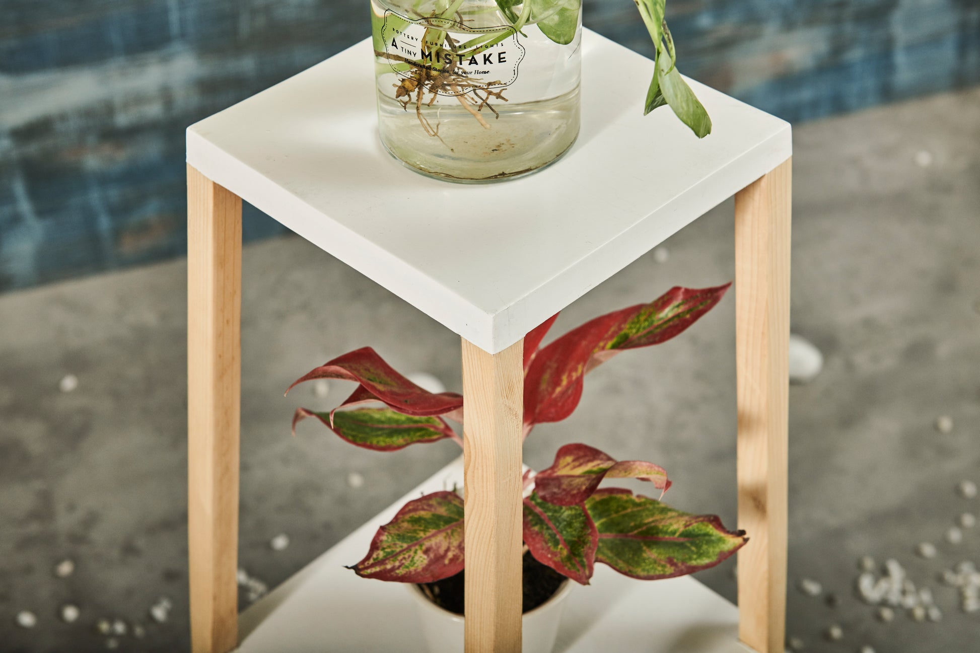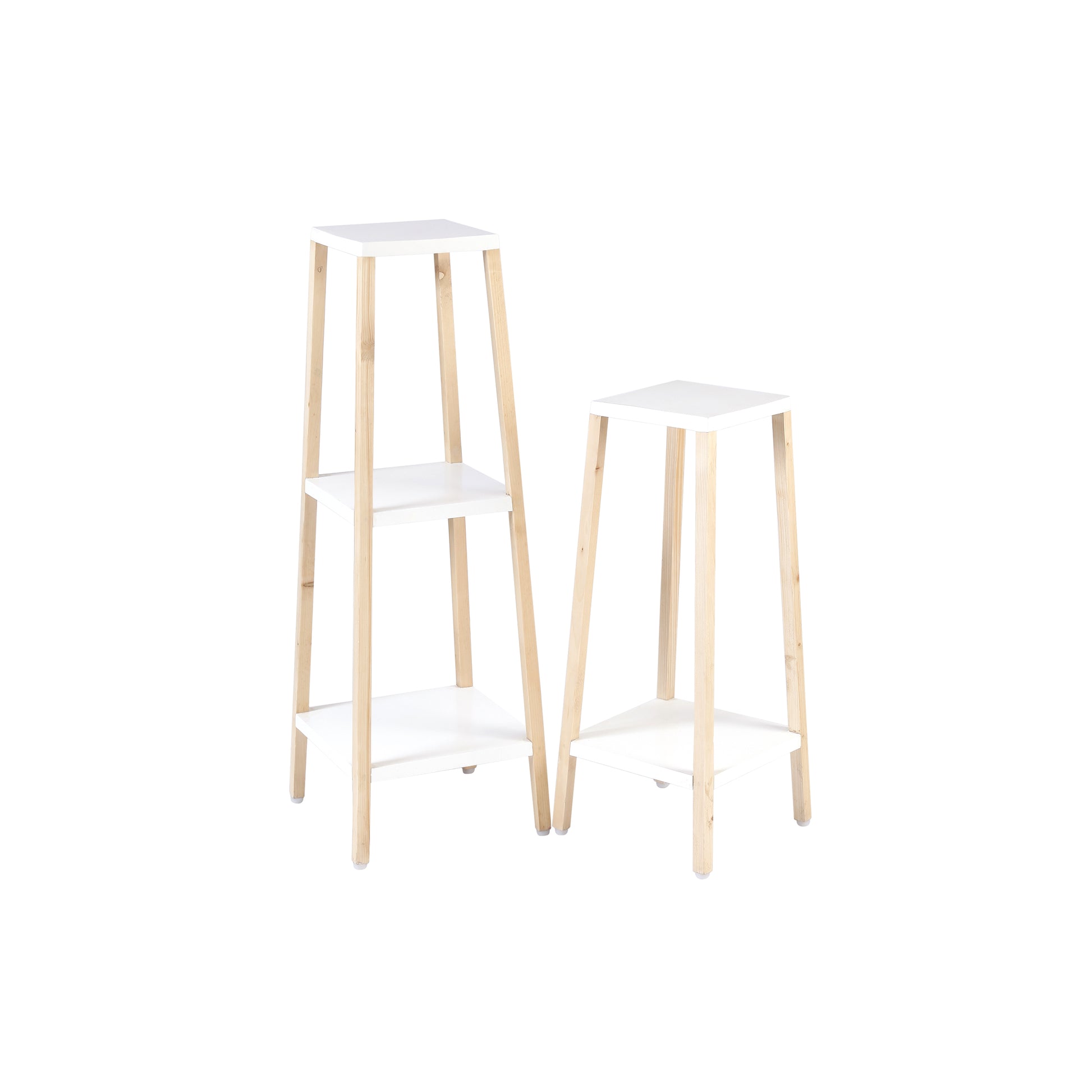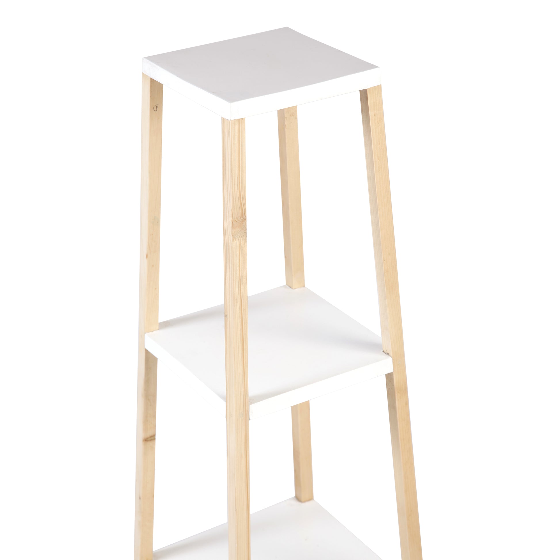 A Tiny Mistake Square Four Legged Tapering Three Tier Decorative Stand (Three Tiers) (White Base with Light Legs)