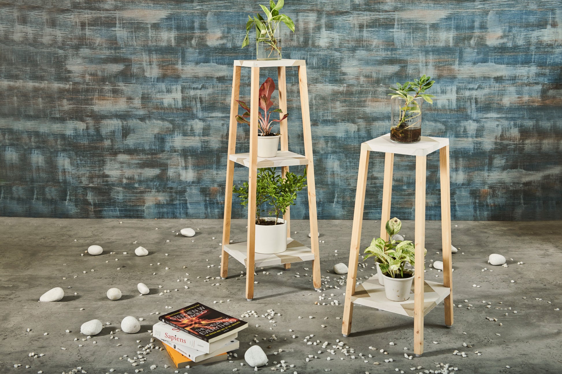 Approximate Size: Top Plank - 18 x 18 cm, Bottom Plank - 23 x 23 cm, Height 56 cm.