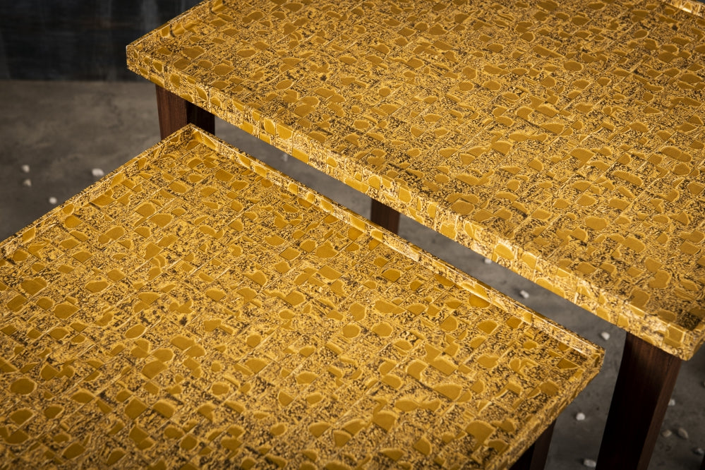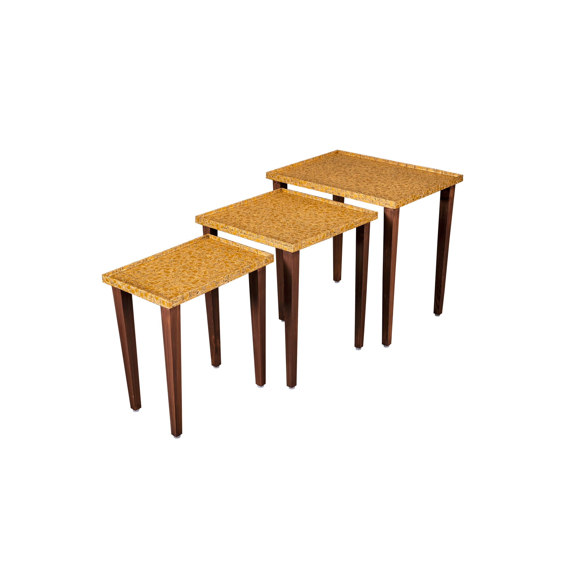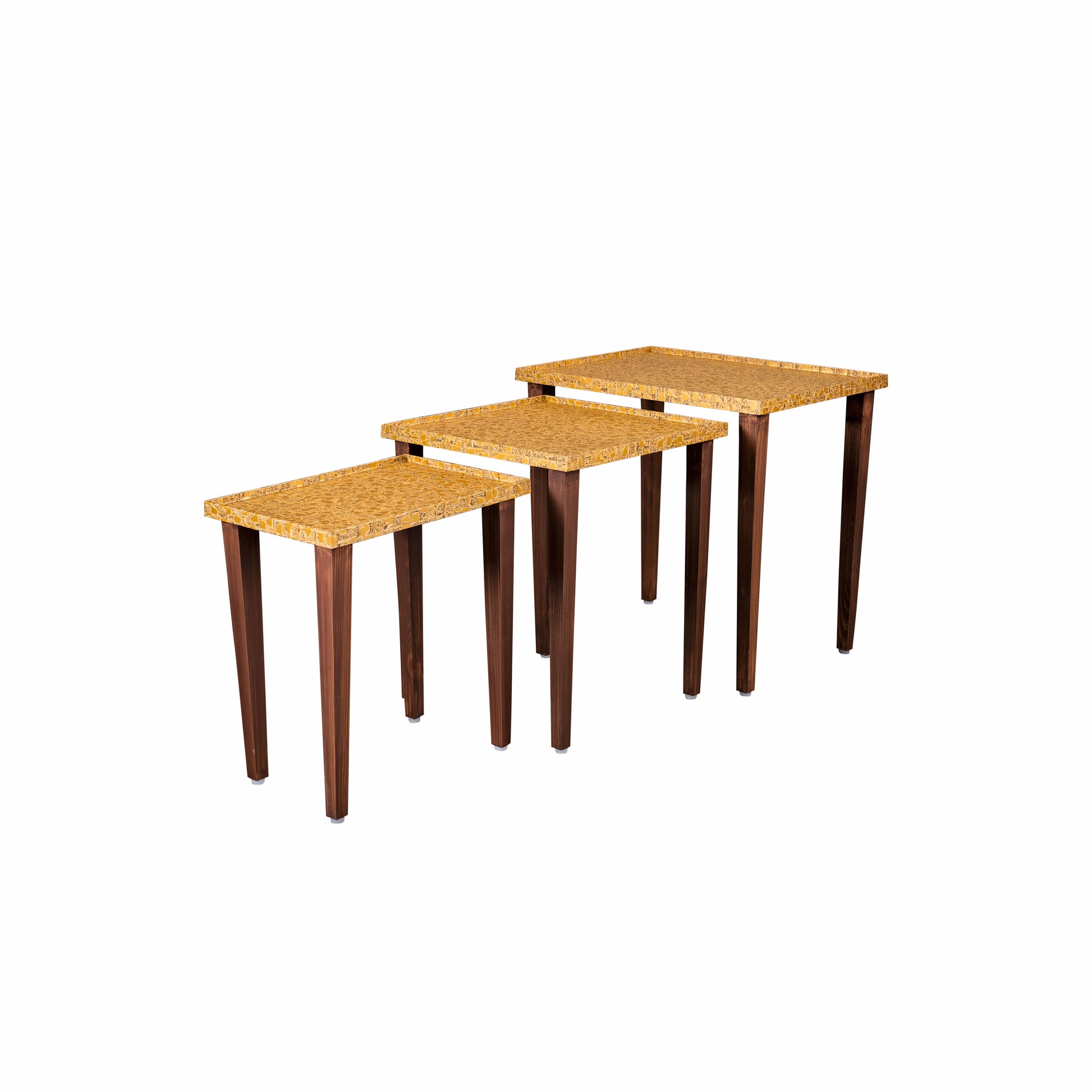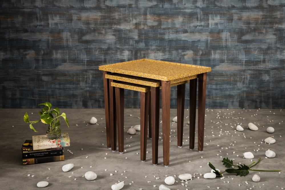 A Tiny Mistake Sunehri Wooden Rectangle Nesting Tables (Set of 3), Living Room Decor