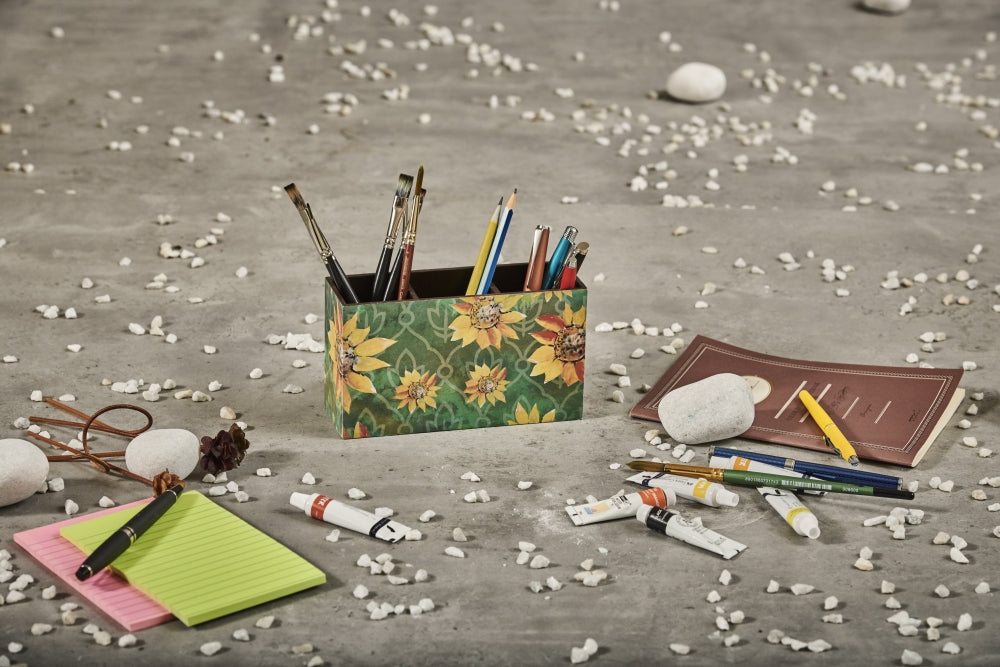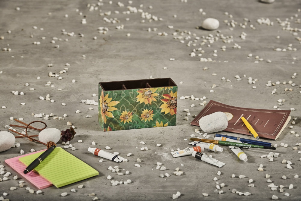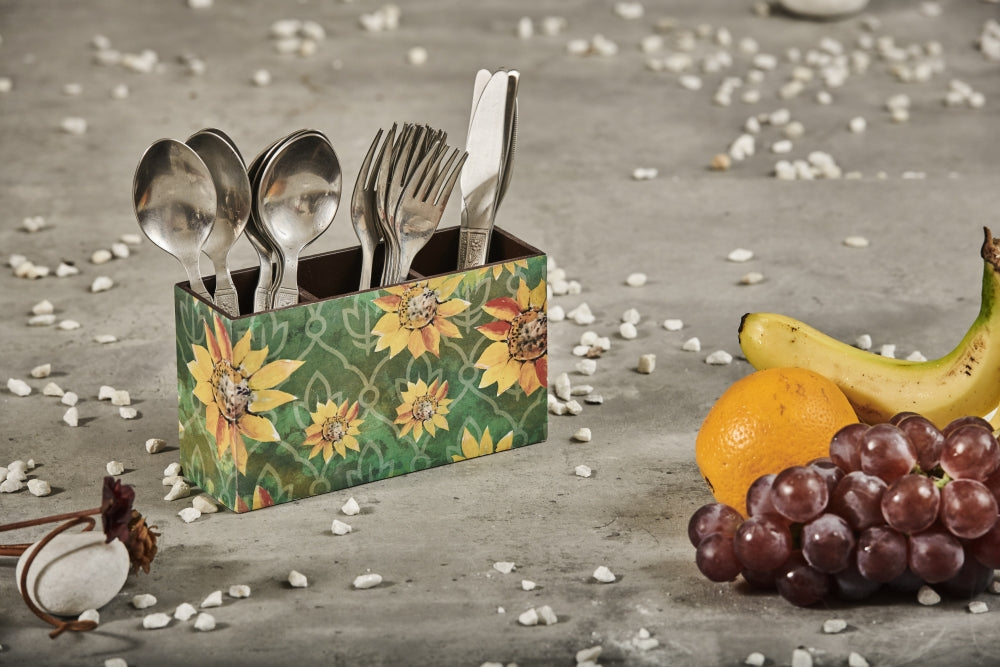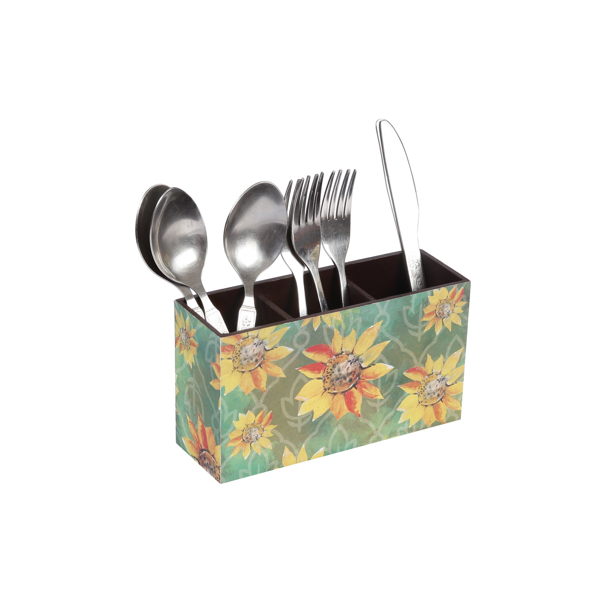 A Tiny Mistake Sunflowers Wooden Cutlery Holder, 18 x 10 x 6.5 cm