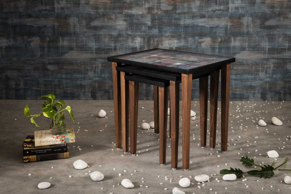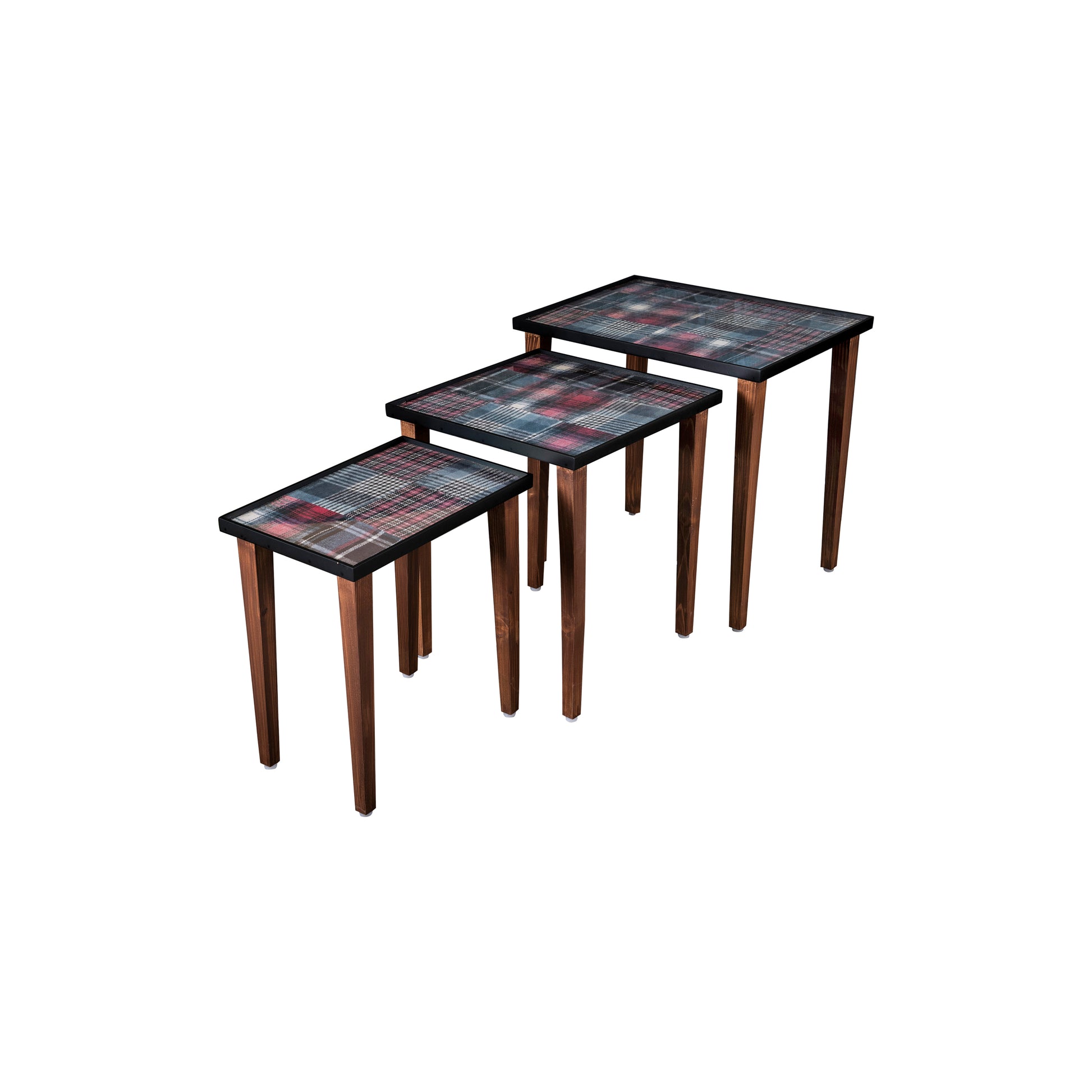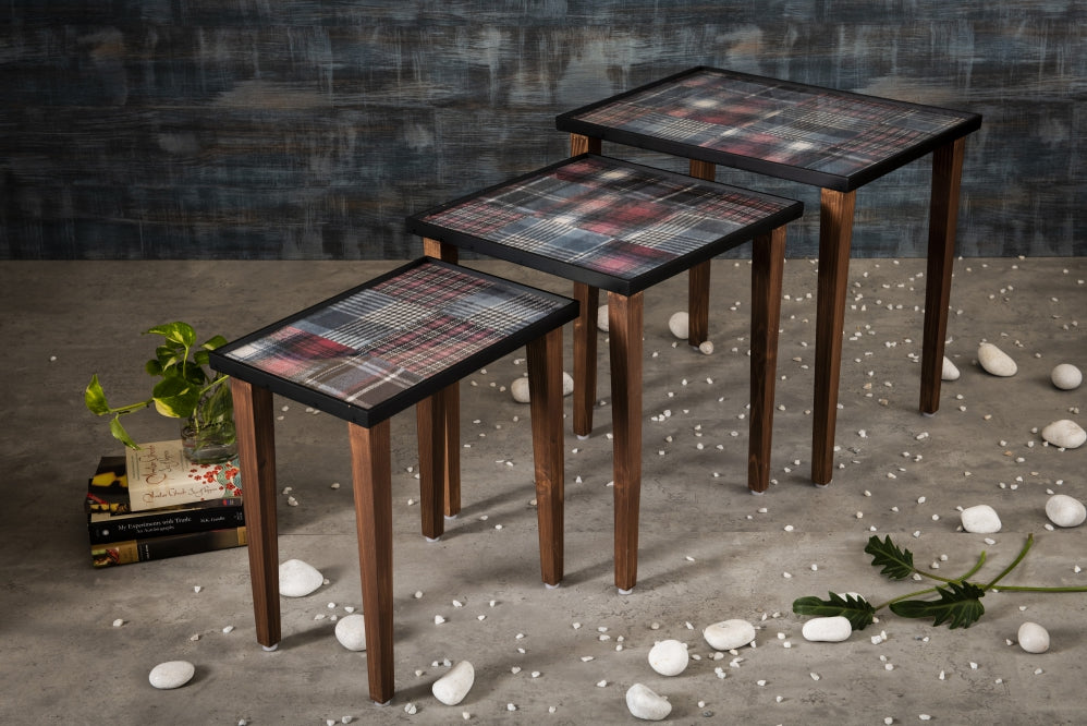 A Tiny Mistake Tartan Wooden Rectangle Nesting Tables (Set of 3), Living Room Decor