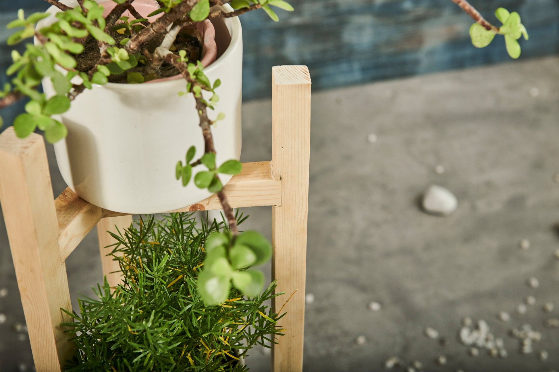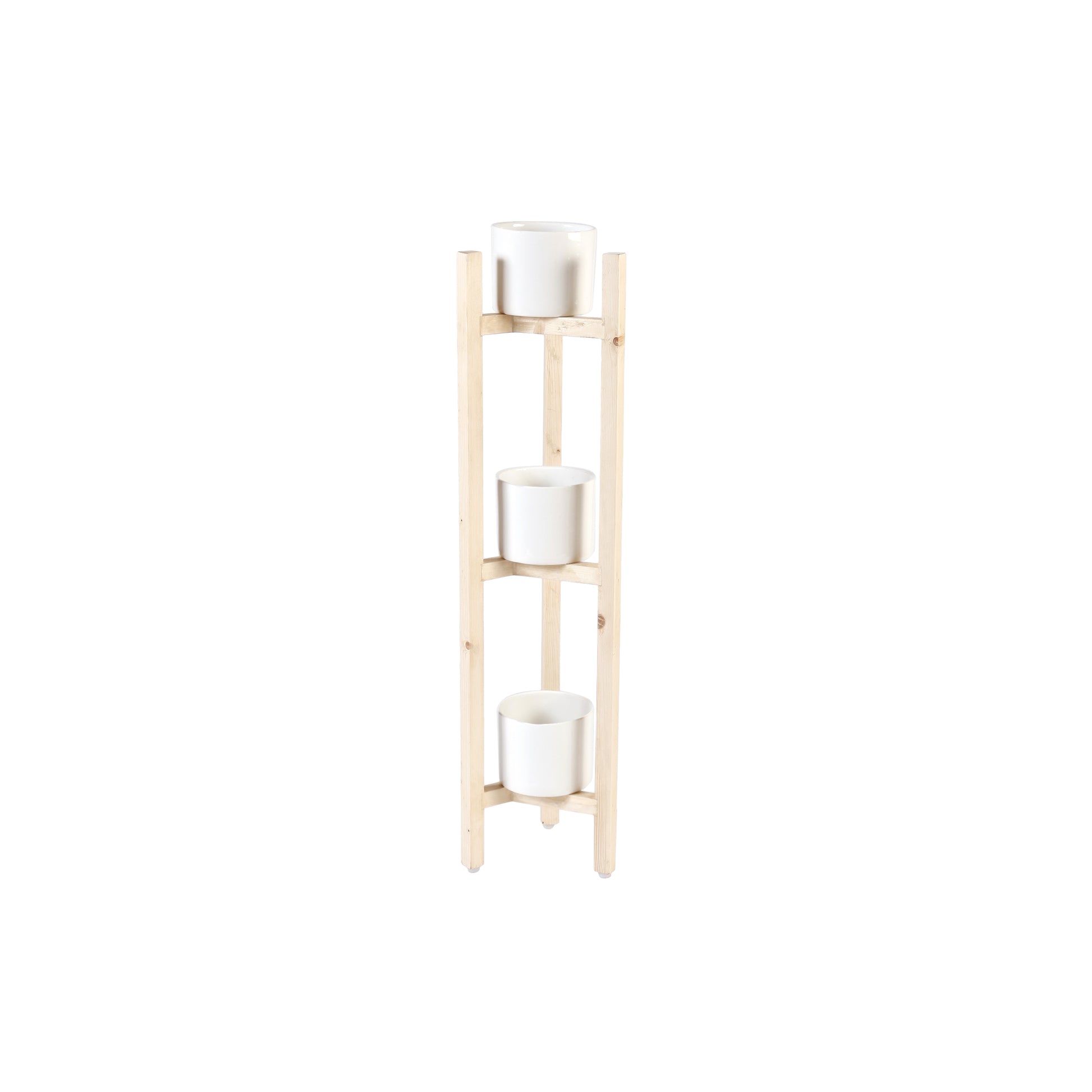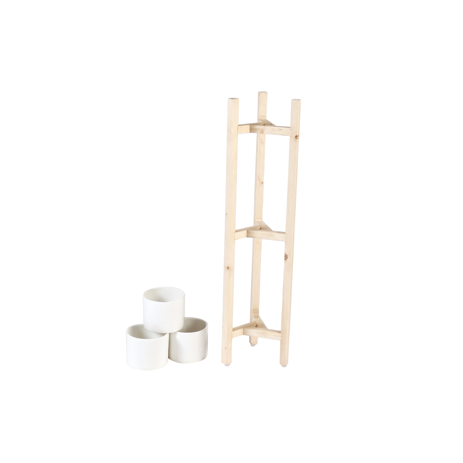 INCLUSIONS: One Three Level Wooden Planter Stand, Three White Ceramic Pots, Accessories kept in the picture are for display purposes only.