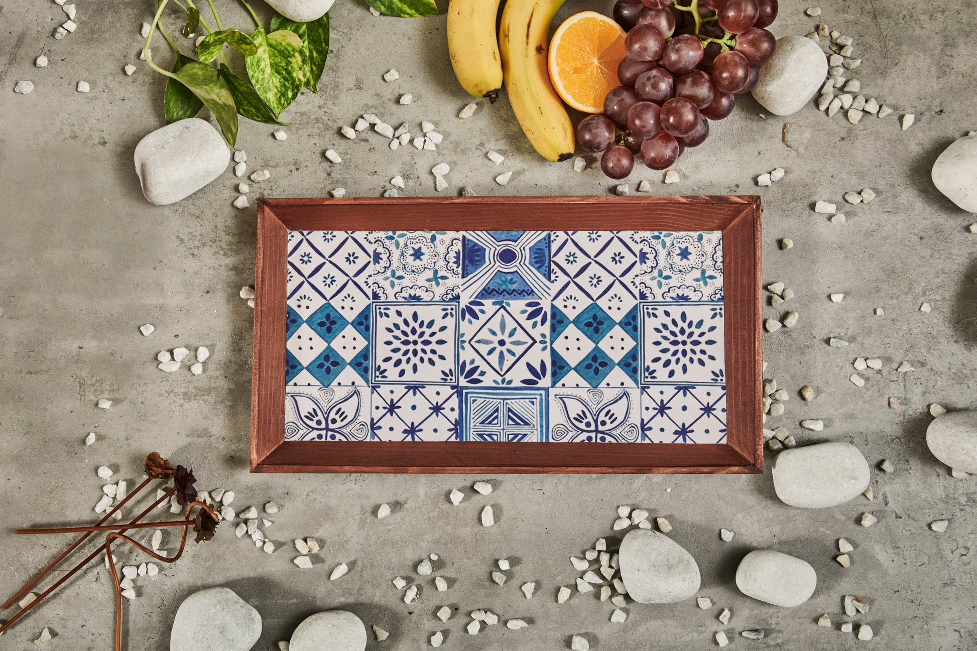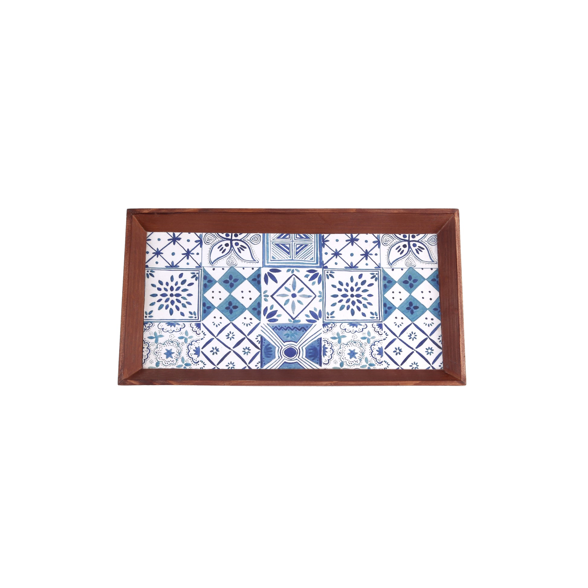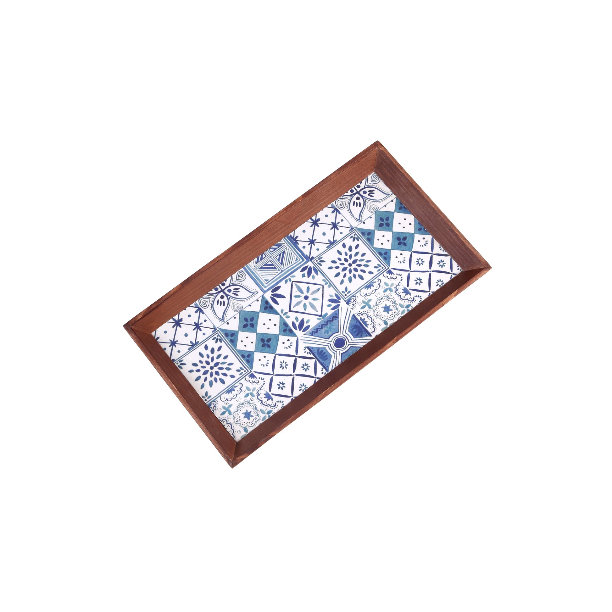 A Tiny Mistake Turkish Blue Tiles Rectangle Wooden Serving Tray, 35 x 20 x 2 cm