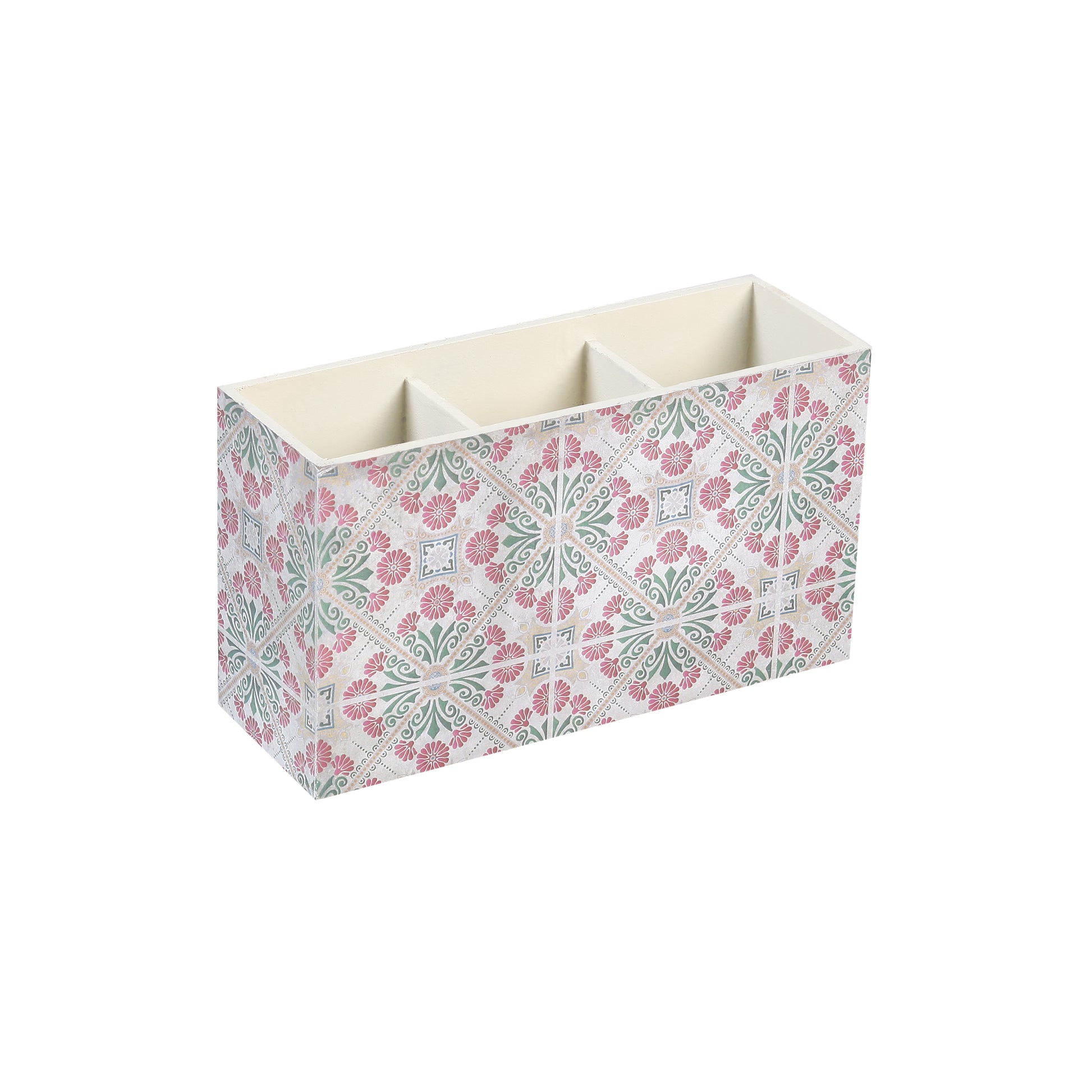 A Tiny Mistake Turkish Pink Tiles Wooden Cutlery Holder, 18 x 10 x 6.5 cm