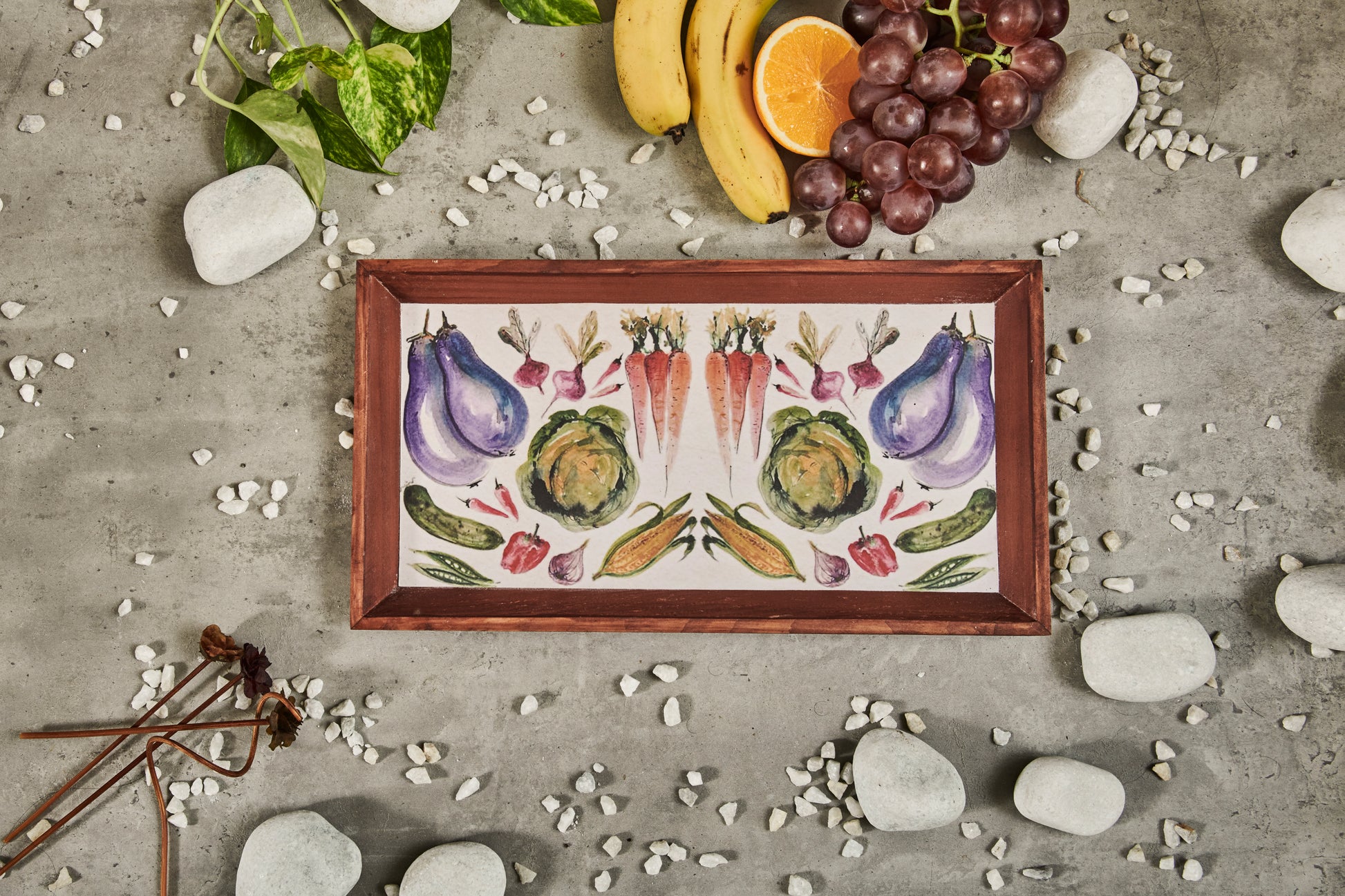 A Tiny Mistake Vegetables Rectangle Wooden Serving Tray, 35 x 20 x 2 cm