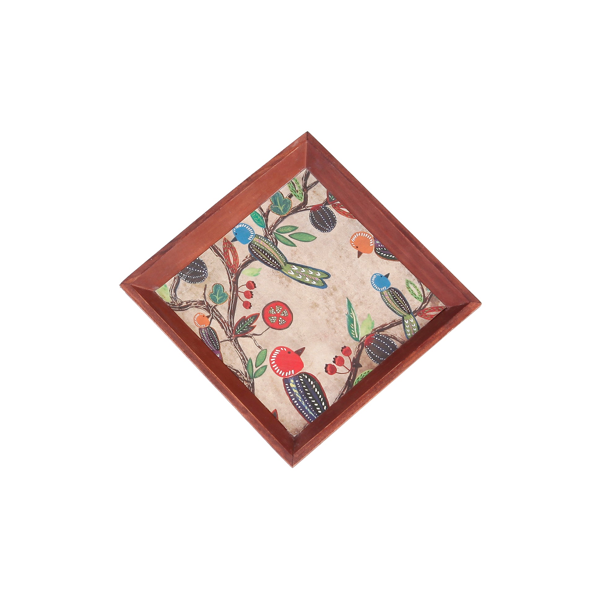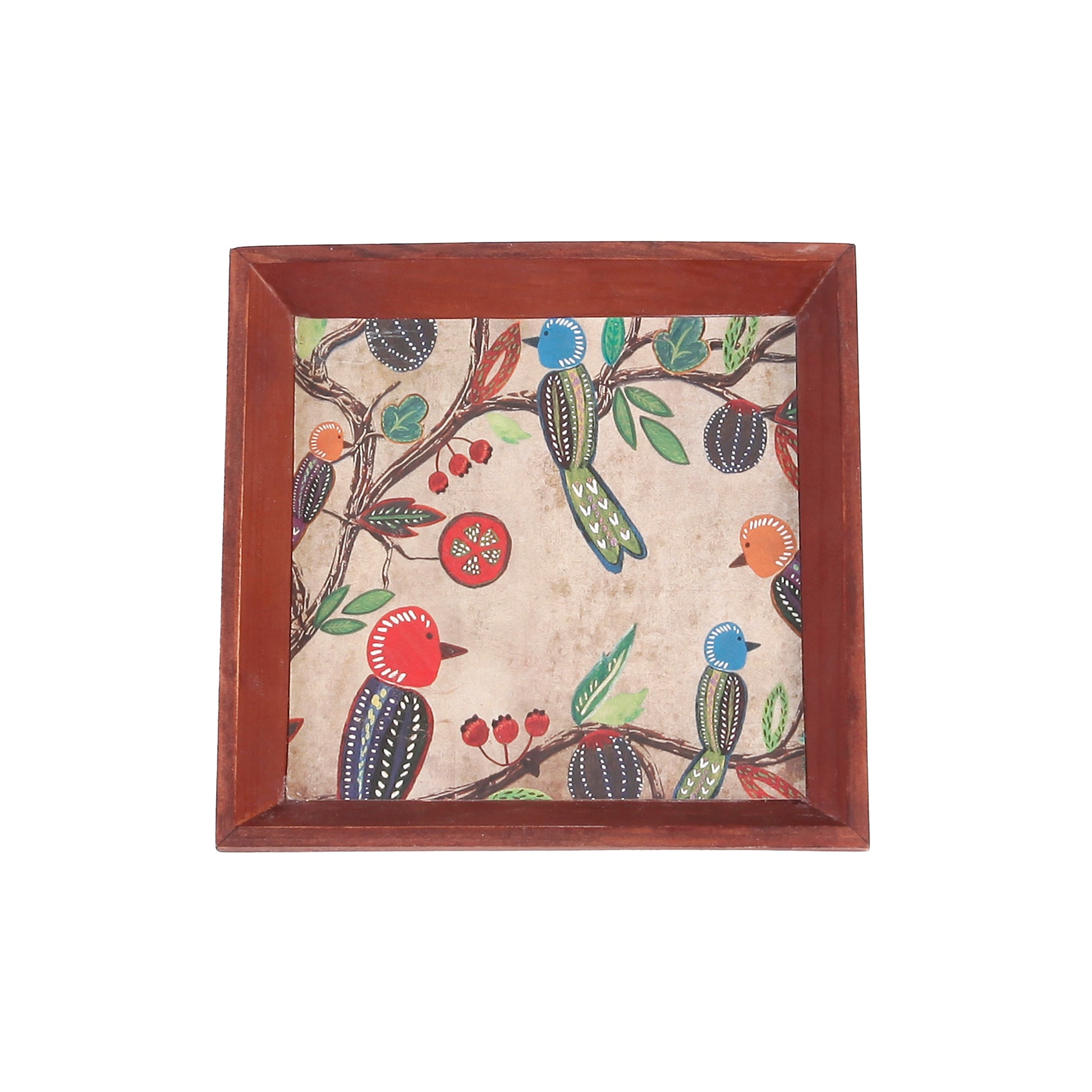 A Tiny Mistake Vintage Birds Small Square Wooden Serving Tray, 18 x 18 x 2 cm