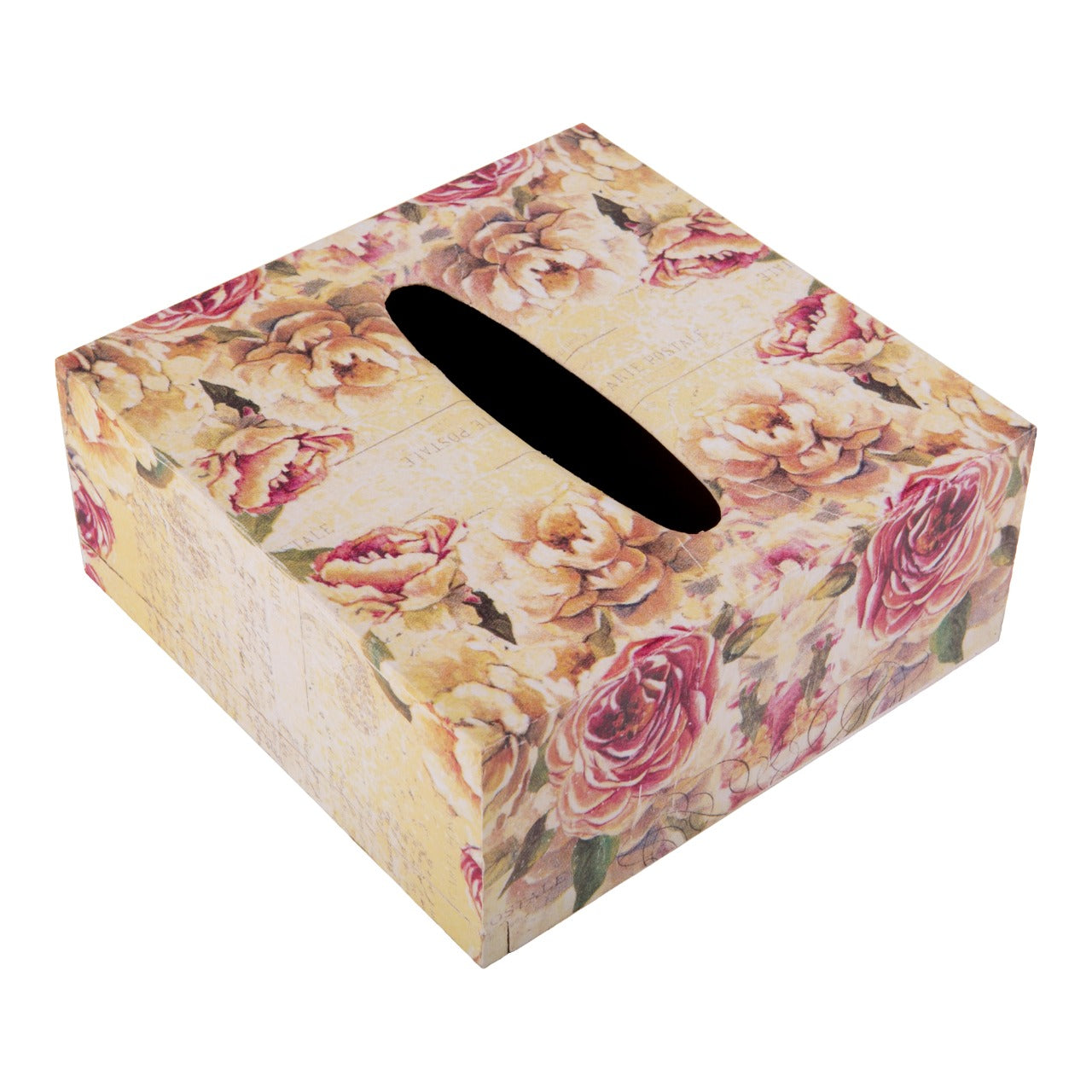 A Tiny Mistake Vintage Floral Pattern Wooden Square Tissue Box, 18 x 18x 7.5 cm