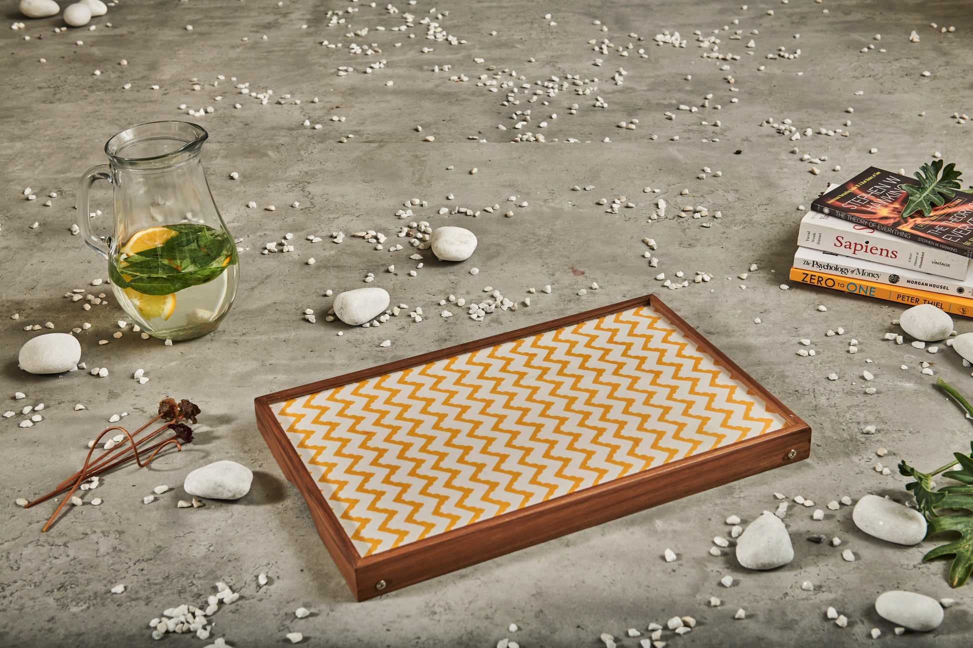 A Tiny Mistake Yellow Chevron Butler Tray, Laptop Desk, Breakfast Table