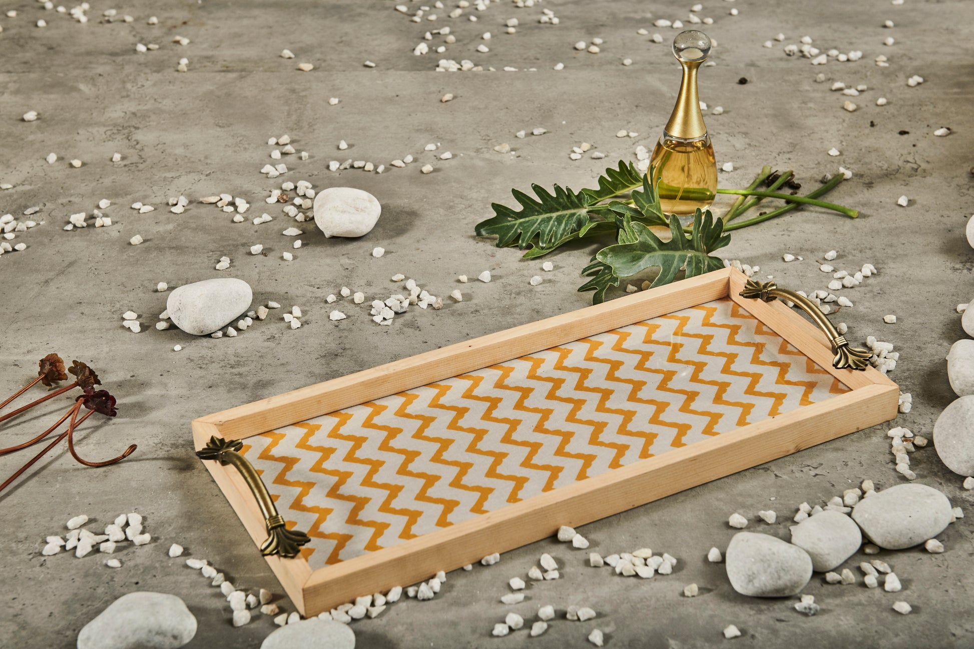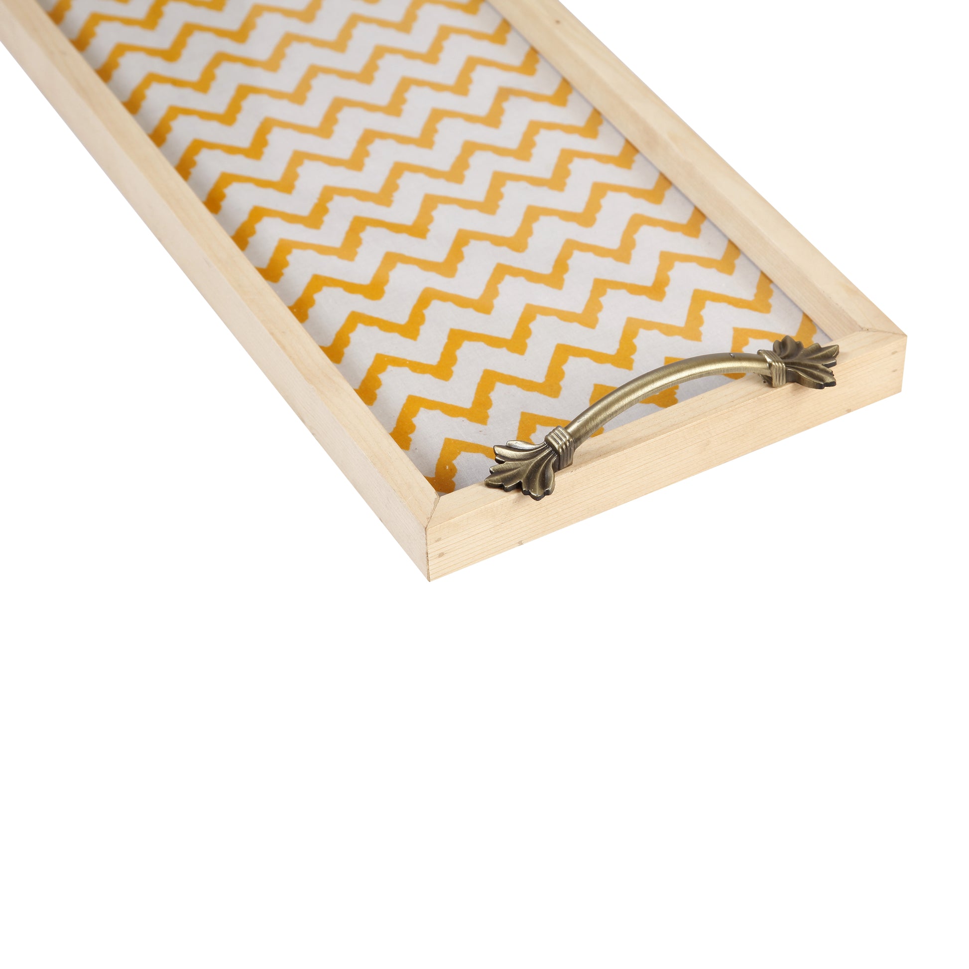 A Tiny Mistake Yellow Chevron Pine Tray with Handle Serving Pine Wood Tray
