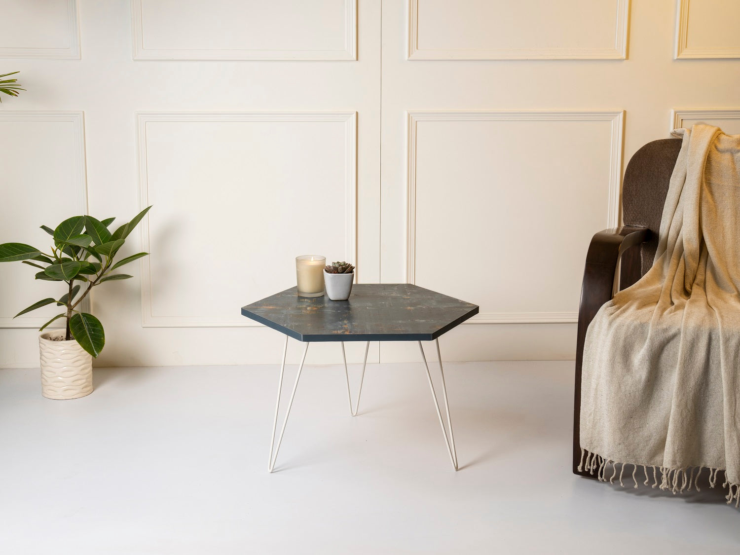 Bohemian Tint Hexagon Small Coffee Tables, Wooden Tables, Coffee Tables, Center Tables, Living Room Decor by A Tiny Mistake
