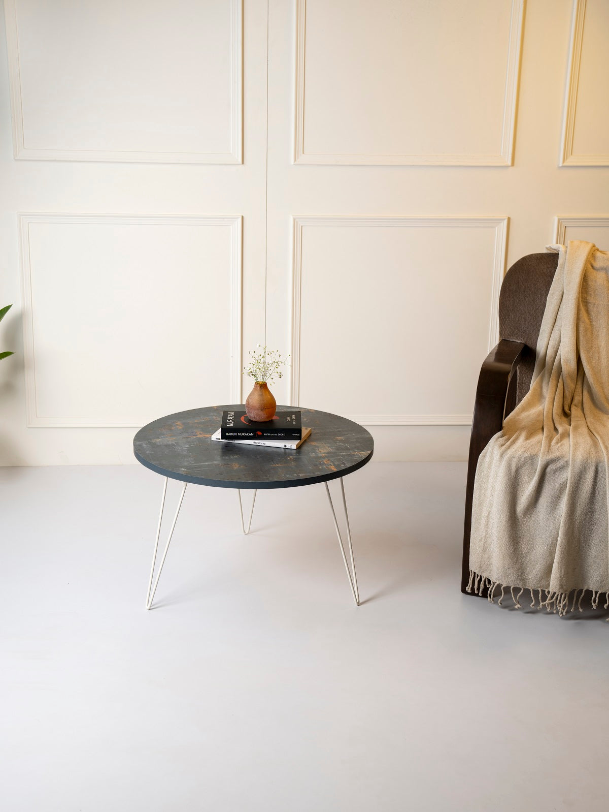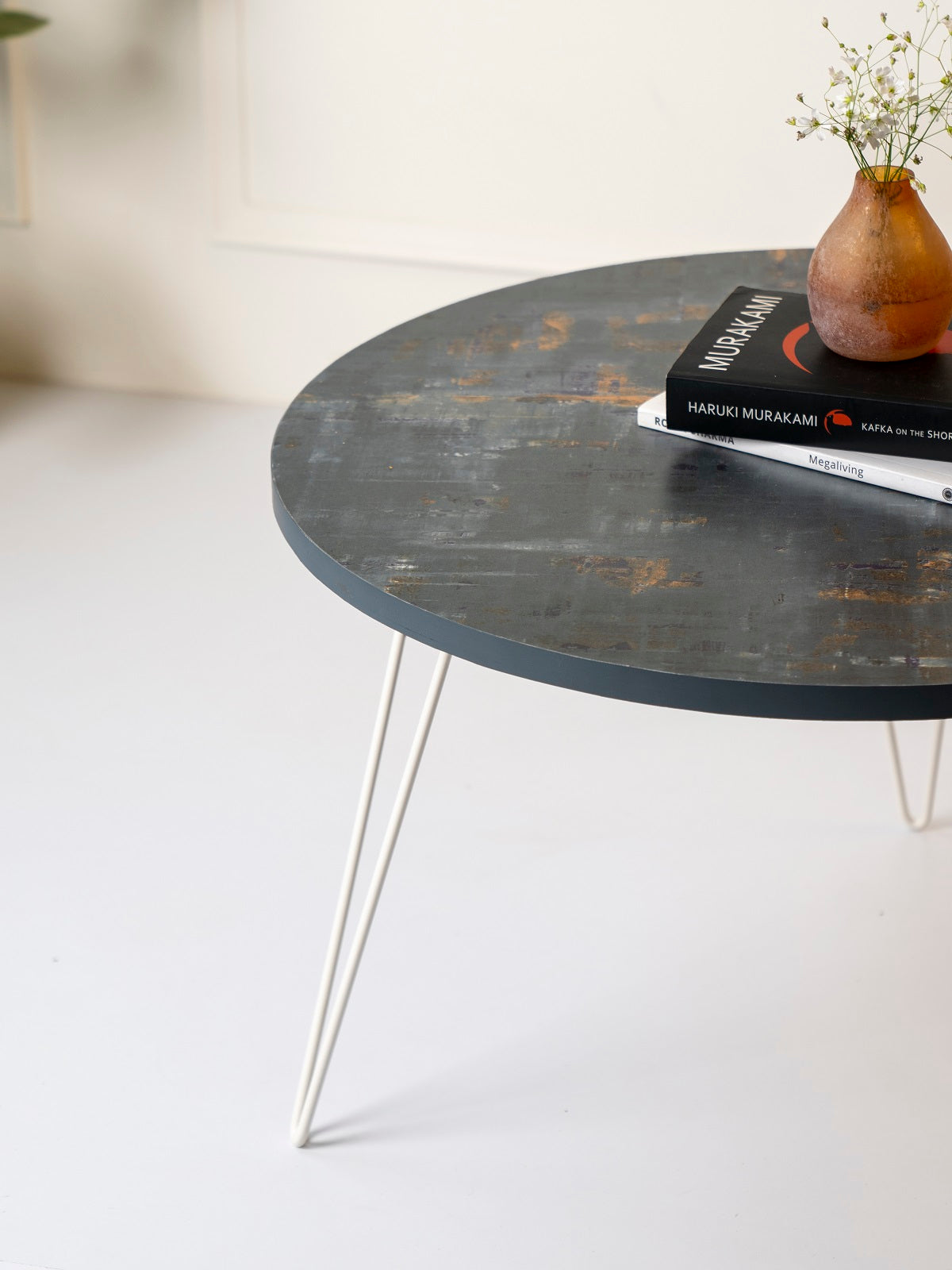 The table legs are made using high quality metal which are then powder coated to achieve the desired colour. Since these legs are handcrafted and metal is actually melted and fused to attain the desired form, there may be some blemishes (specially at the joints or at the holes where screws can be put to join the legs with table tops). These are not defects and should not be treated as such.