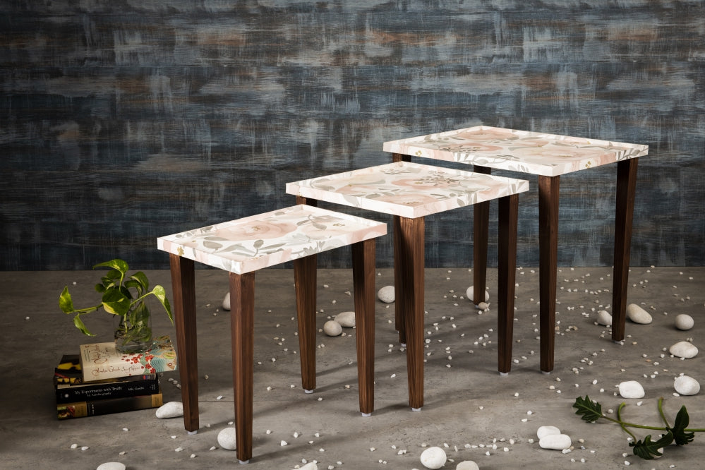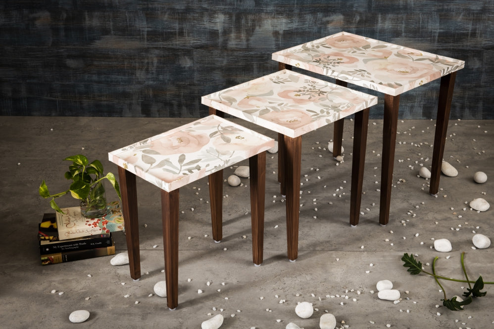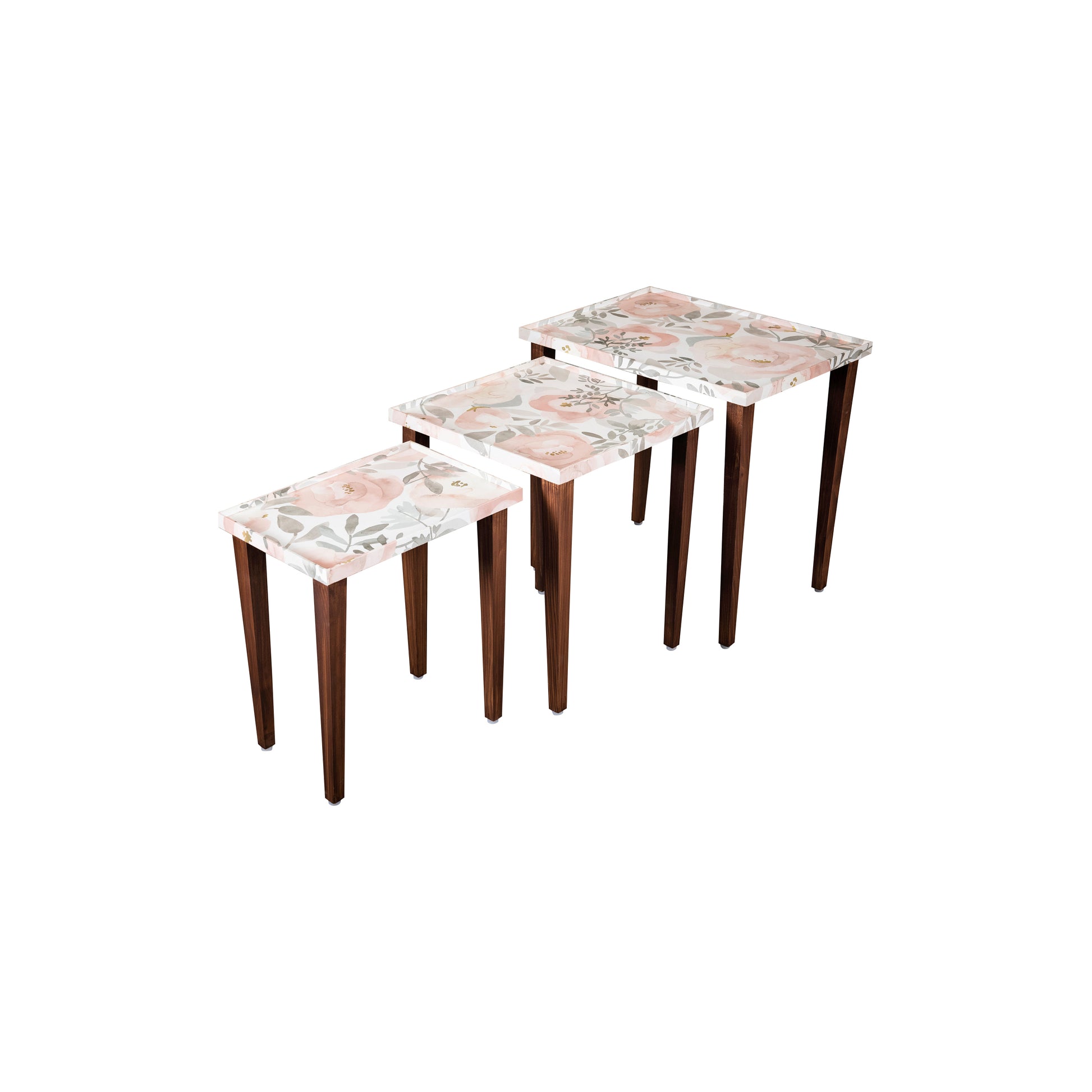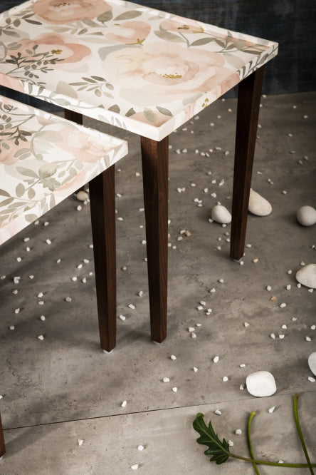 A Tiny Mistake Blossom (Peach and Pink) Wooden Rectangle Nesting Tables (Set of 3), Living Room Decor