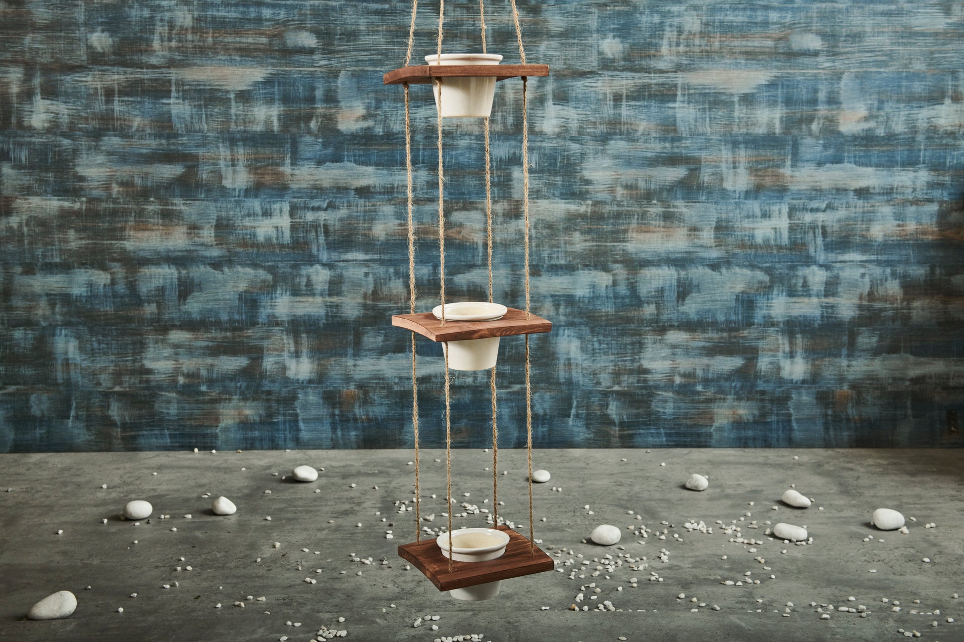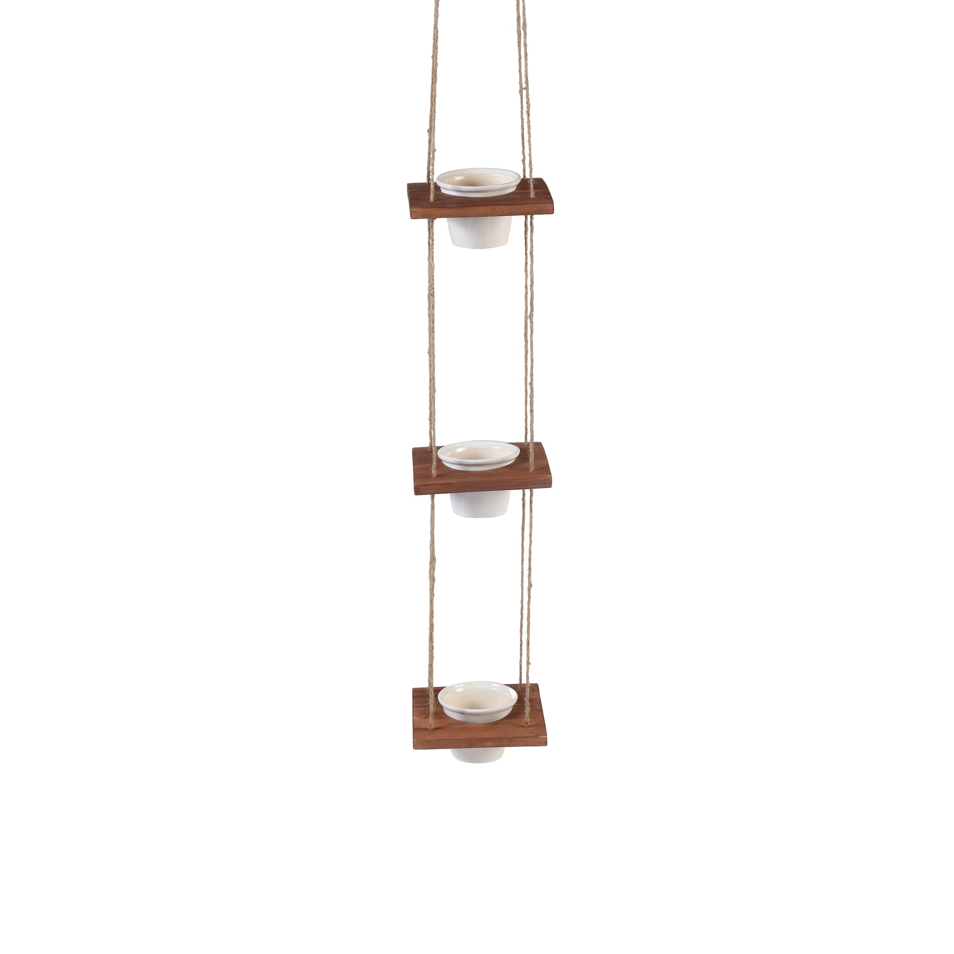 A Tiny Mistake Hanging Pinewood and Ceramic Planter Vertical, Indoor Planter for Home Decor, Wooden Planter with Three Pots (Dark)