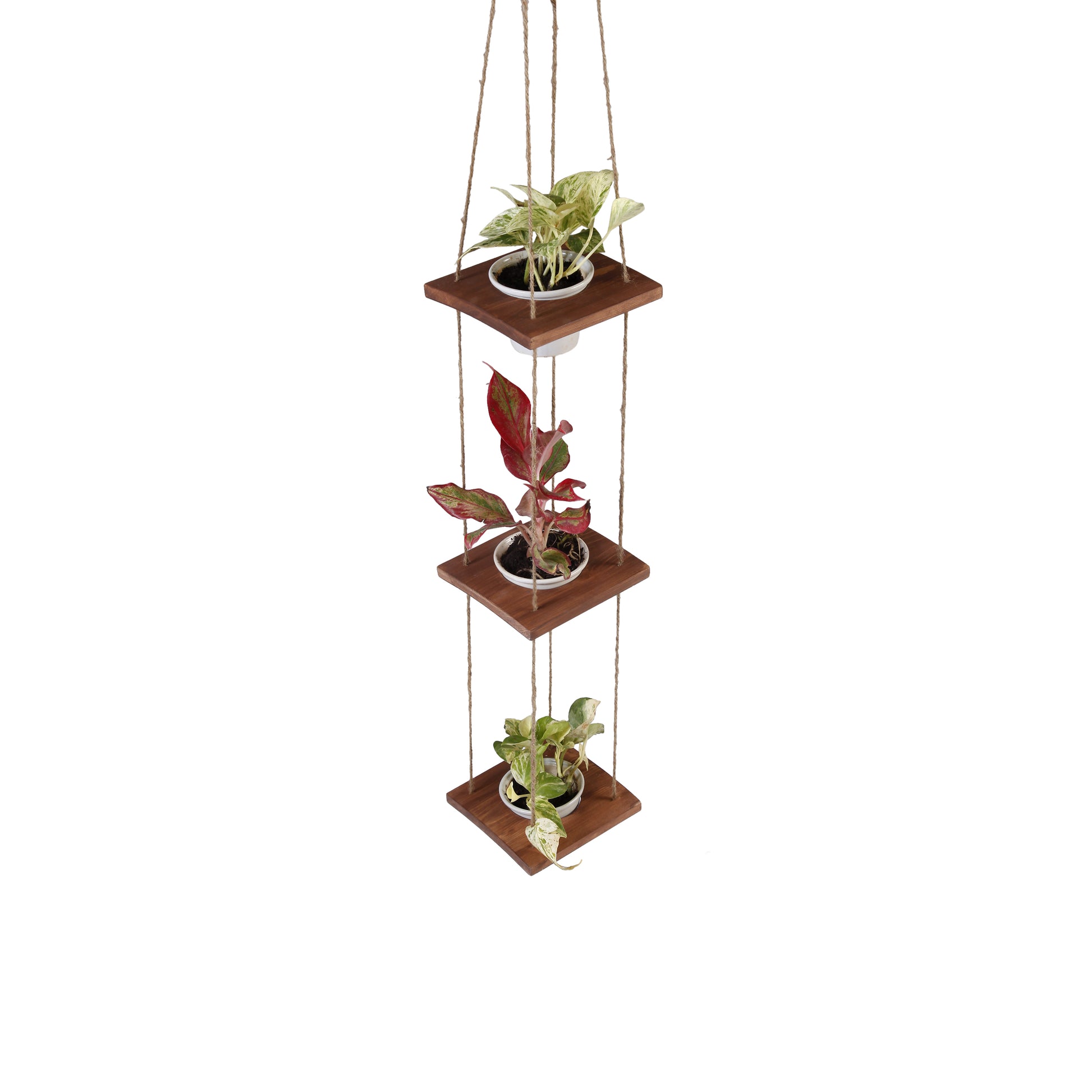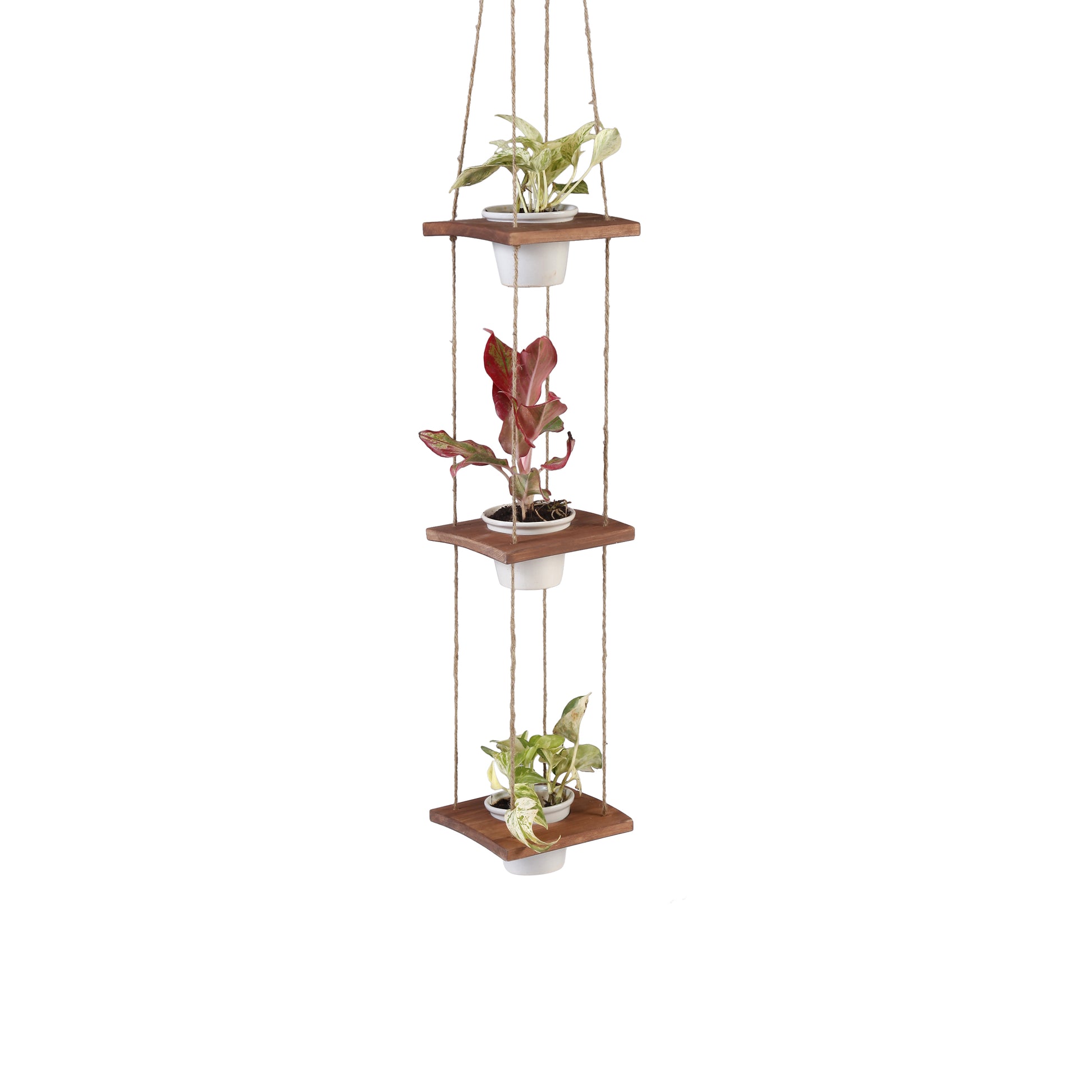 INCLUSIONS: 1 Hanging Pine Wood Single Line (Vertical), we give rope, wood plank with ceramic pots in assorted colours , Plants kept in the picture are for display purposes only.