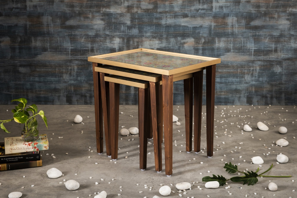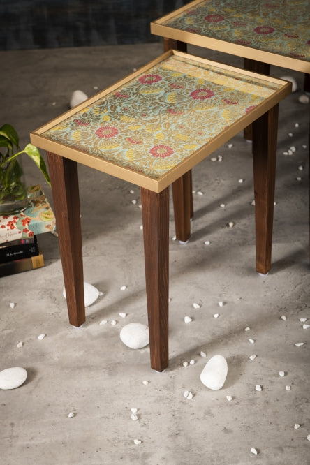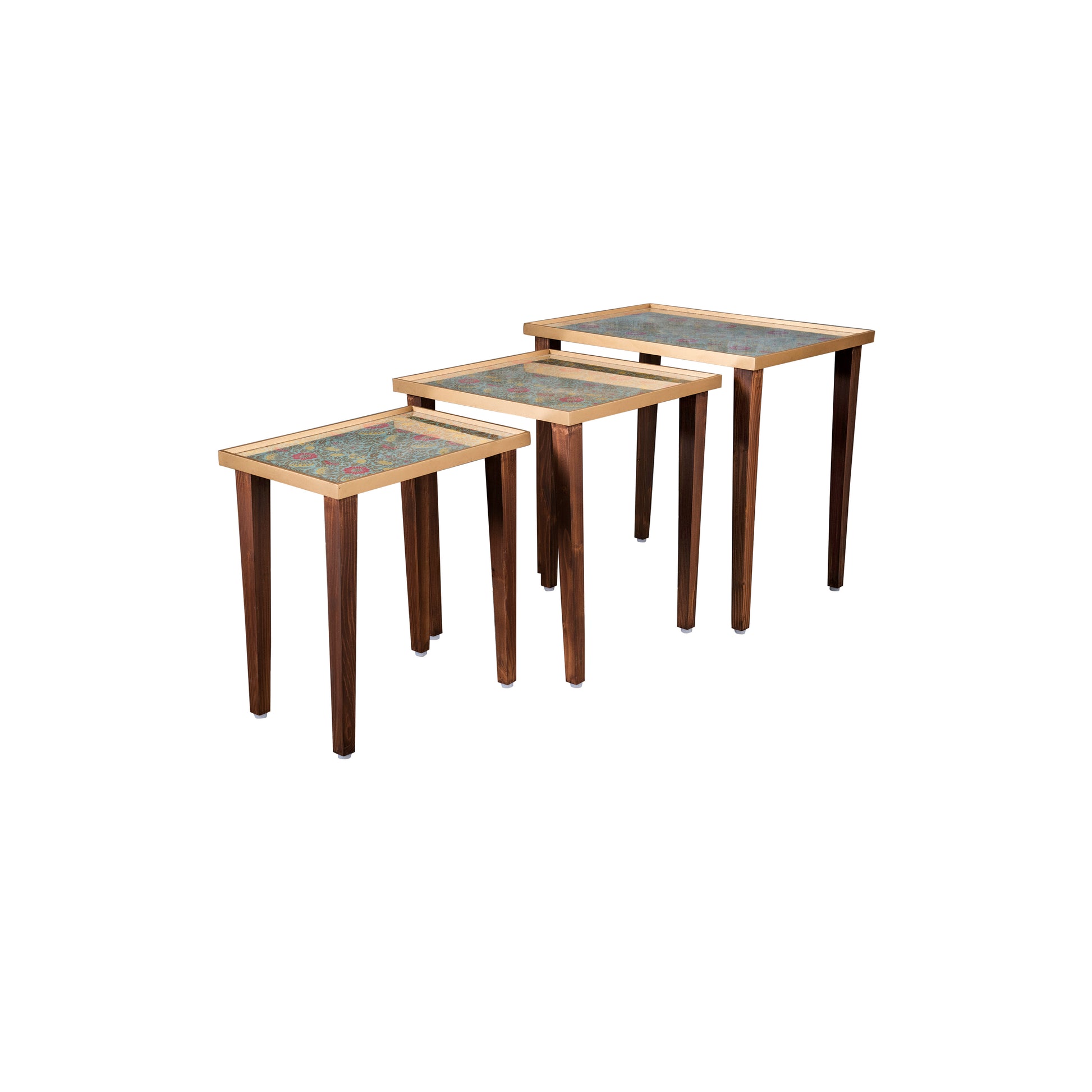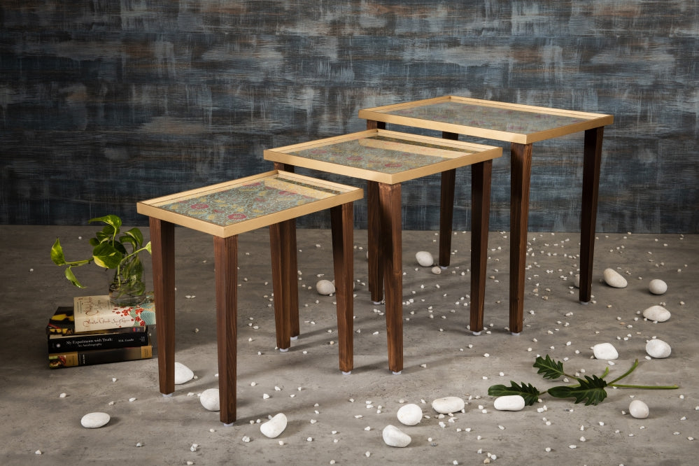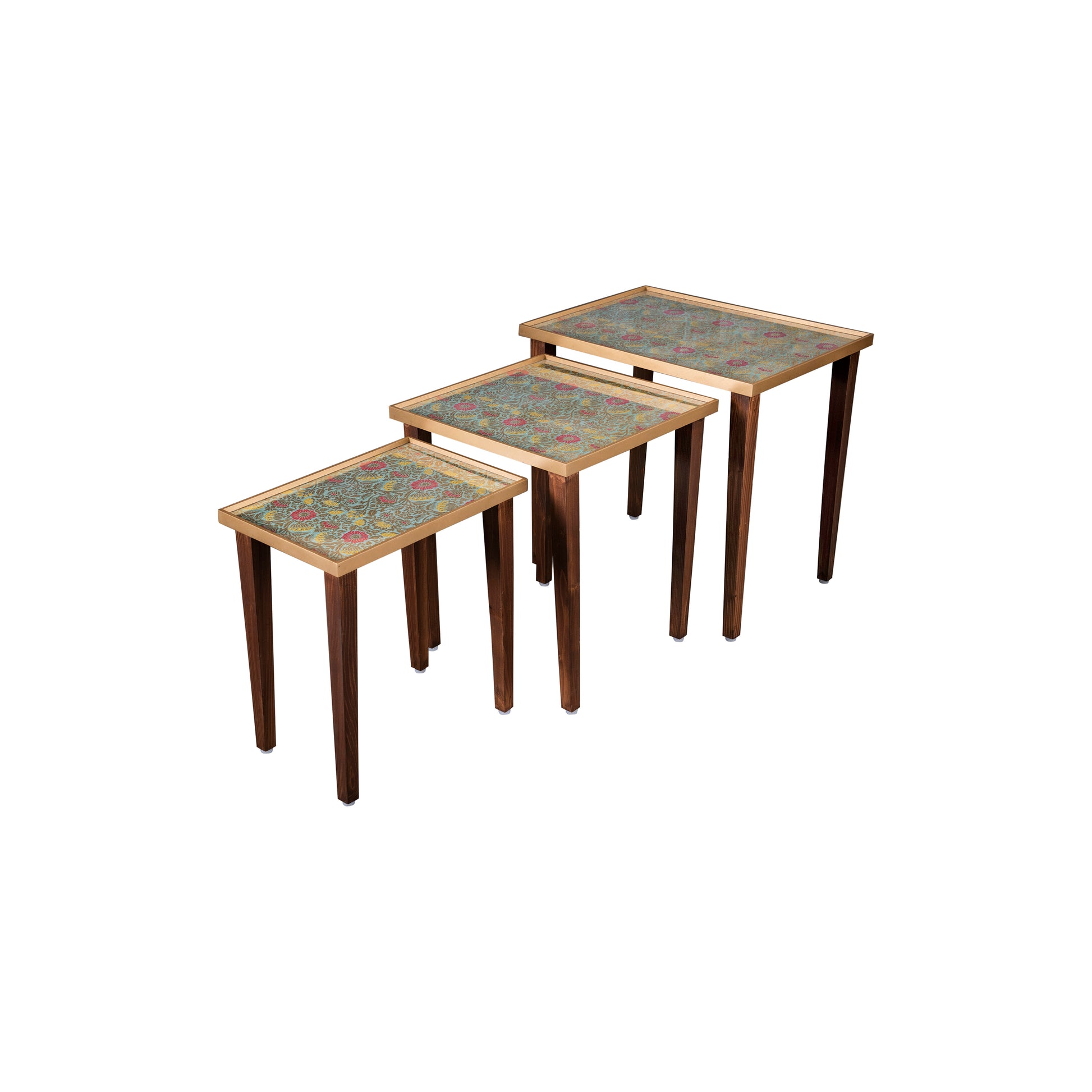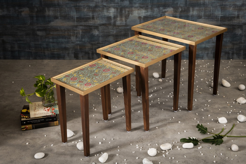 A Tiny Mistake Khimkhwab Weave Brocade Wooden Rectangle Nesting Tables (Set of 3), Living Room Decor