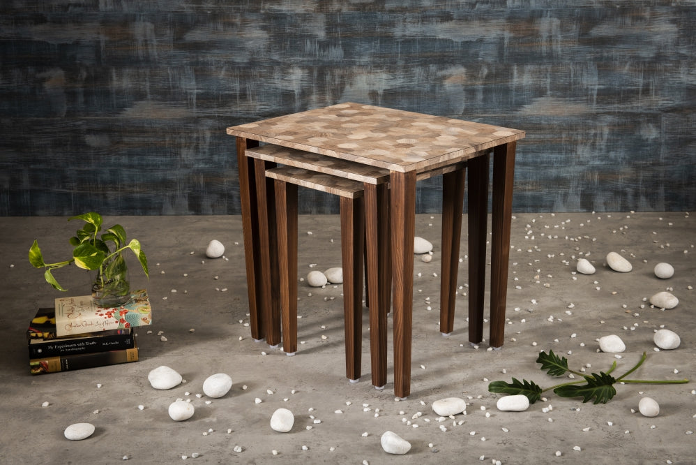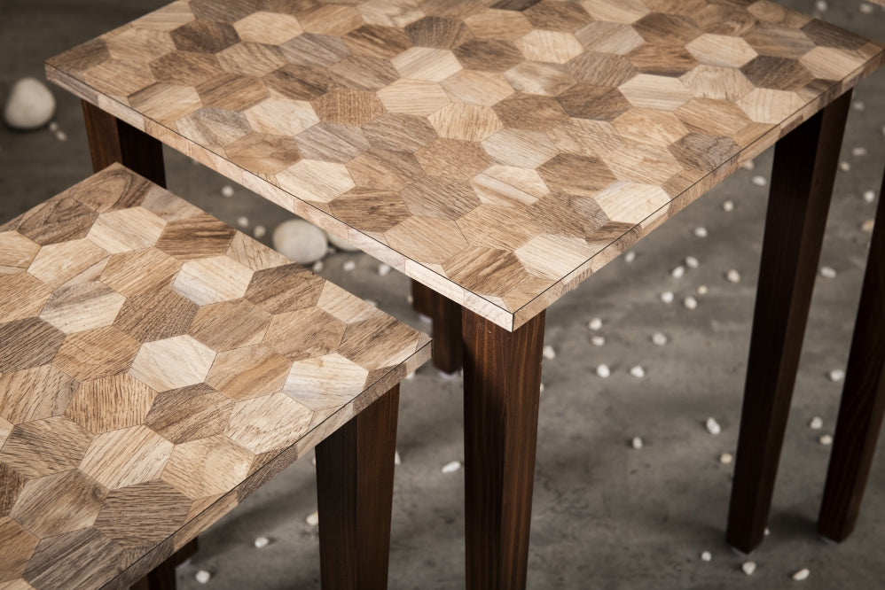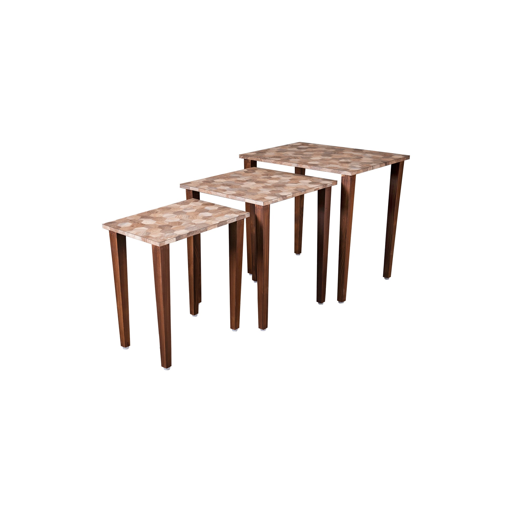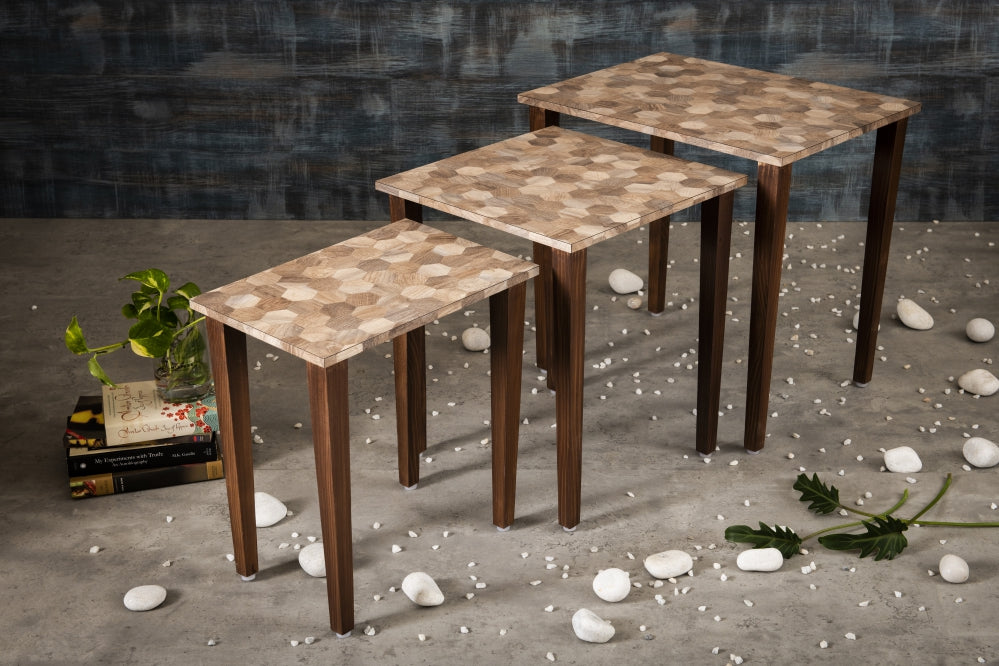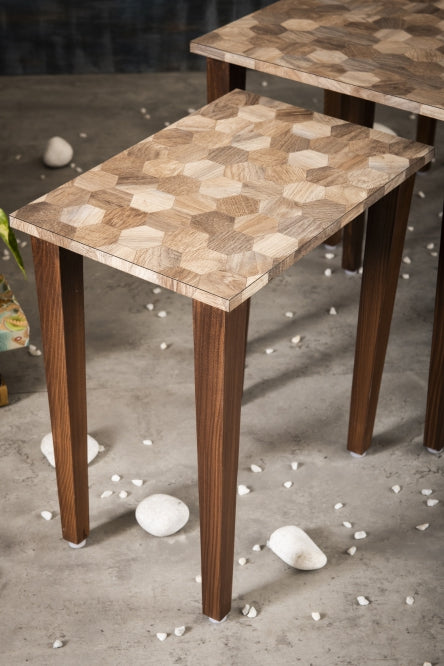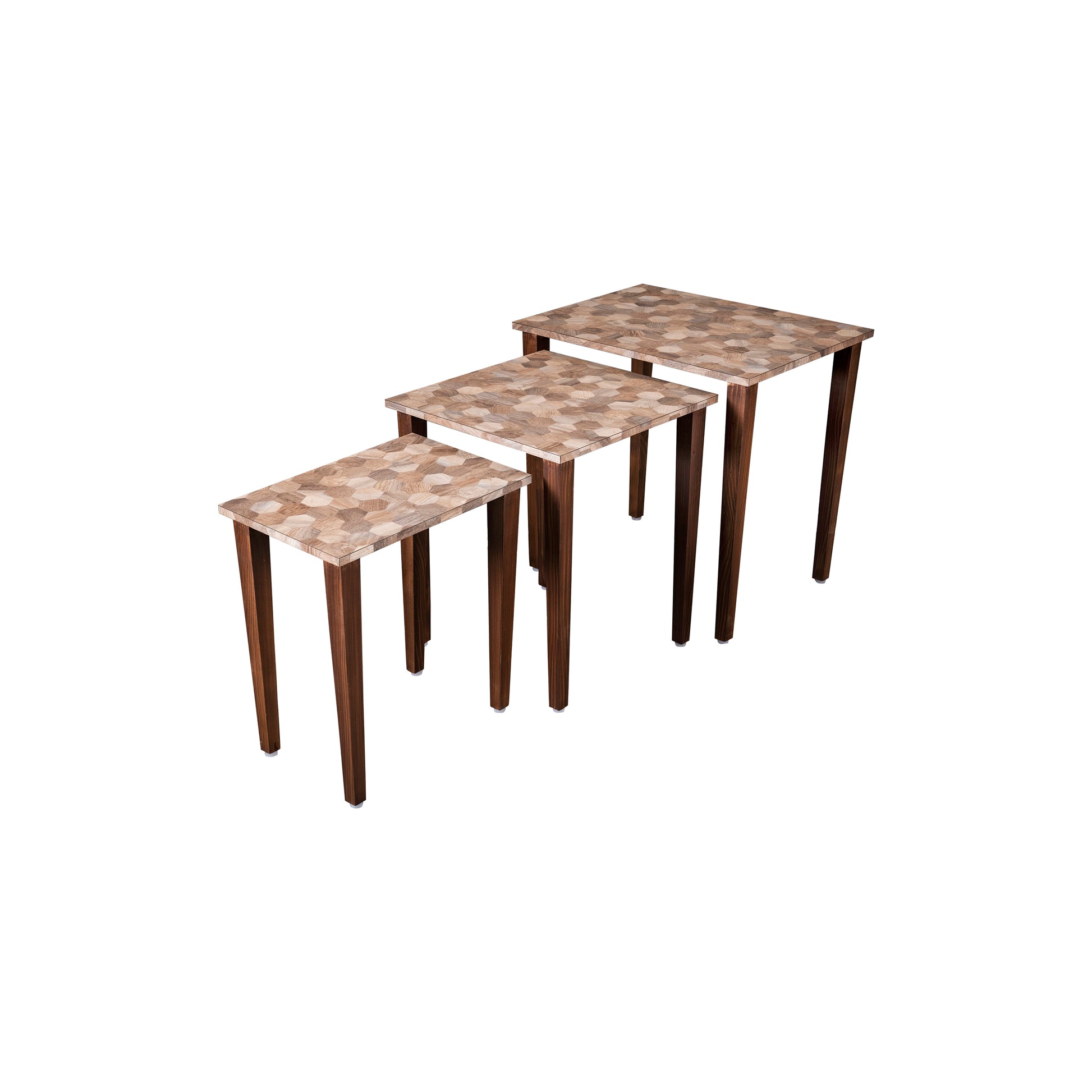 A Tiny Mistake Hexagon Patches Wooden Rectangle Nesting Tables (Set of 3), Living Room Decor