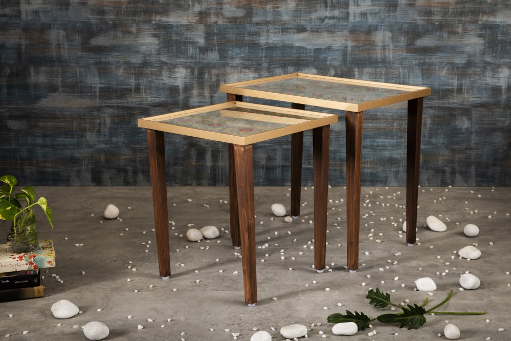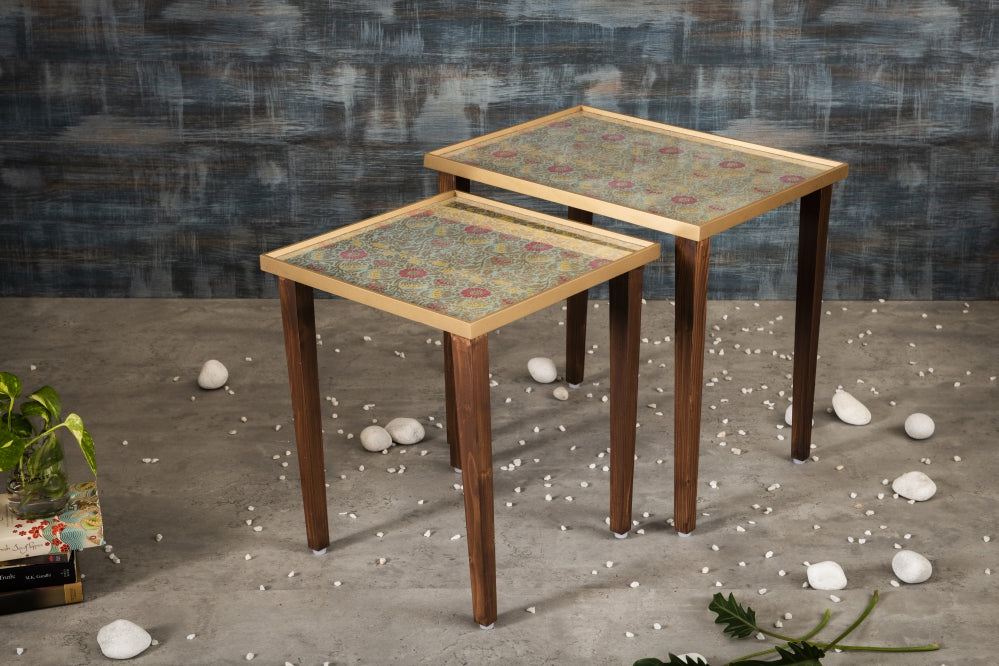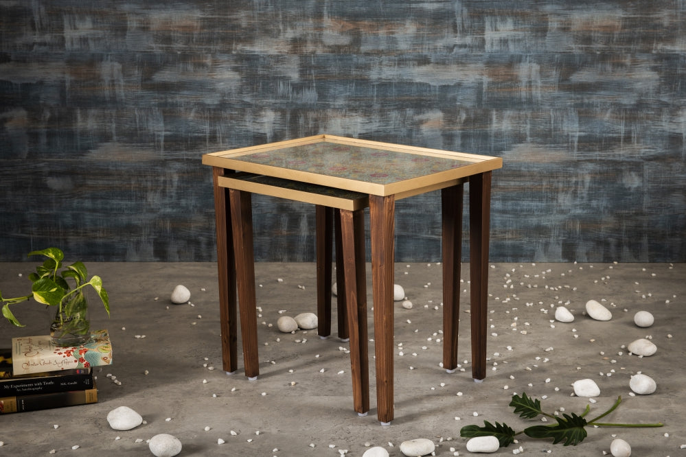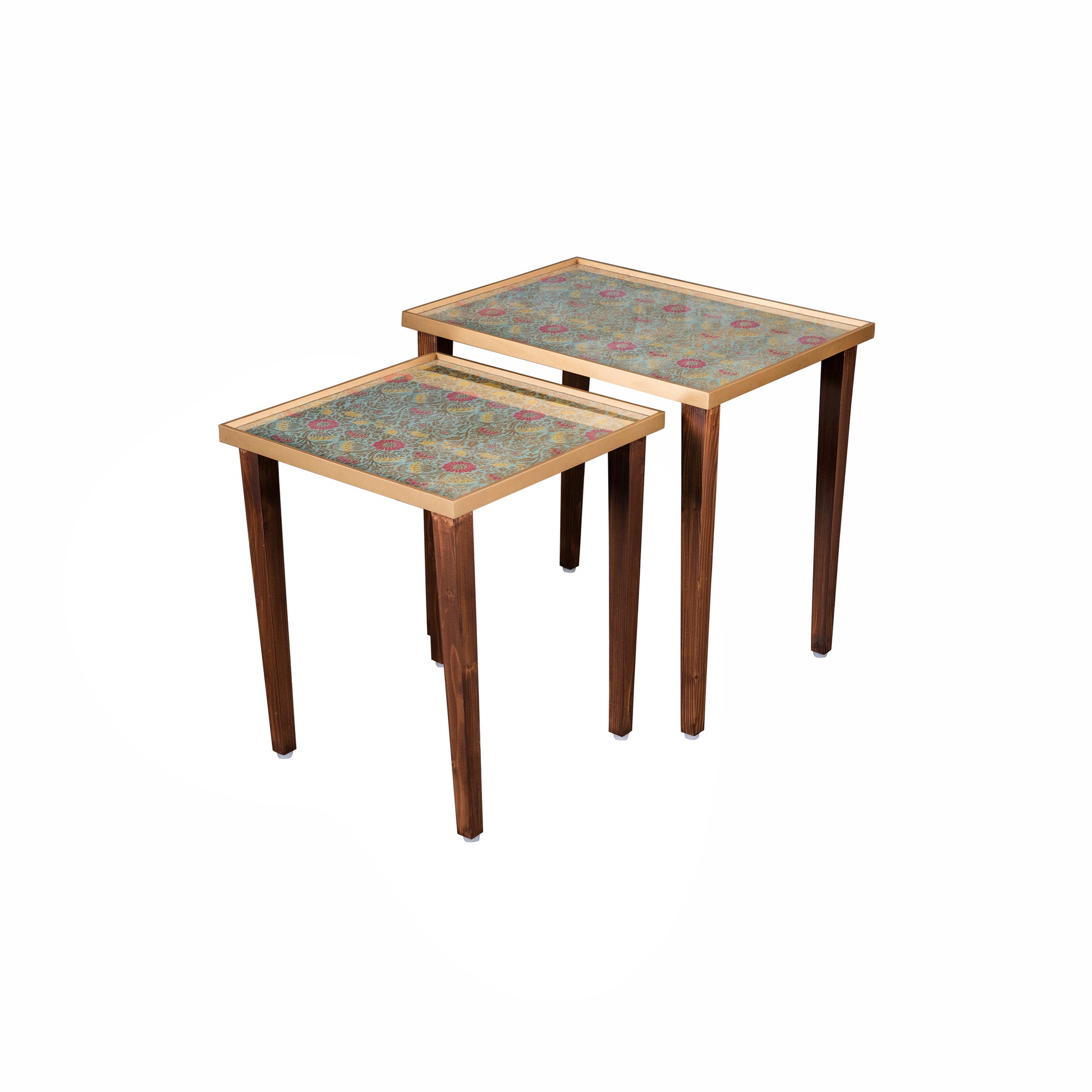 A Tiny Mistake Khimkhwab Weave Brocade Wooden Rectangle Nesting Tables (Set of 2), Living Room Decor