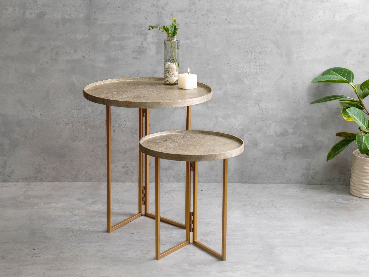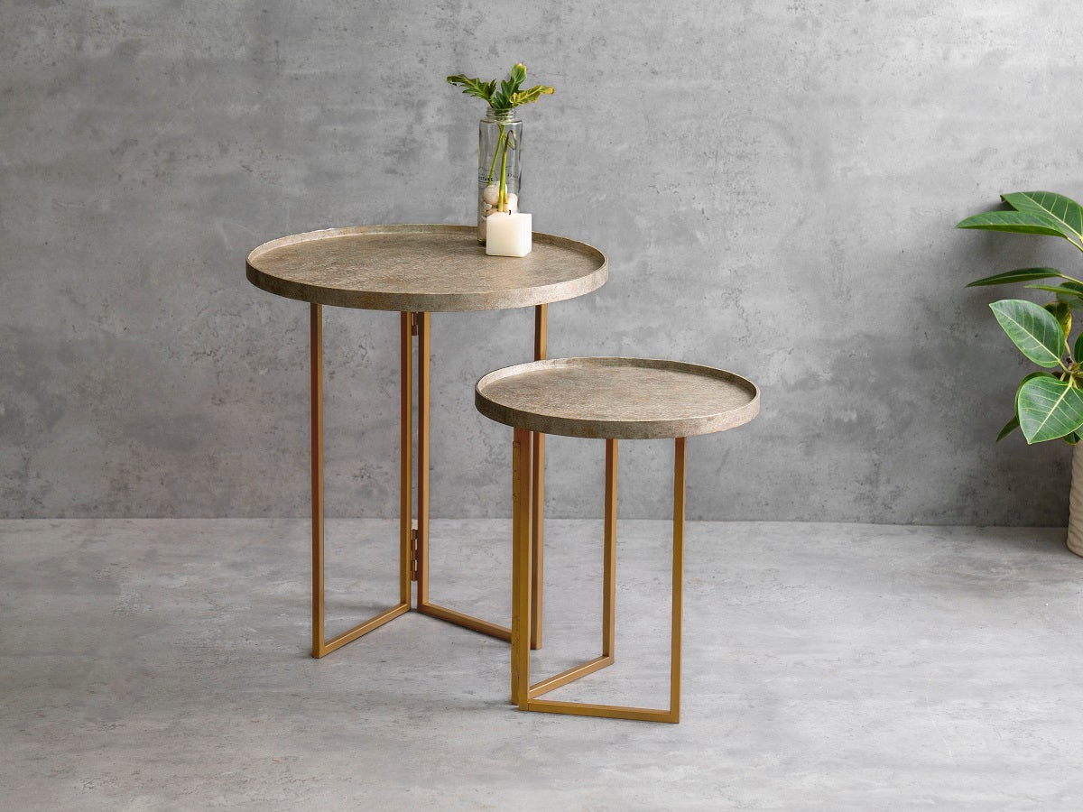 Transcendent Tinge Dark Gold Round Oblique Nesting Tables, Side Tables, Wooden Tables, Living Room Decor by A Tiny Mistake