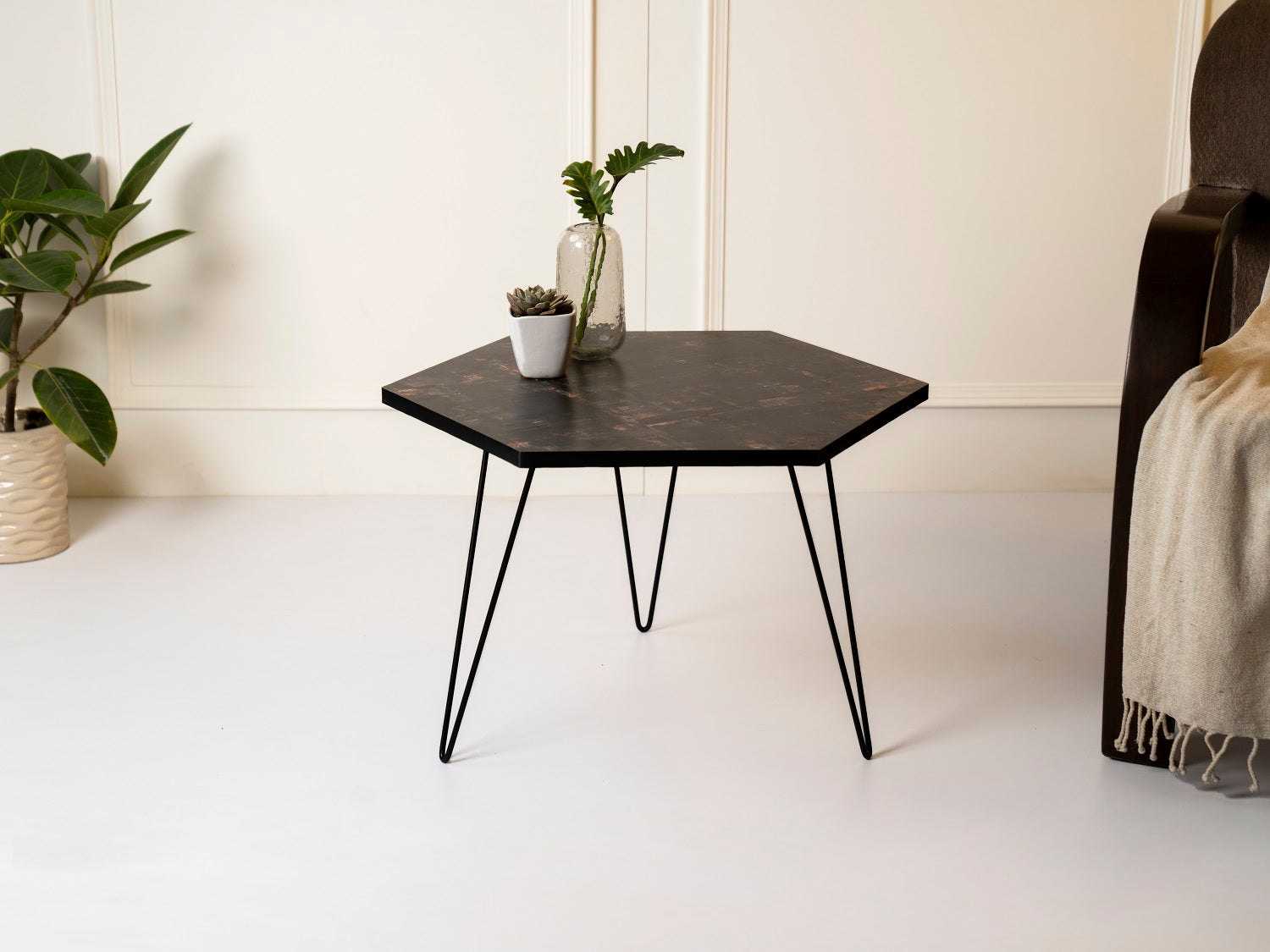 Dusk Hexagon Small Coffee Tables, Wooden Tables, Coffee Tables, Center Tables, Living Room Decor by A Tiny Mistake