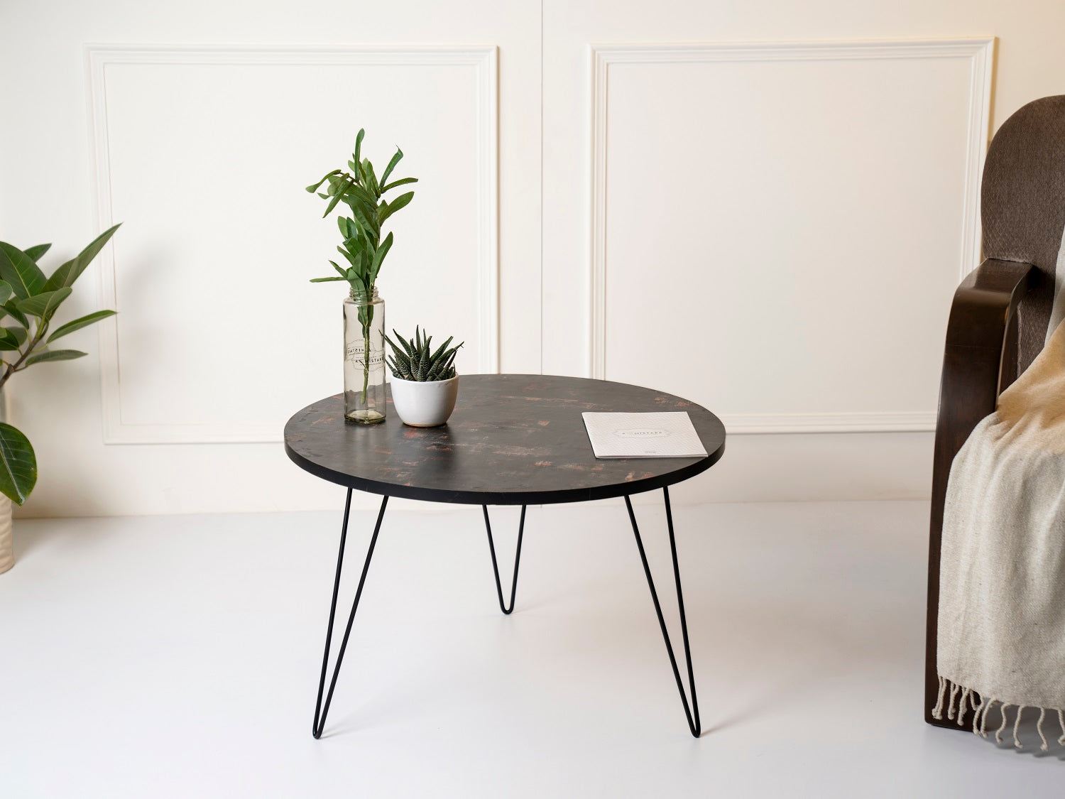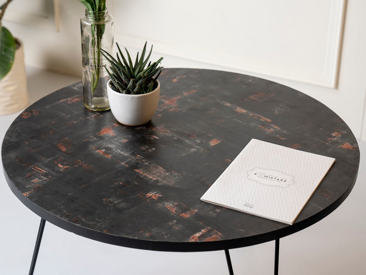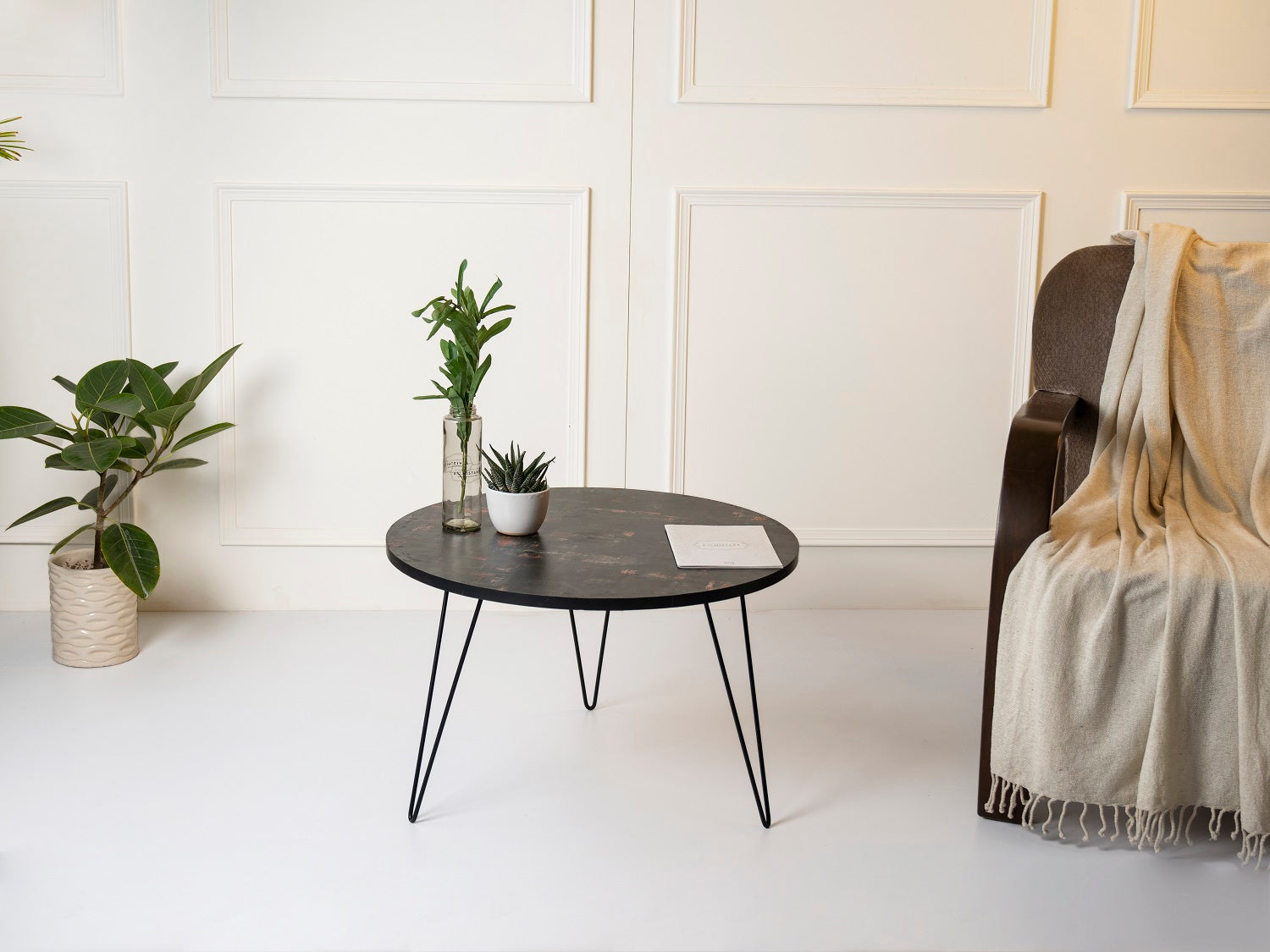 The table legs are made using high quality metal which are then powder coated to achieve the desired colour. Since these legs are handcrafted and metal is actually melted and fused to attain the desired form, there may be some blemishes (specially at the joints or at the holes where screws can be put to join the legs with table tops). These are not defects and should not be treated as such.