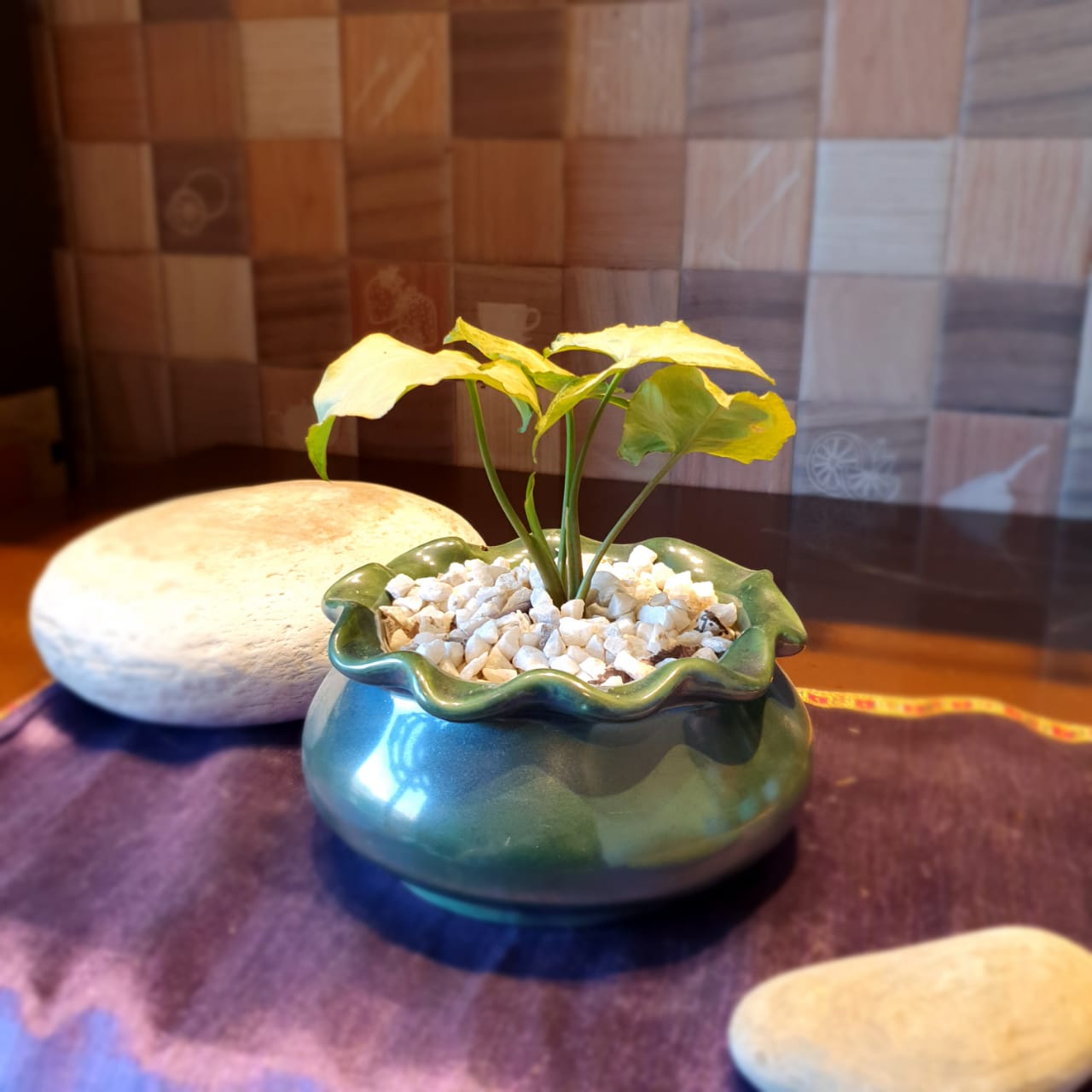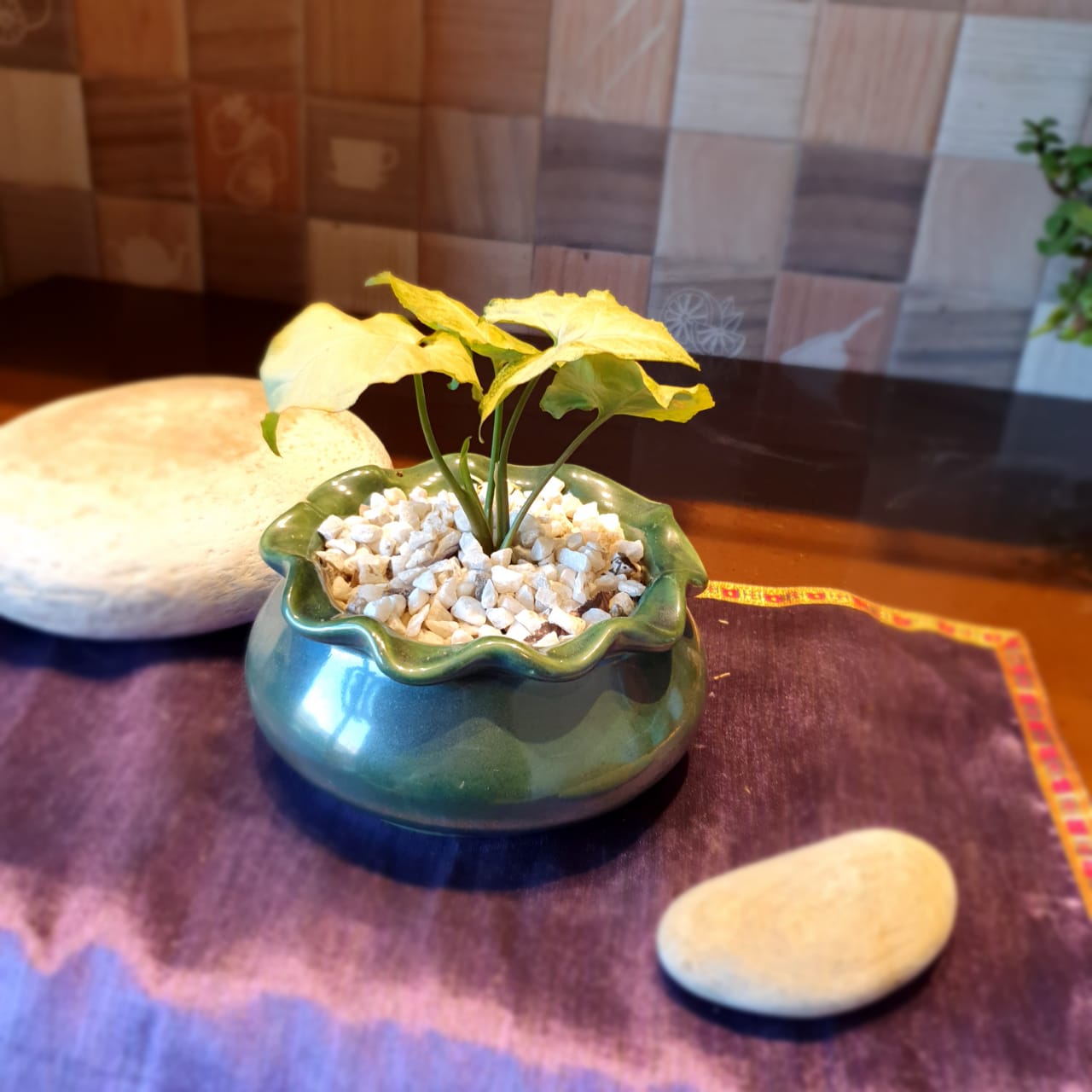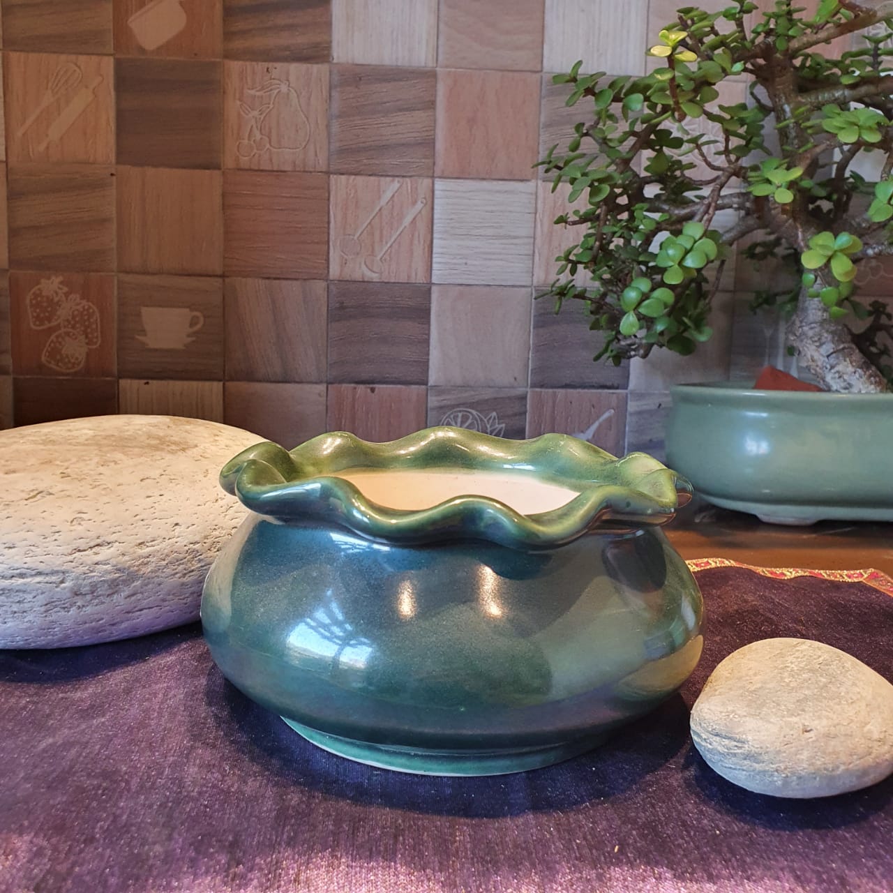 Elegant Floral Round Ceramic Planter, Outdoor and Indoor Planter, Ceramic Planter for Real Plants, 14.5 x 14.5 x 13.5 cm (Jade)
