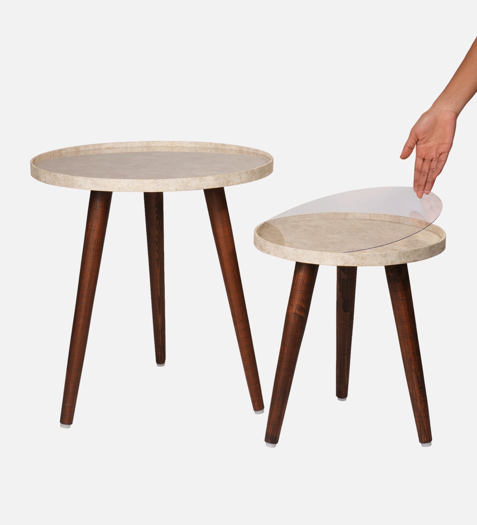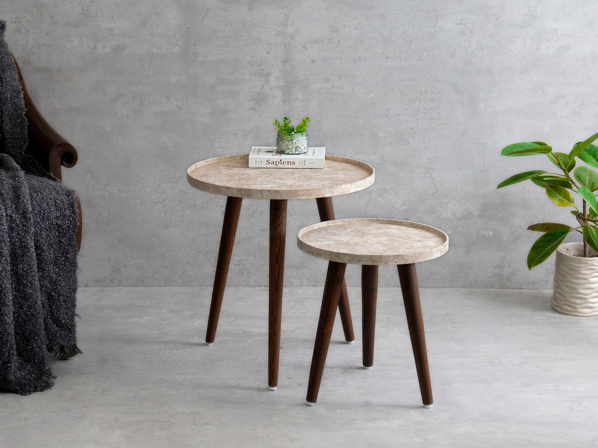 With round tops and cylindrical tapering legs, these tables are a delight to have. Put them in your living room next to your sofa, they’re the perfect companion when you have people over. These lightweight tables can be moved around easily and are utility centric, especially in large gatherings when you need to spread furniture across the space.