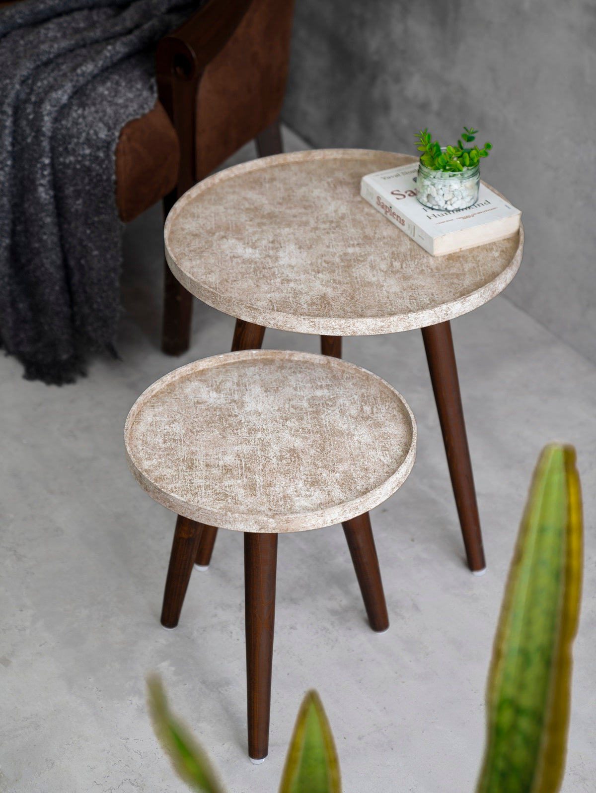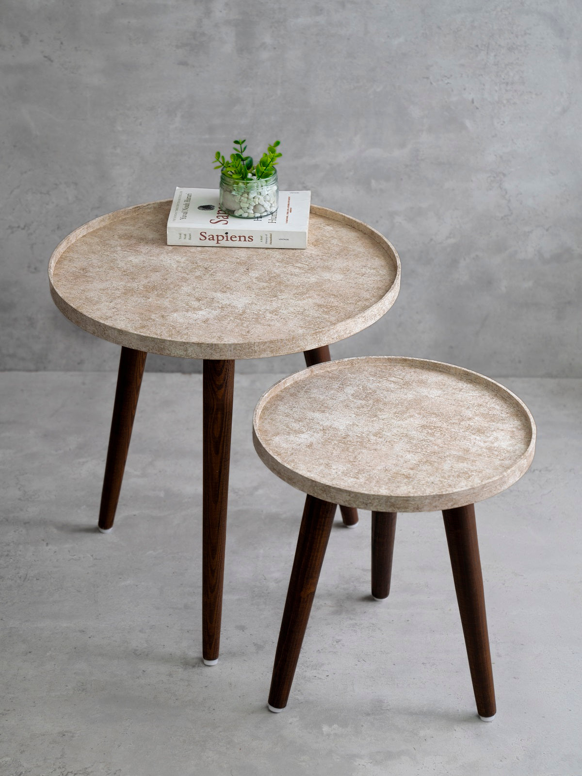 Ethereal Gold Round Nesting Tables with Wooden Legs, Side Tables, Wooden Tables, Living Room Decor by A Tiny Mistake