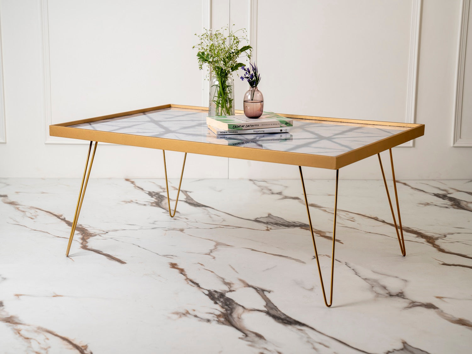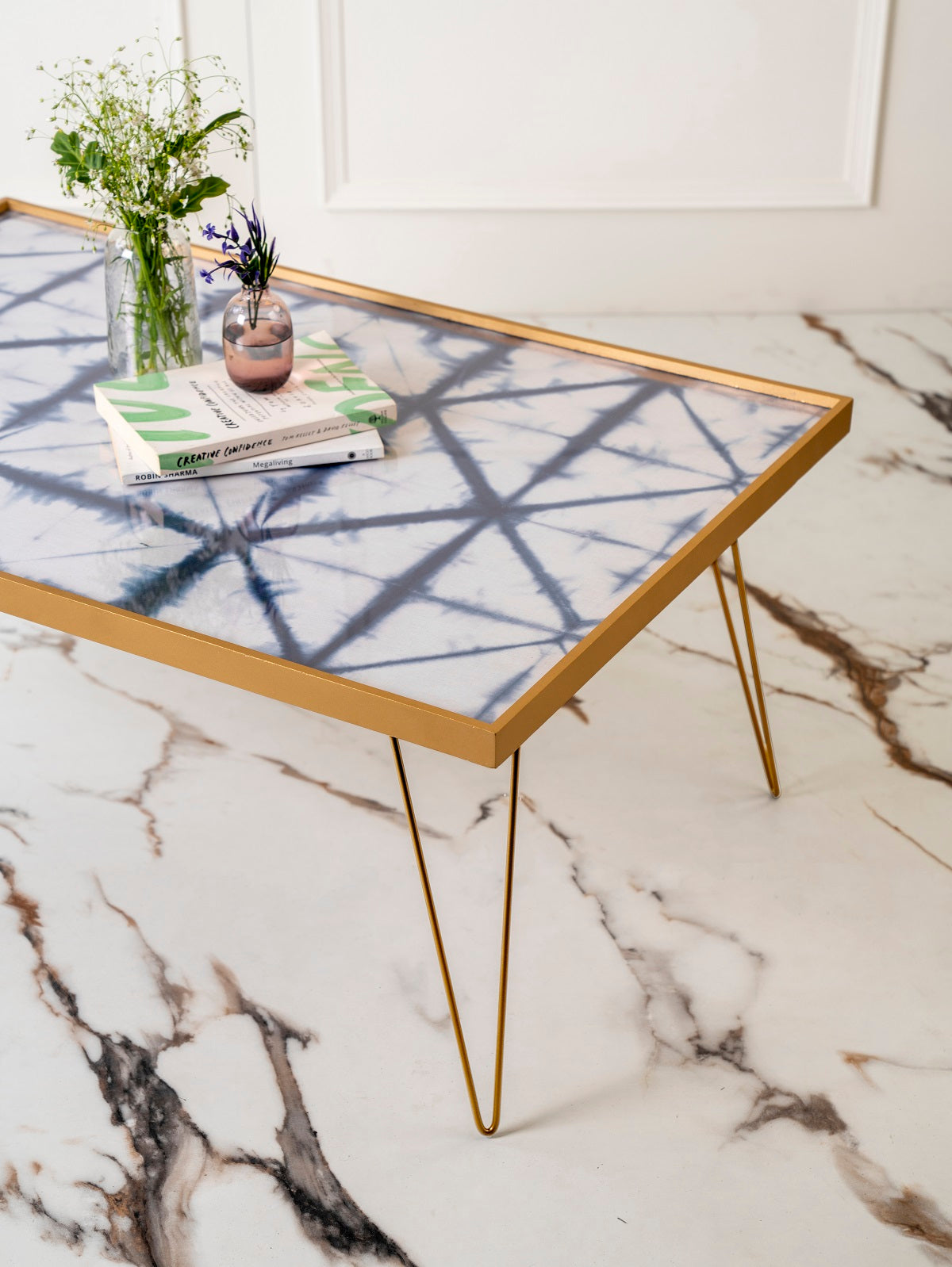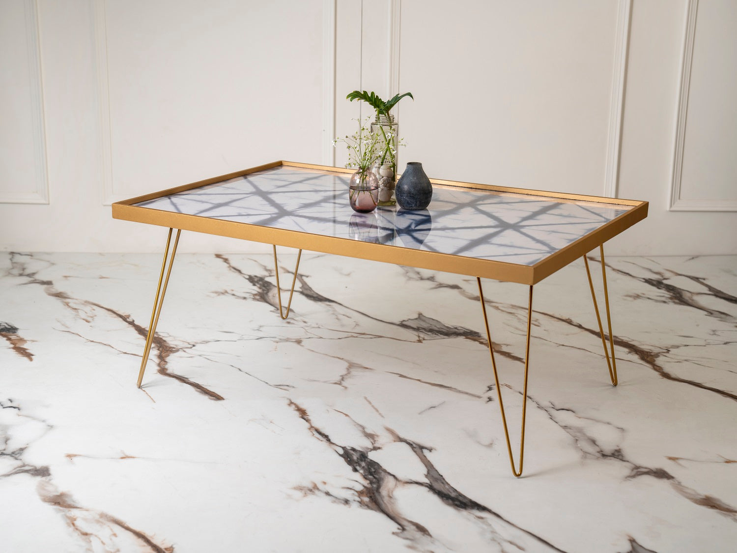 Beautiful patterns formed by this dyed fabric come together in this coffee table to form the centre piece that your decor ever so desires.