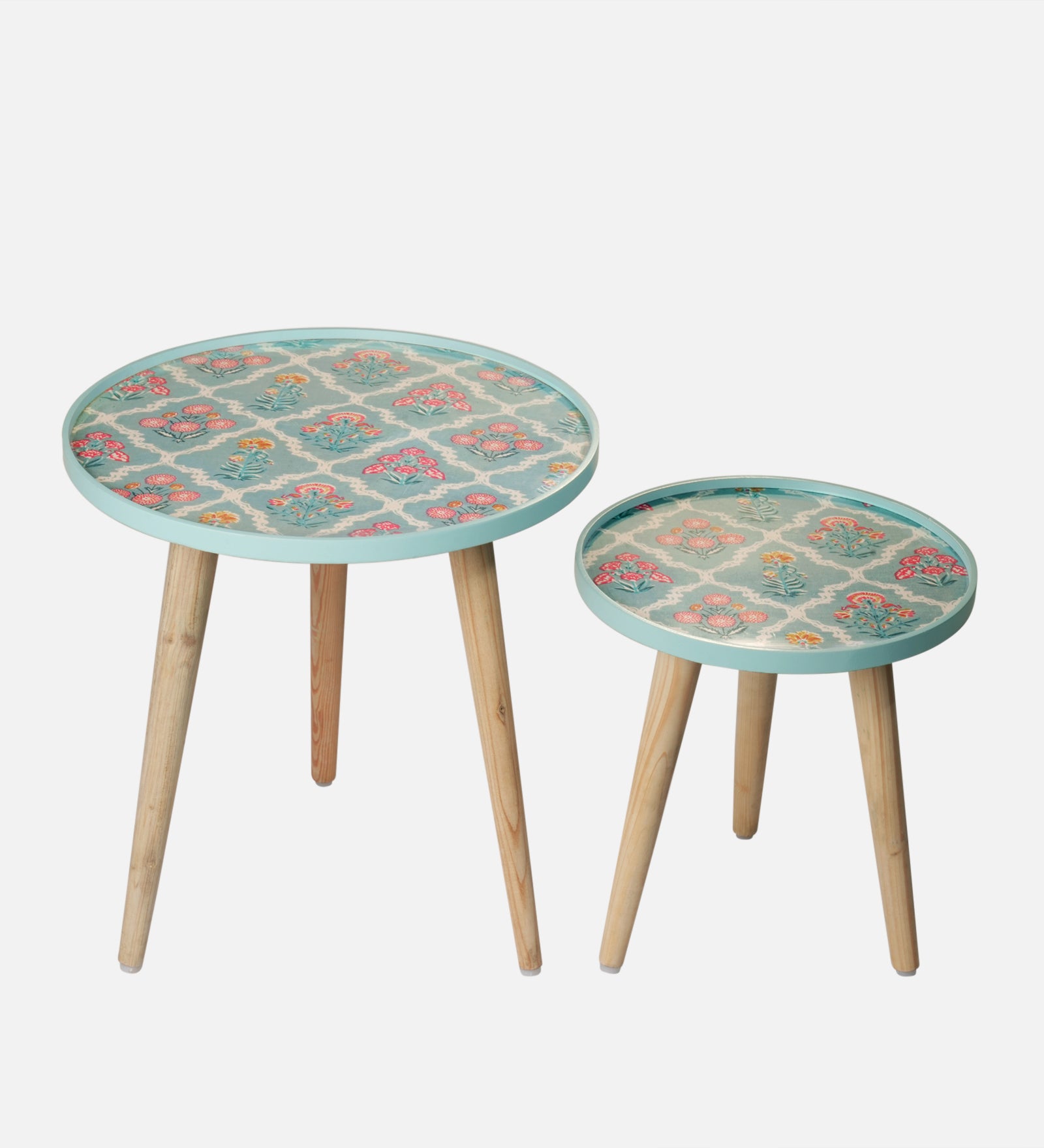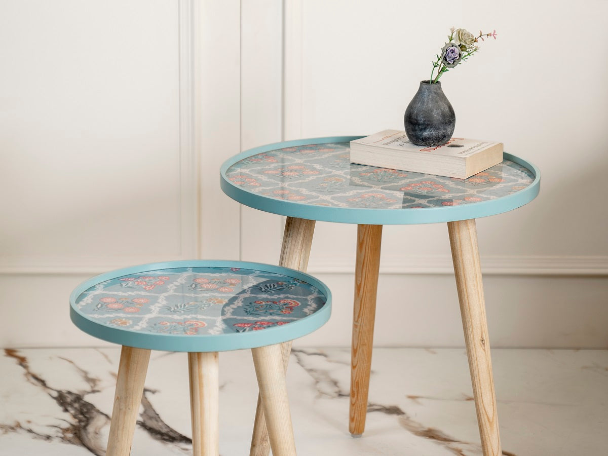 Phool Round Nesting Tables with Wooden Legs, Side Tables, Wooden Tables, Living Room Decor by A Tiny Mistake