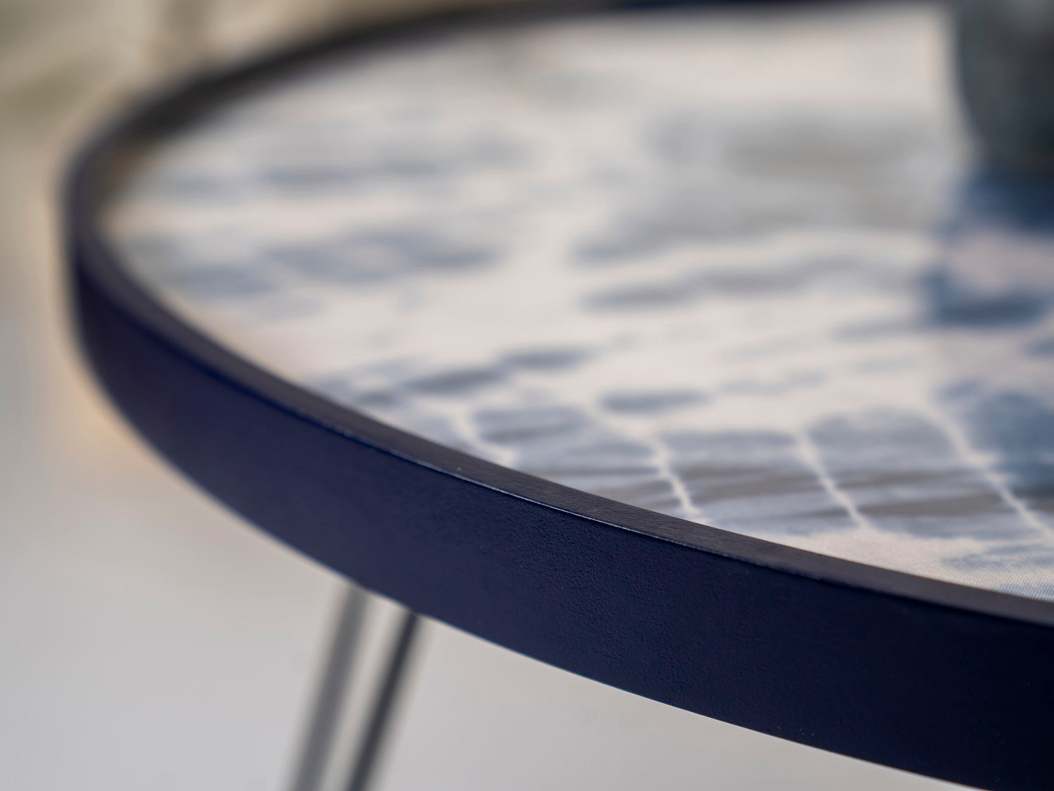 Beautiful patterns formed by this dyed fabric come together in this coffee table to form the centre piece that your decor ever so desires.