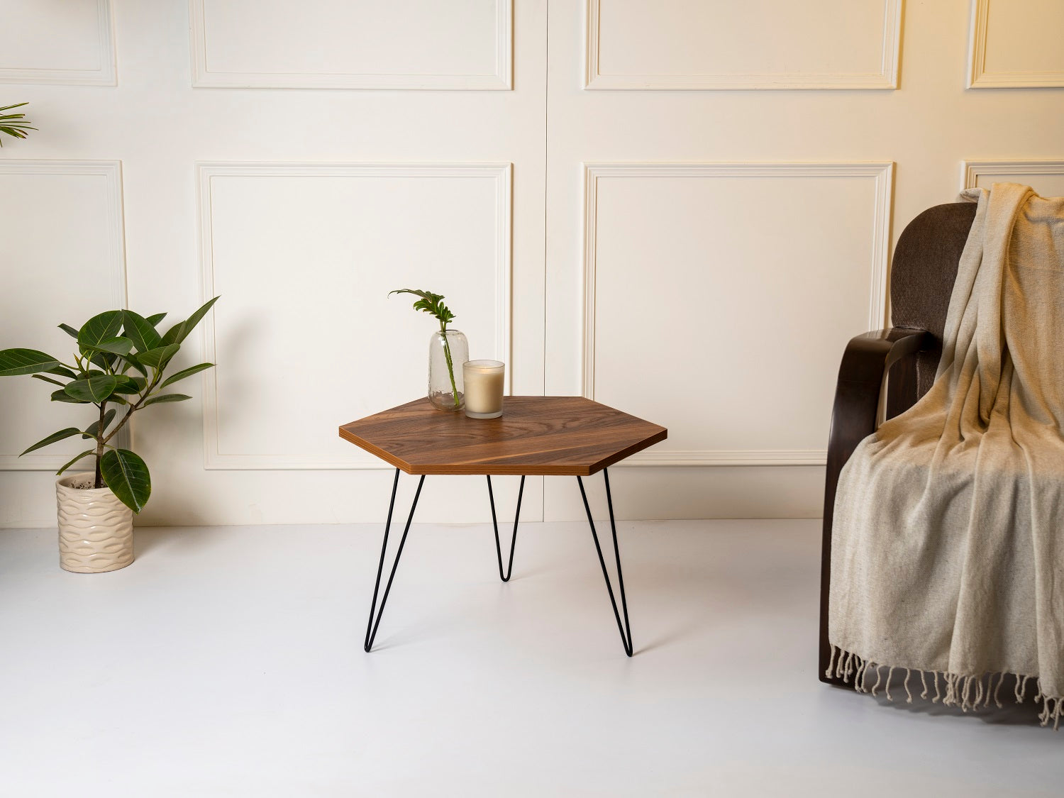 Teak Hues Hexagon Small Coffee Tables, Wooden Tables, Coffee Tables, Center Tables, Living Room Decor by A Tiny Mistake