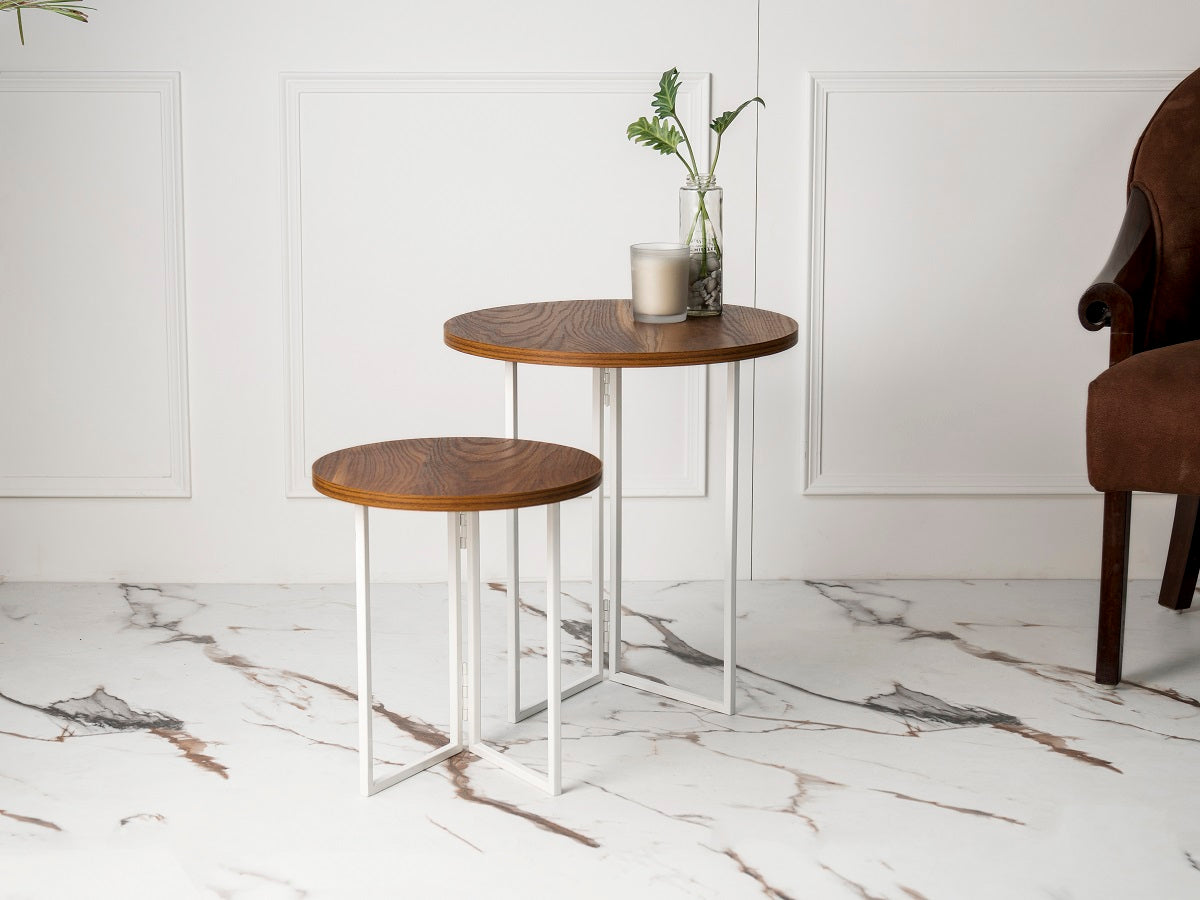 Alluring metal legs with round wooden tops come together in this range to form breathtaking statement pieces. Combining the elegance of metal with sturdiness of wood, these side tables are the perfect addition to modern interiors.