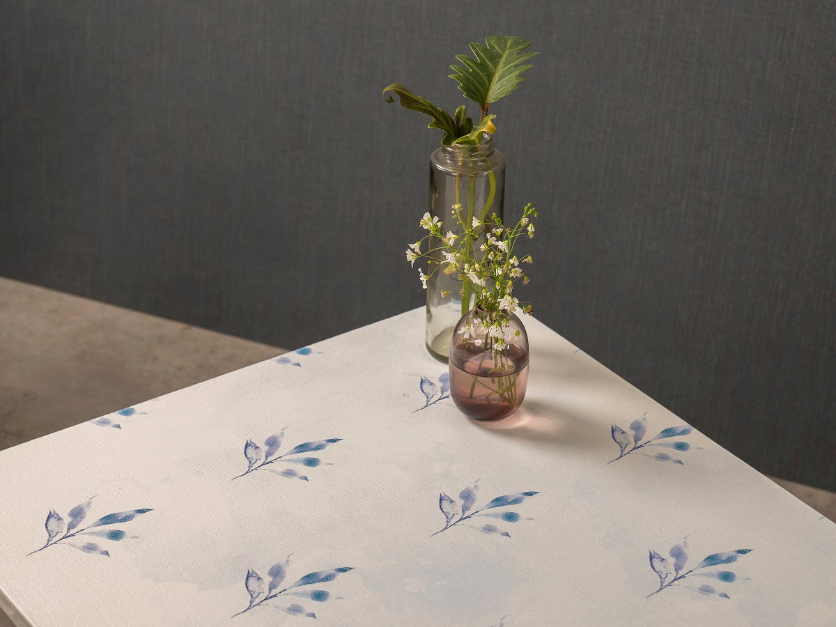 Repeating pale blue twigs over a subtle watercolour base is perfect for adding a pop of colour to your interiors.