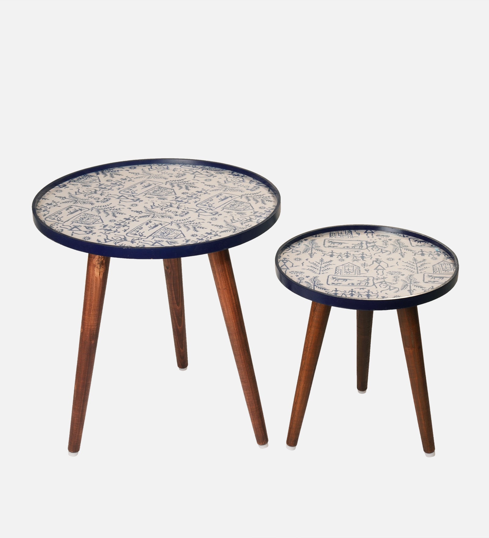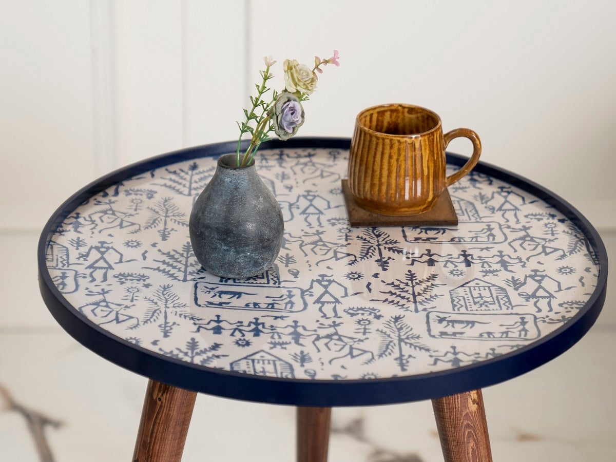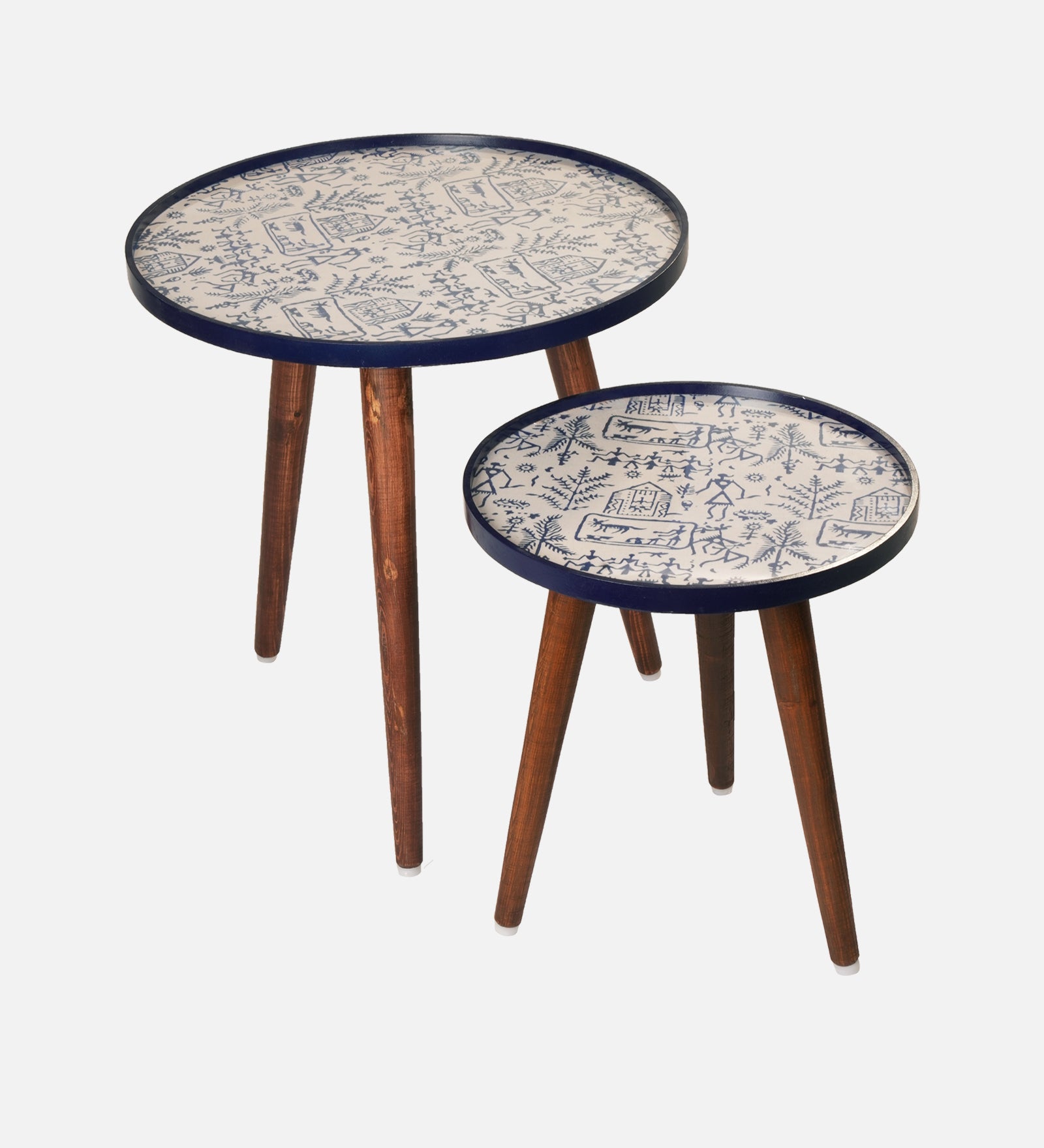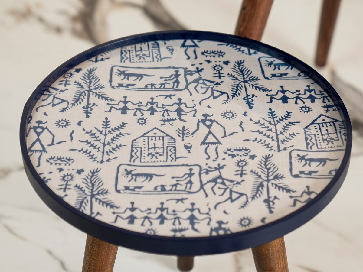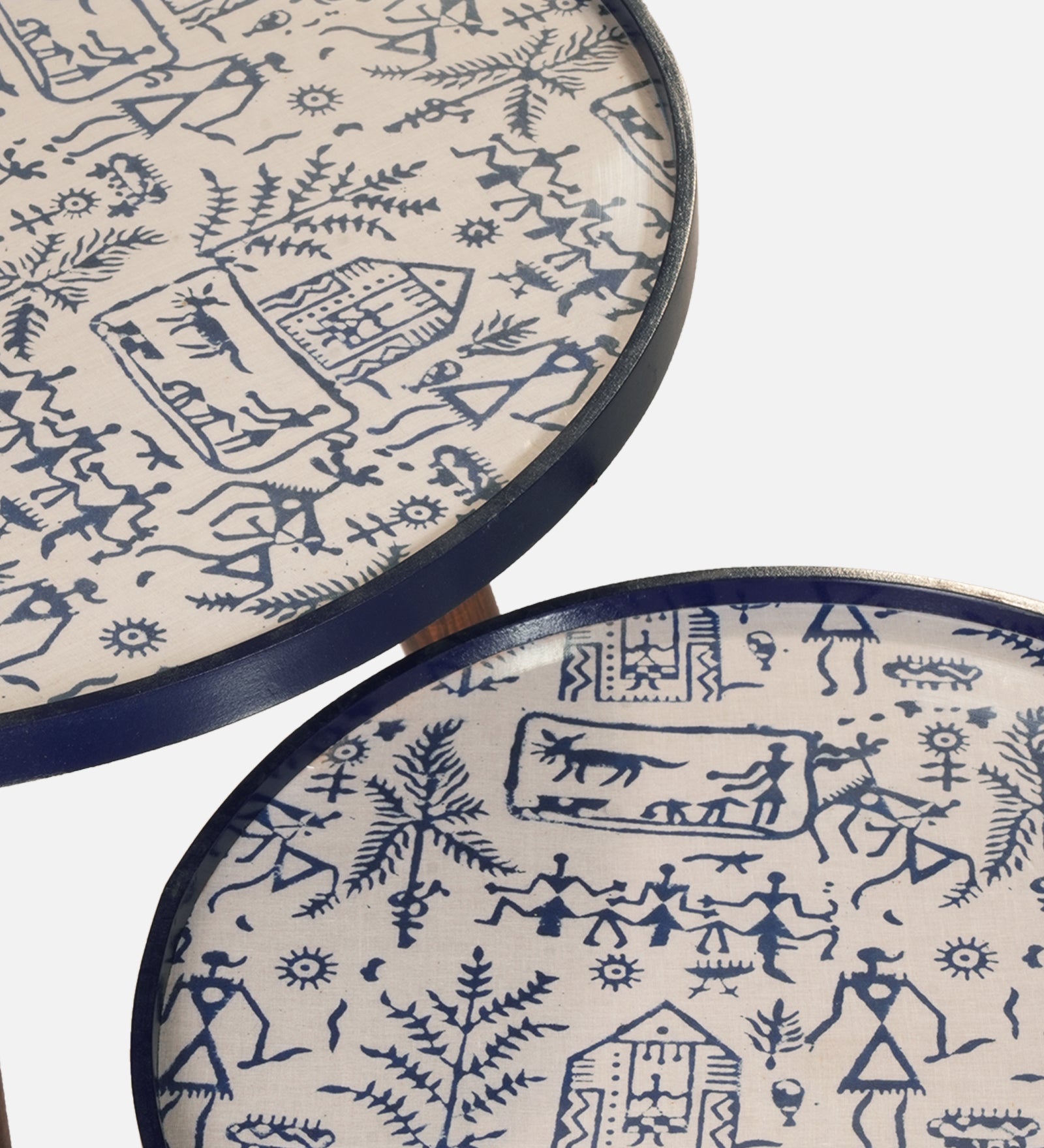 Warli Chitra Round Nesting Tables with Wooden Legs, Side Tables, Wooden Tables, Living Room Decor by A Tiny Mistake